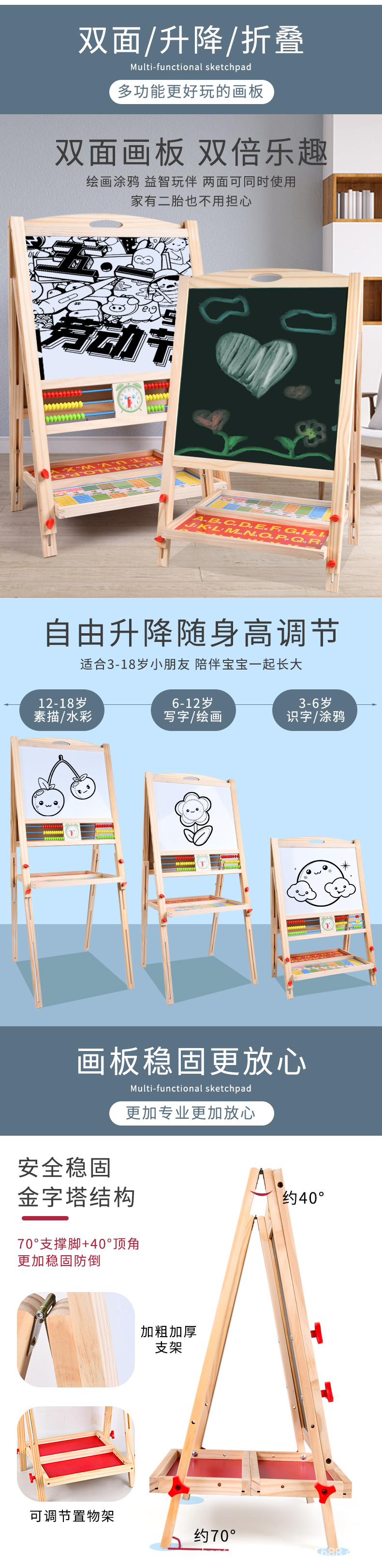 어린이 칠판 화이트 보드 양면 드로잉 보드, 나무 드로잉 보드, 조기 교육, 이동식, 편리한 스토리지 목재스토어 가기
