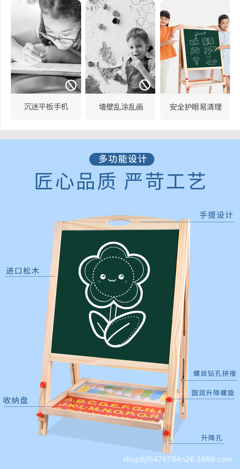 어린이 칠판 화이트 보드 양면 드로잉 보드, 나무 드로잉 보드, 조기 교육, 이동식, 편리한 스토리지 목재