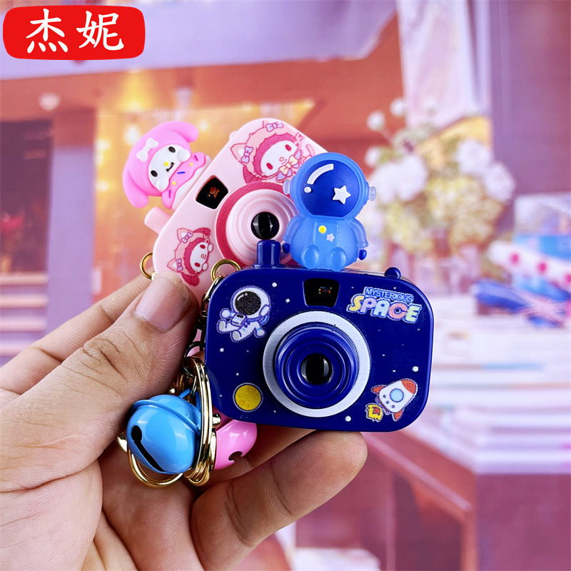 귀여운 만화 프로젝션 카메라 키 체인 펜던트 빛나는 작은 카메라 가방 액세서리 인형 기계 공급 작은 선물