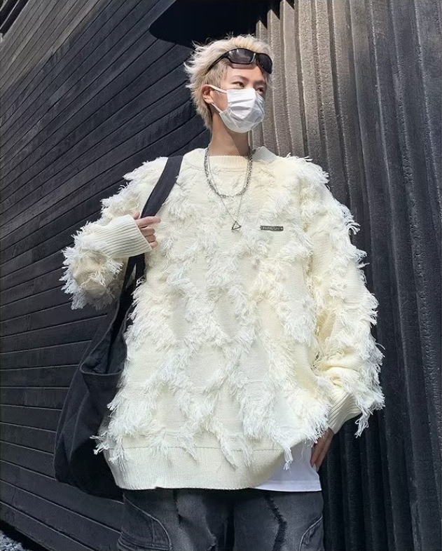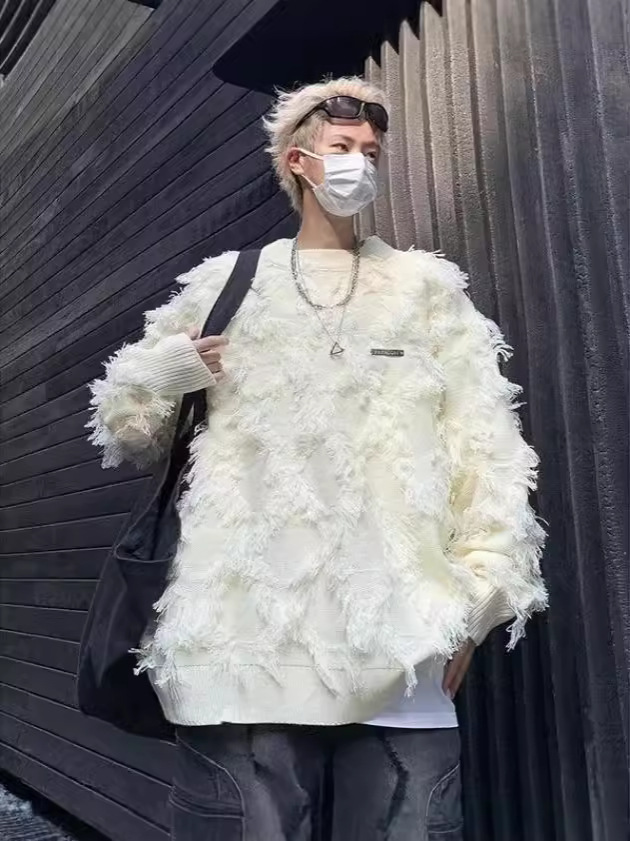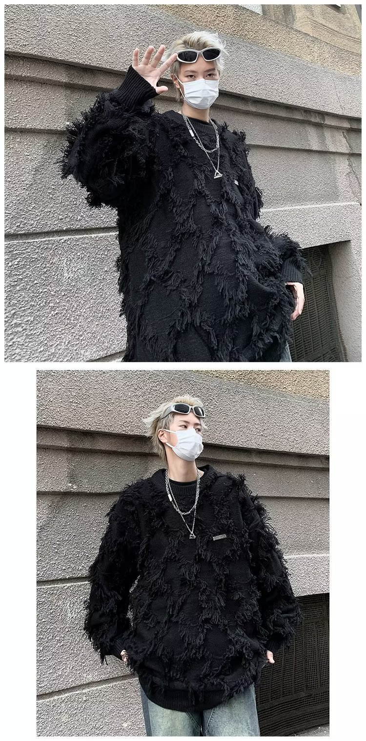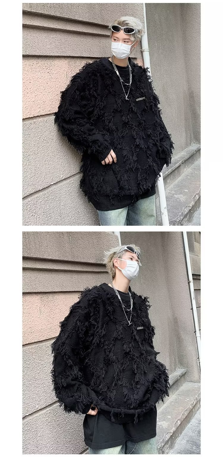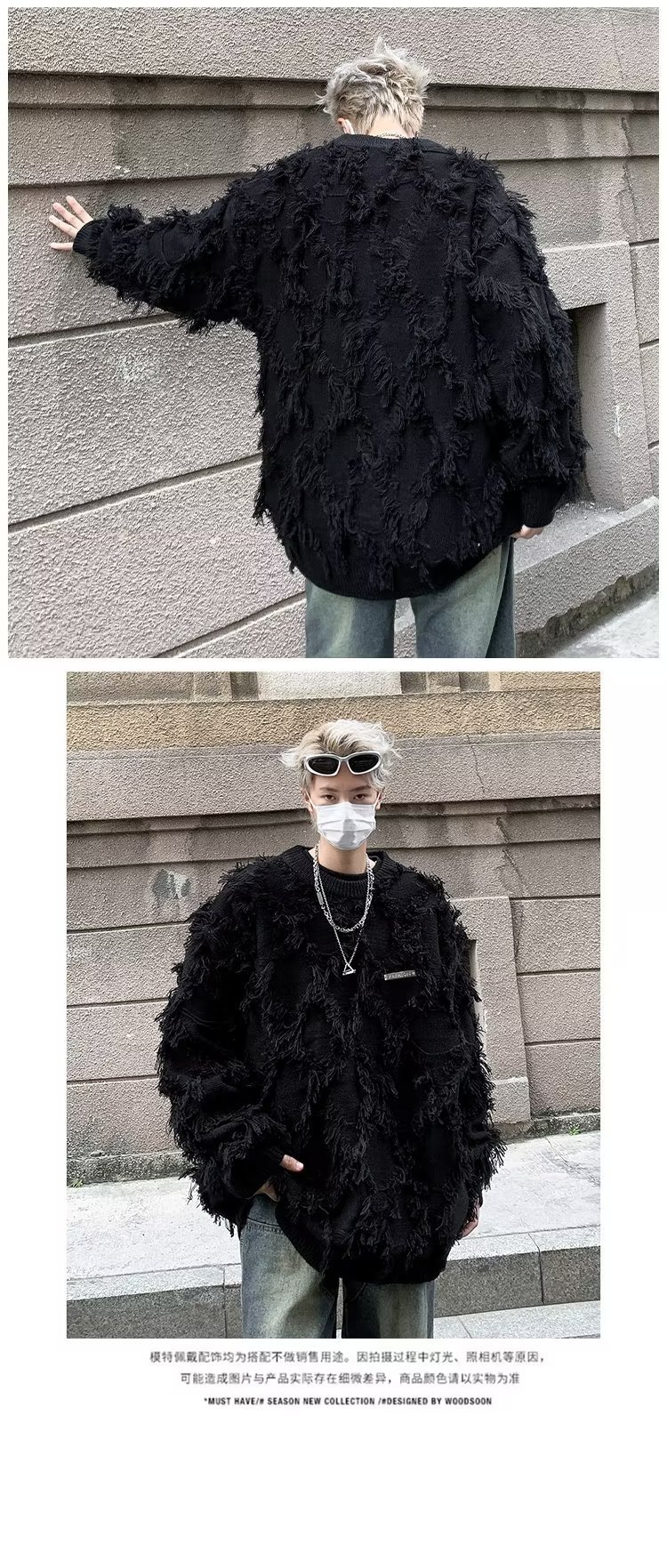 미국 레트로 술 스웨터 남성과 여성의 같은 스타일 디자인 센스 틈새 게으른 스타일 고급 센스 라운드 넥 코트 니트 스웨터스토어 가기