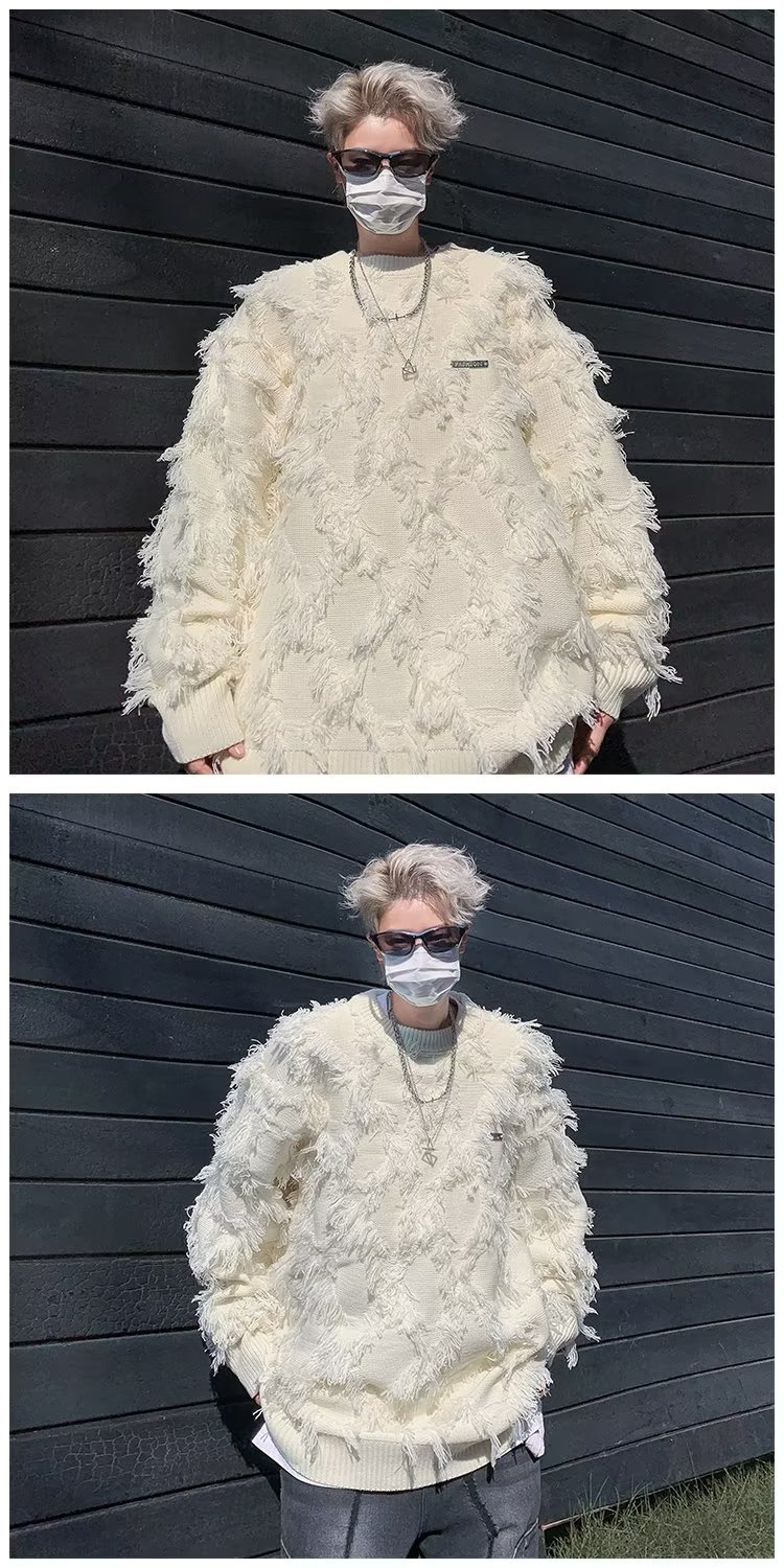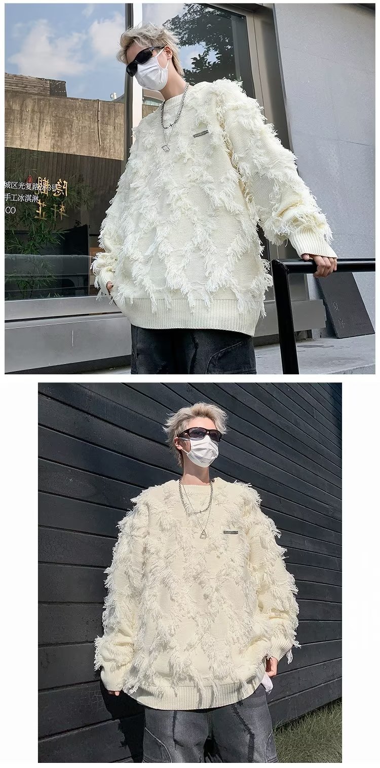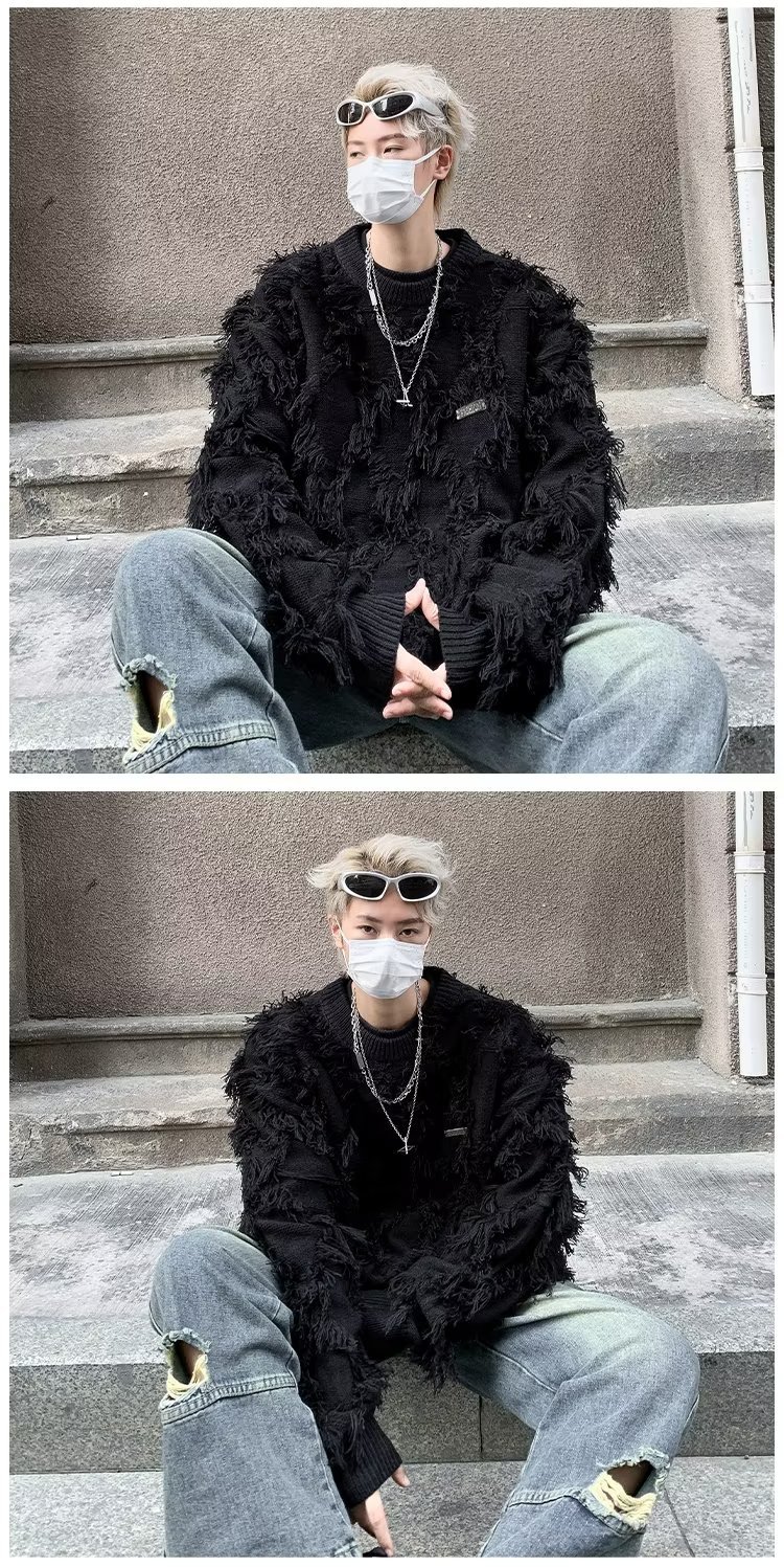 미국 레트로 술 스웨터 남성과 여성의 같은 스타일 디자인 센스 틈새 게으른 스타일 고급 센스 라운드 넥 코트 니트 스웨터