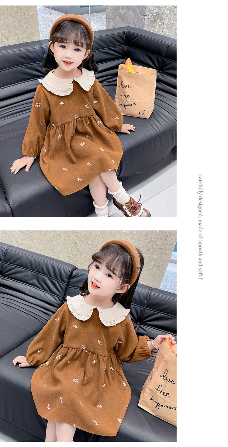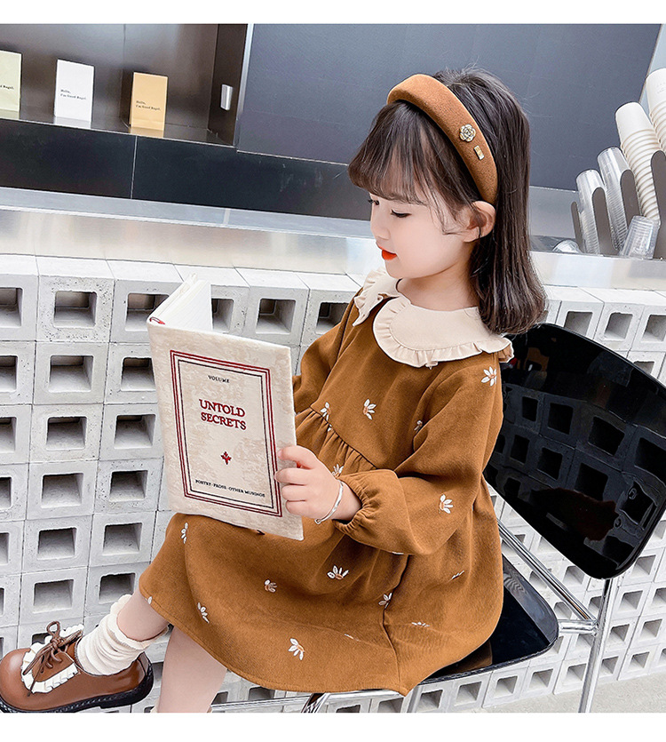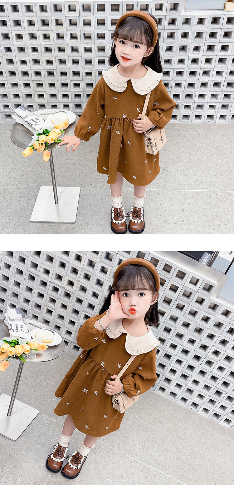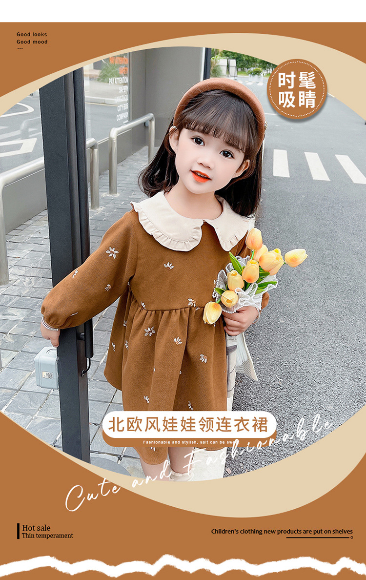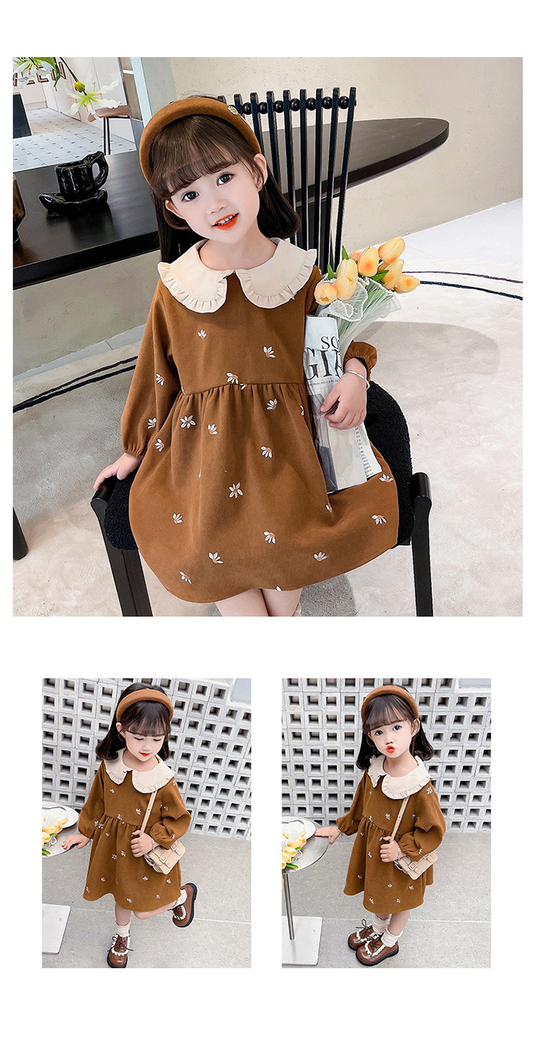 여아용 스커트 봄 가을 2025 신상 패션 소녀 긴팔 인형 칼라 원피스 어린이 공주 드레스스토어 가기