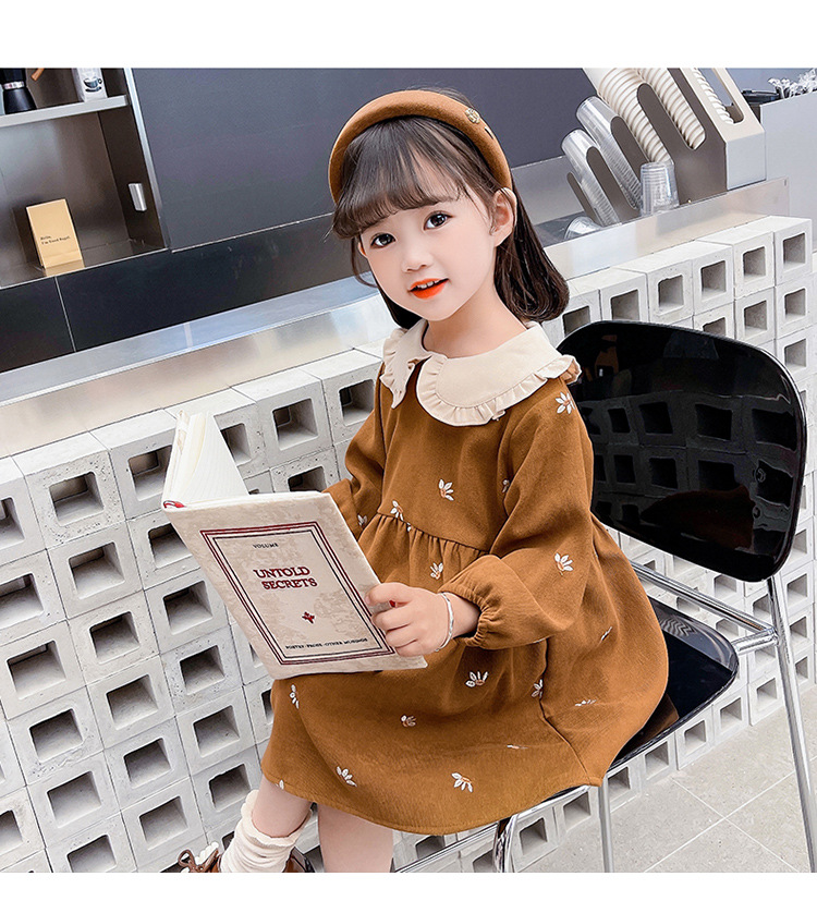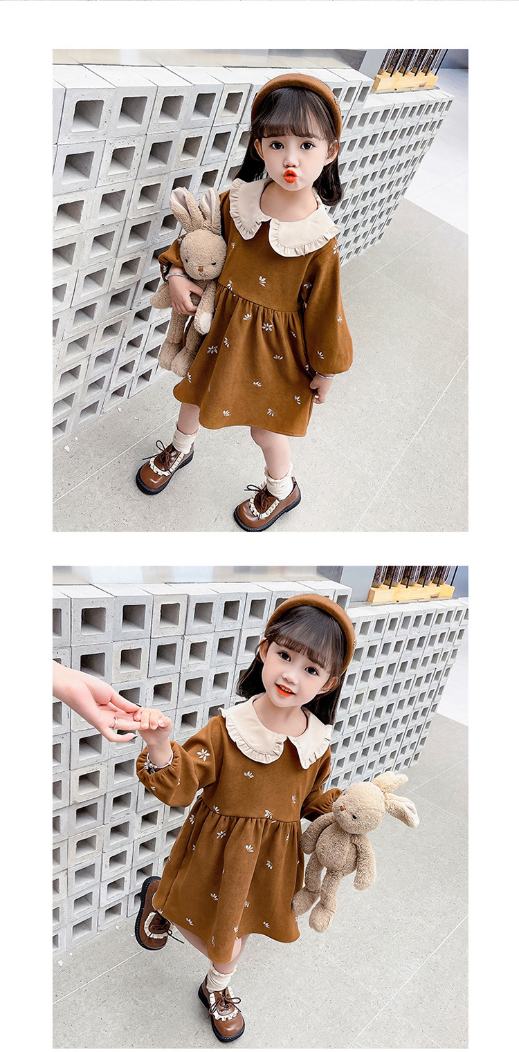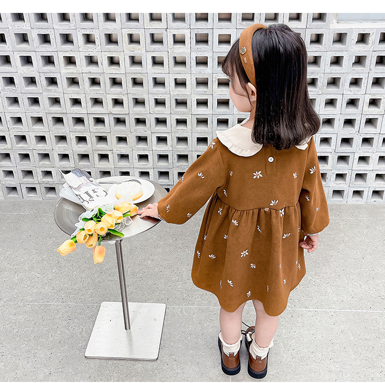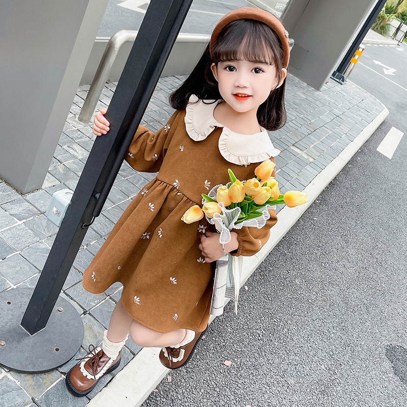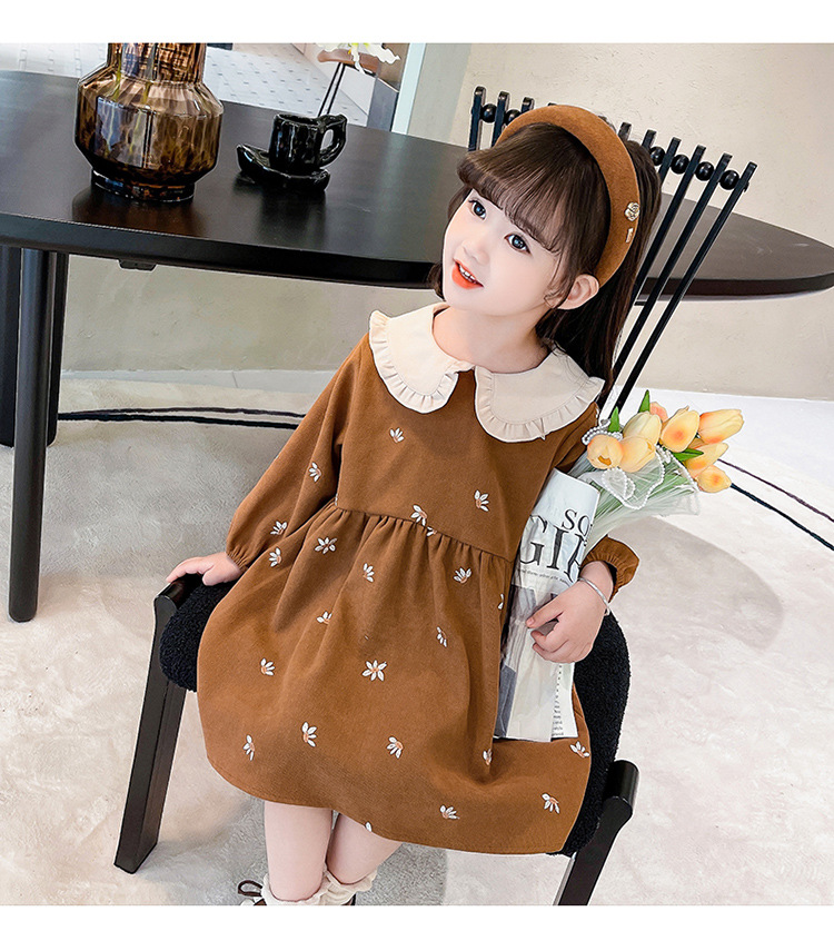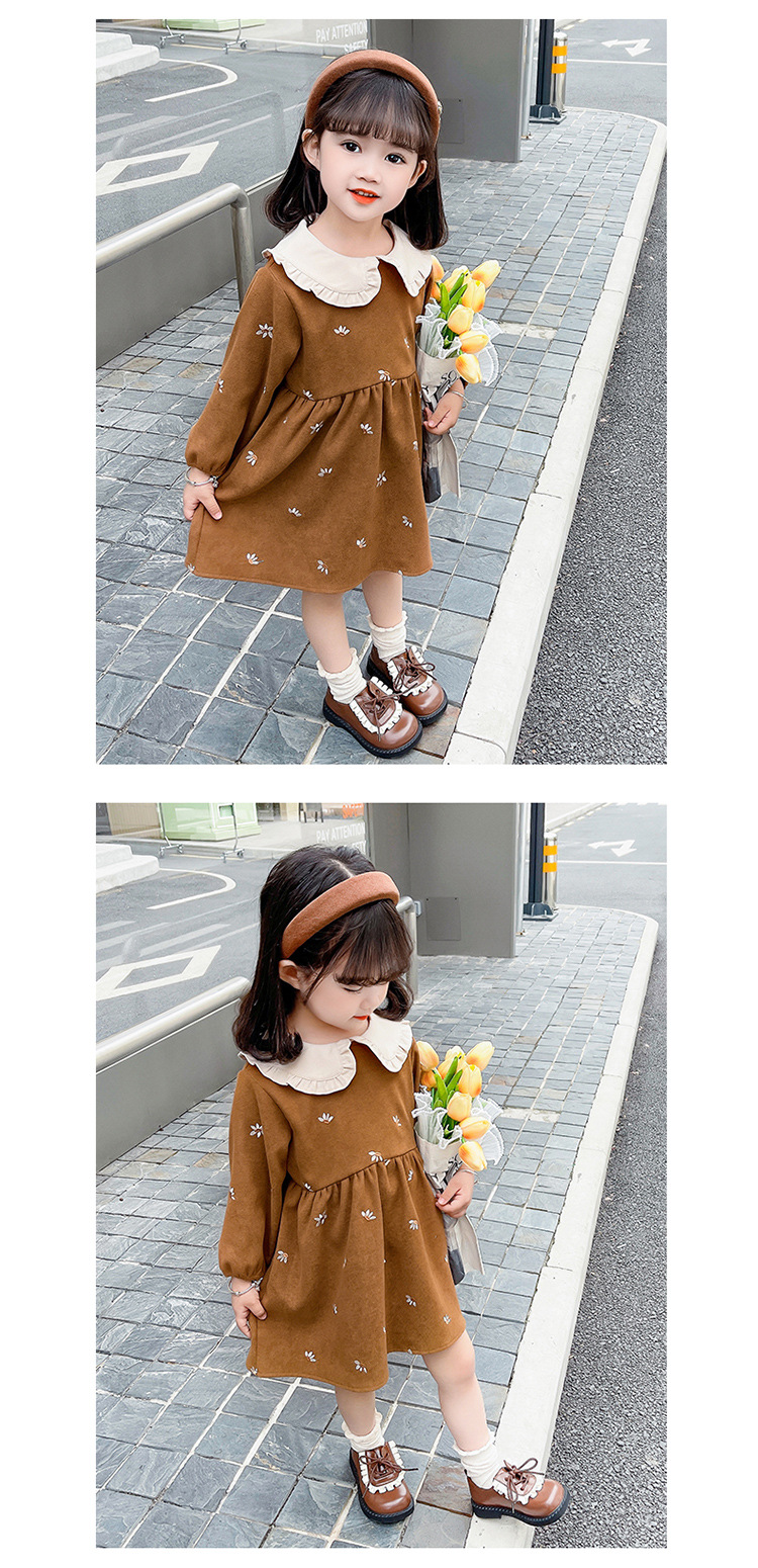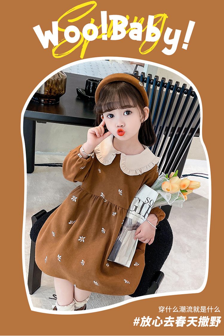 여아용 스커트 봄 가을 2025 신상 패션 소녀 긴팔 인형 칼라 원피스 어린이 공주 드레스스토어 가기