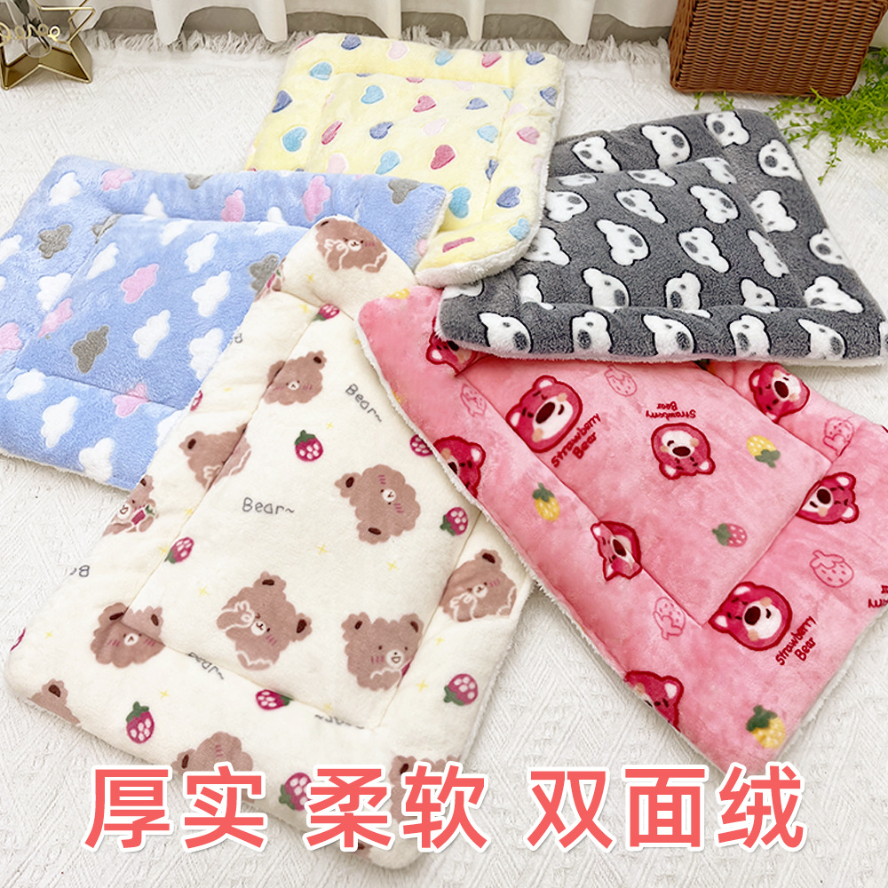 플란넬 애완 동물 패드 가을과 겨울 두꺼운 따뜻한 담요 양모 양고기 양면 만화 고양이 개 잠자는 매트 도매