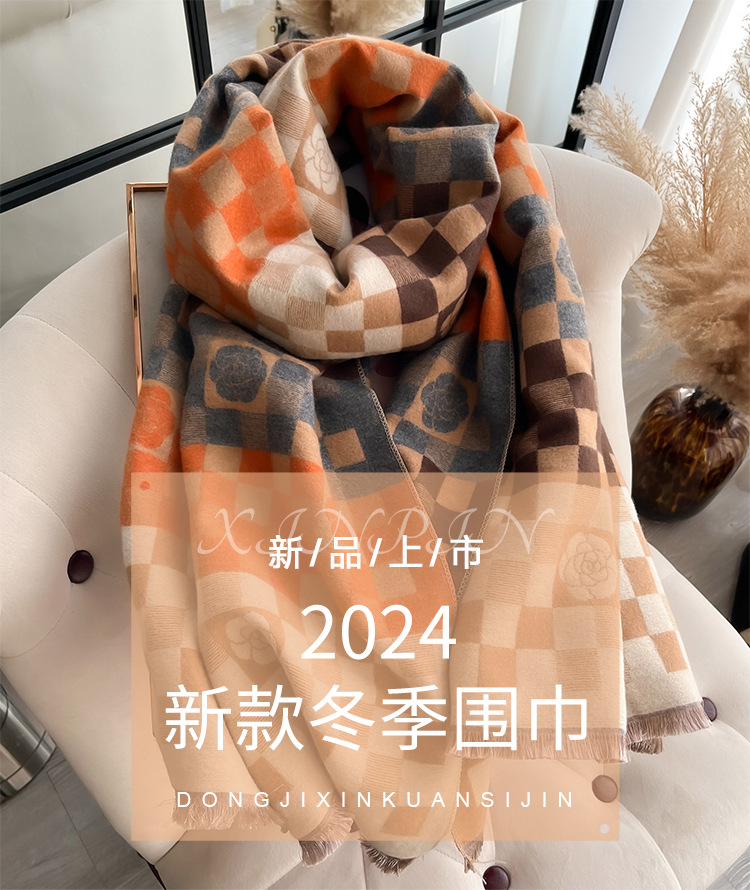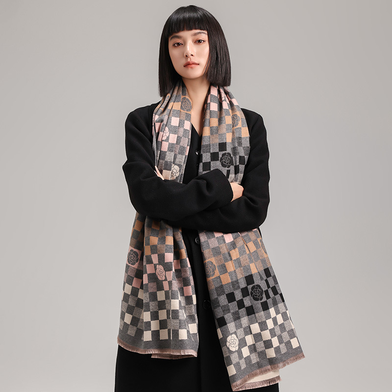 가을과 겨울 격자 무늬 동백 패션 장식 긴 모조 캐시미어 숙녀 따뜻한 스카프 에어컨 목도리 대외 무역의 한국어 버전