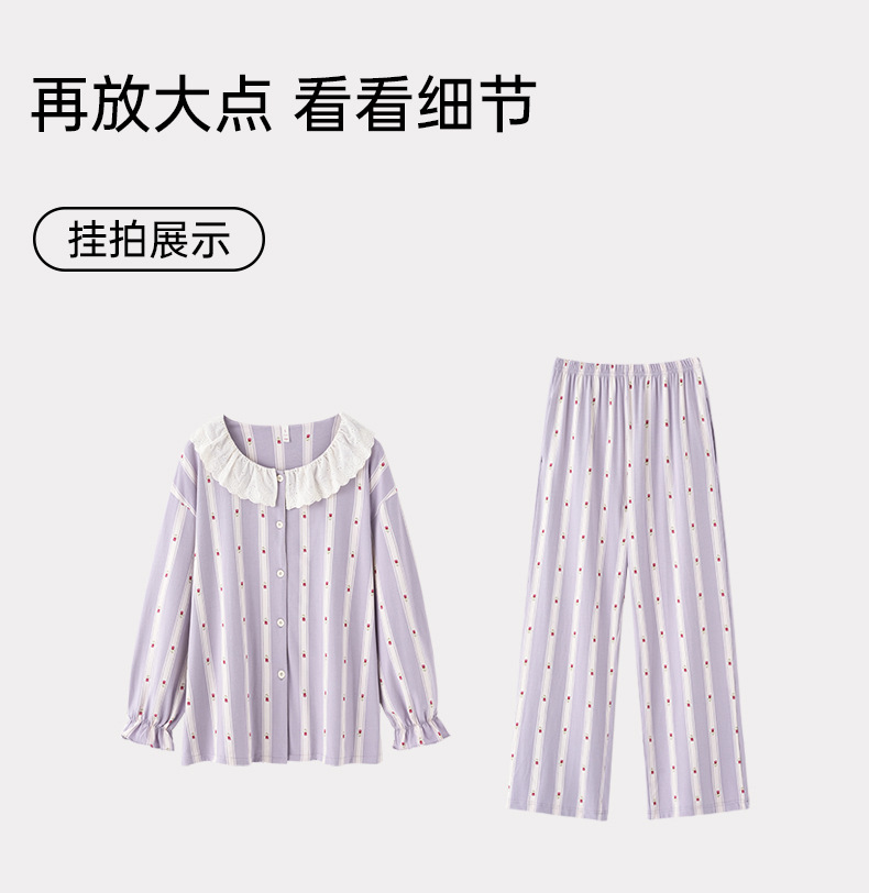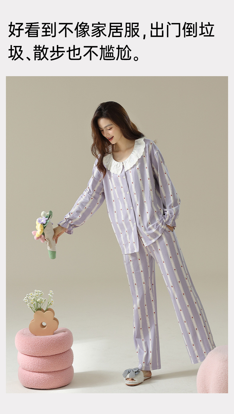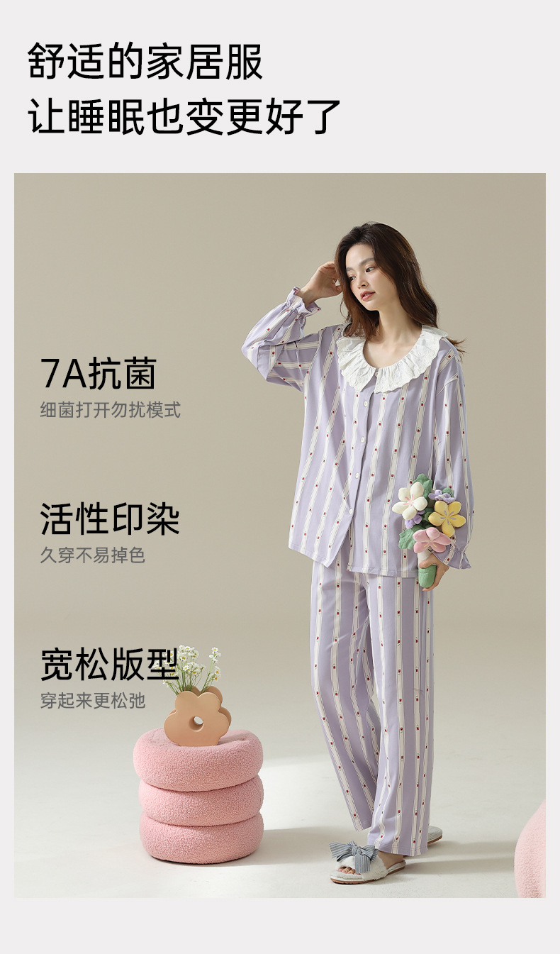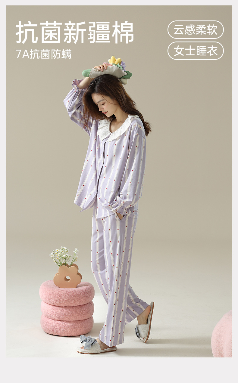 [항균성 신장 면화] 가을 새 잠옷 여성 긴팔 면화 공주 파자마 여성 풀업 면 홈 의류스토어 가기