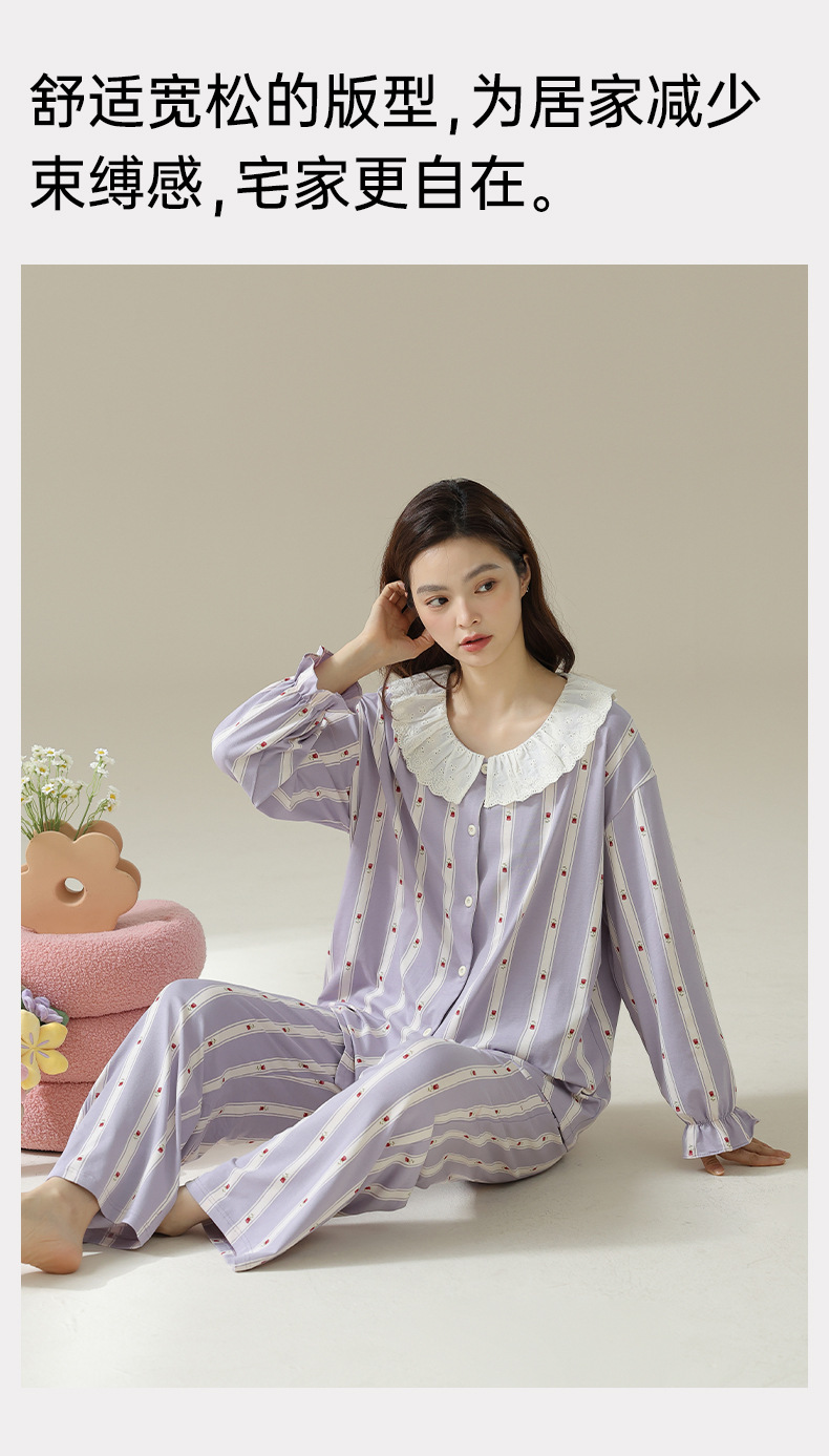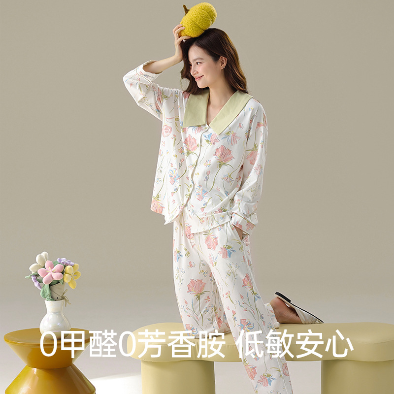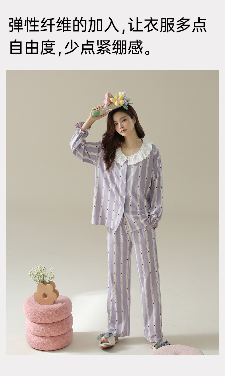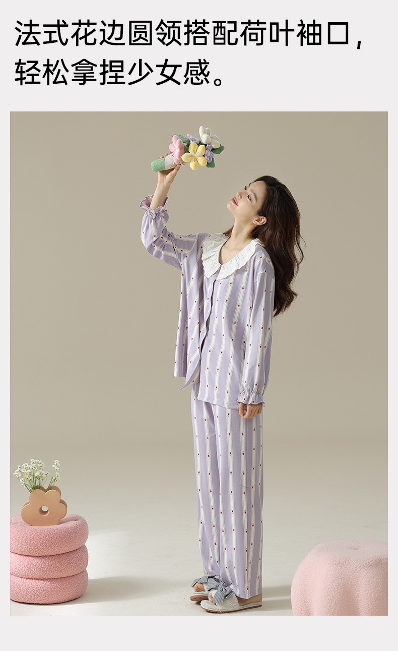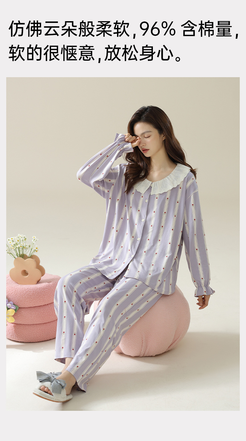 [항균성 신장 면화] 가을 새 잠옷 여성 긴팔 면화 공주 파자마 여성 풀업 면 홈 의류스토어 가기