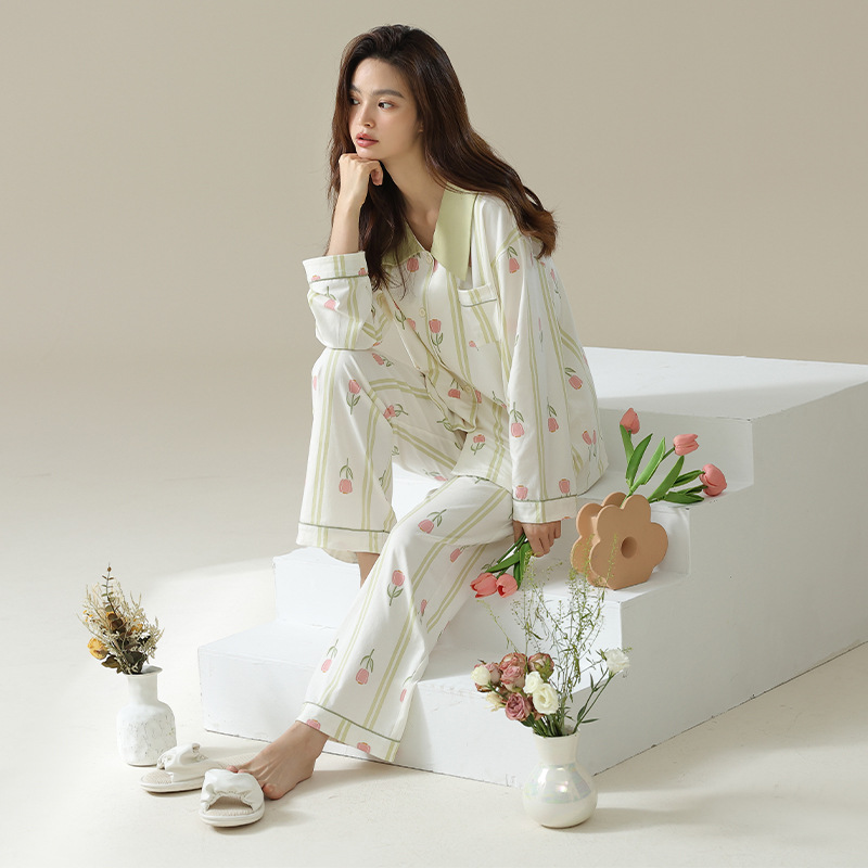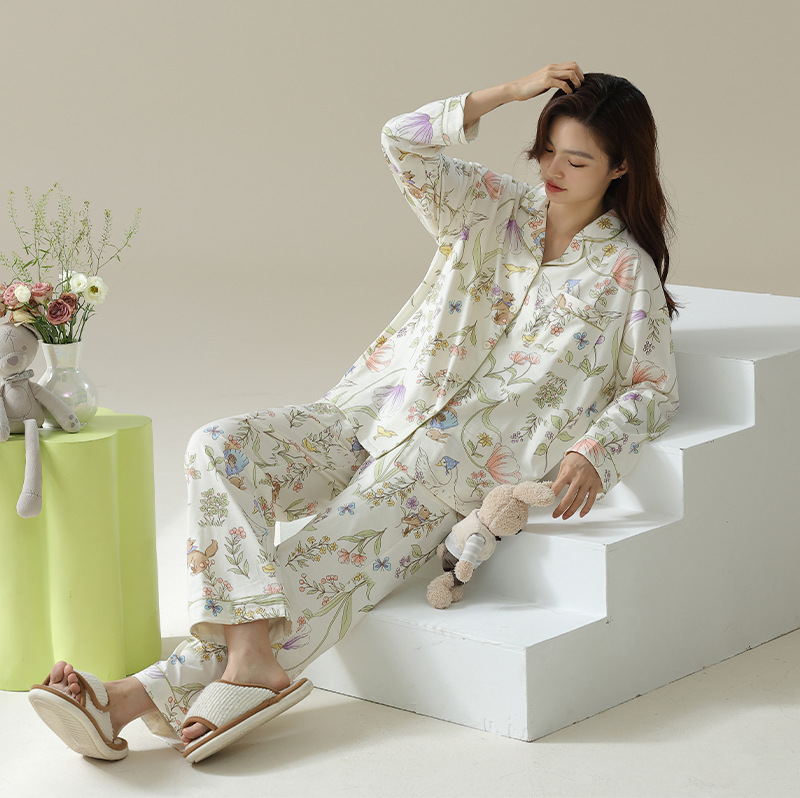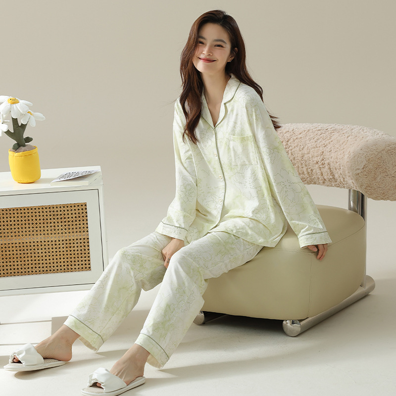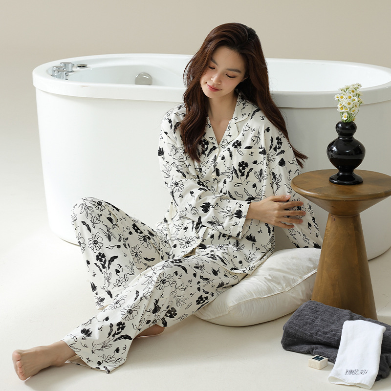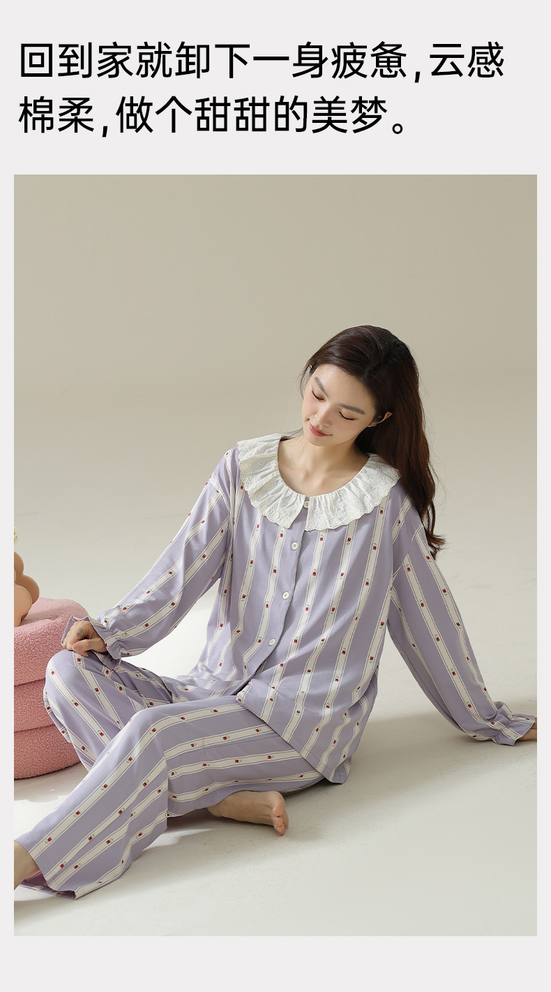 [항균성 신장 면화] 가을 새 잠옷 여성 긴팔 면화 공주 파자마 여성 풀업 면 홈 의류스토어 가기
