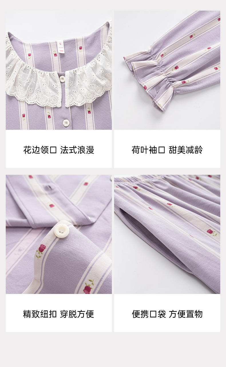 [항균성 신장 면화] 가을 새 잠옷 여성 긴팔 면화 공주 파자마 여성 풀업 면 홈 의류