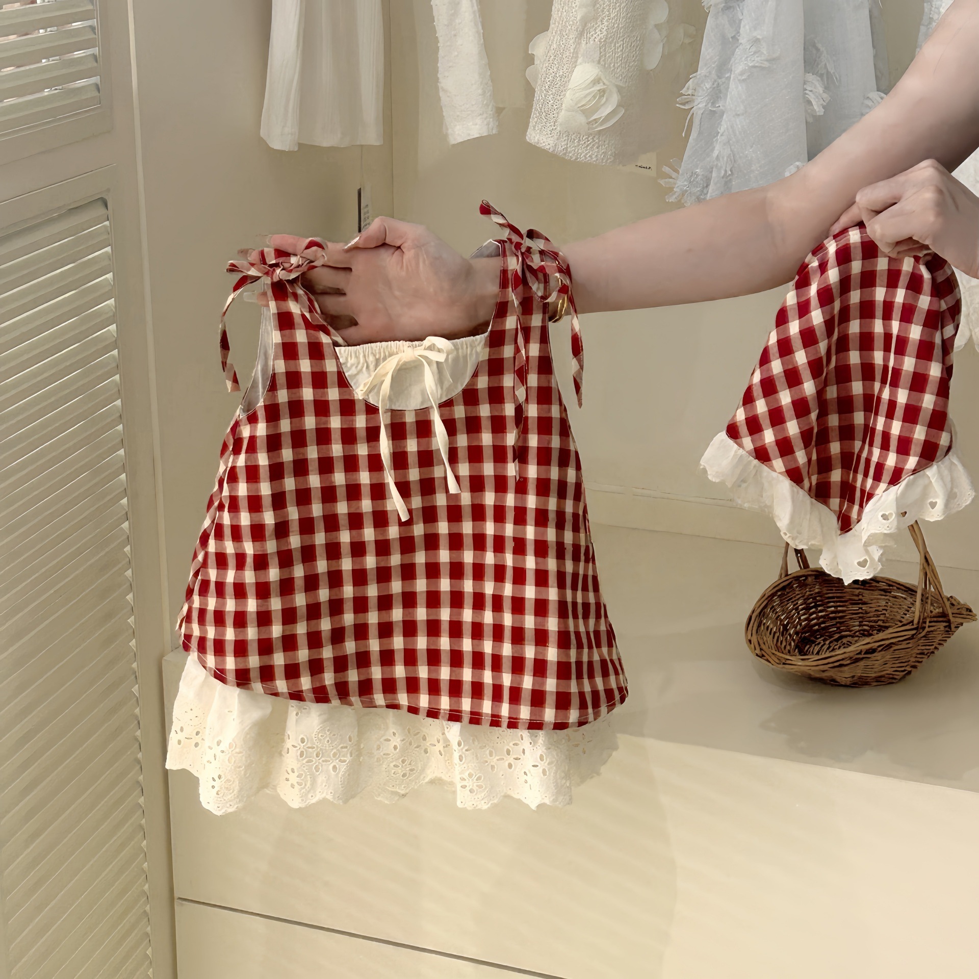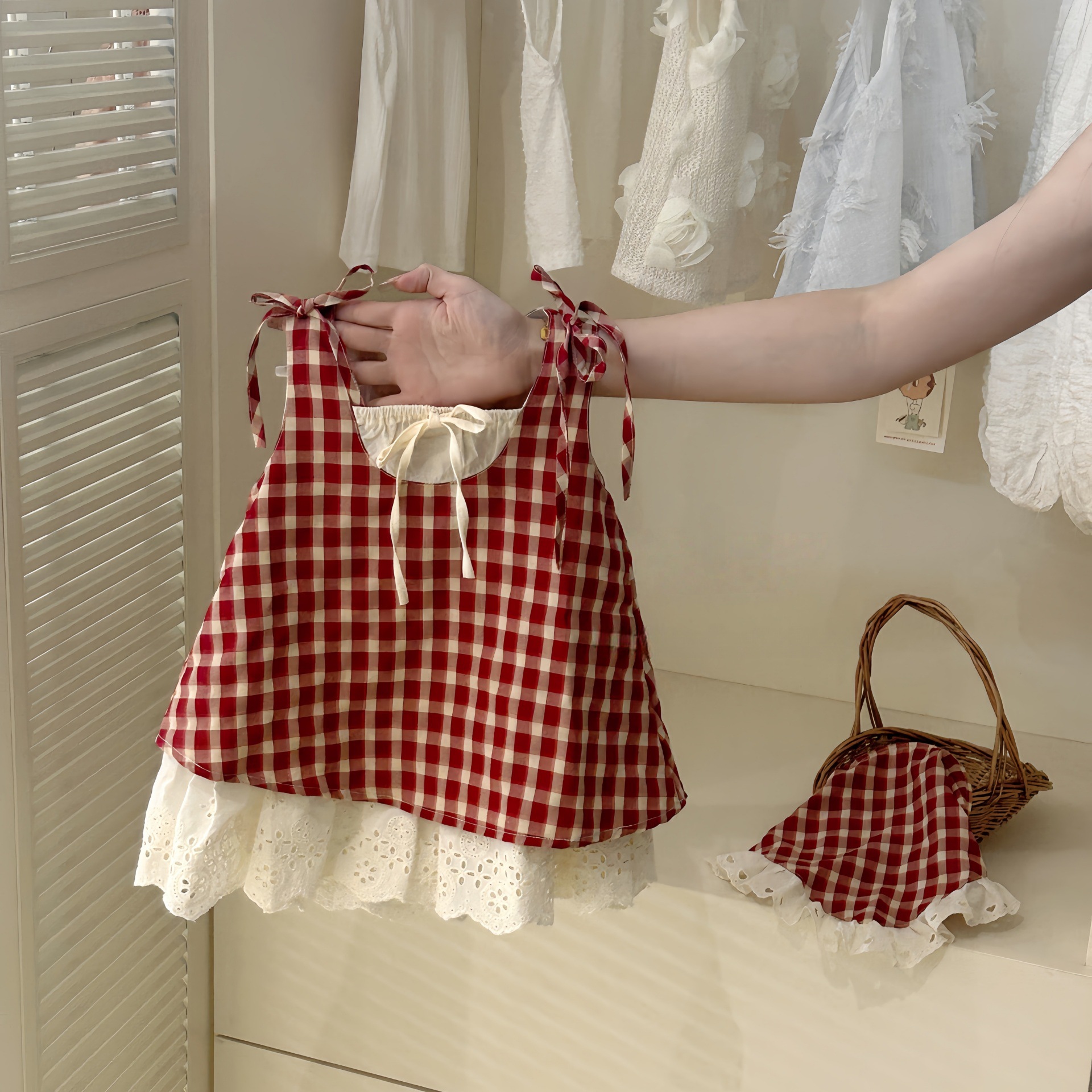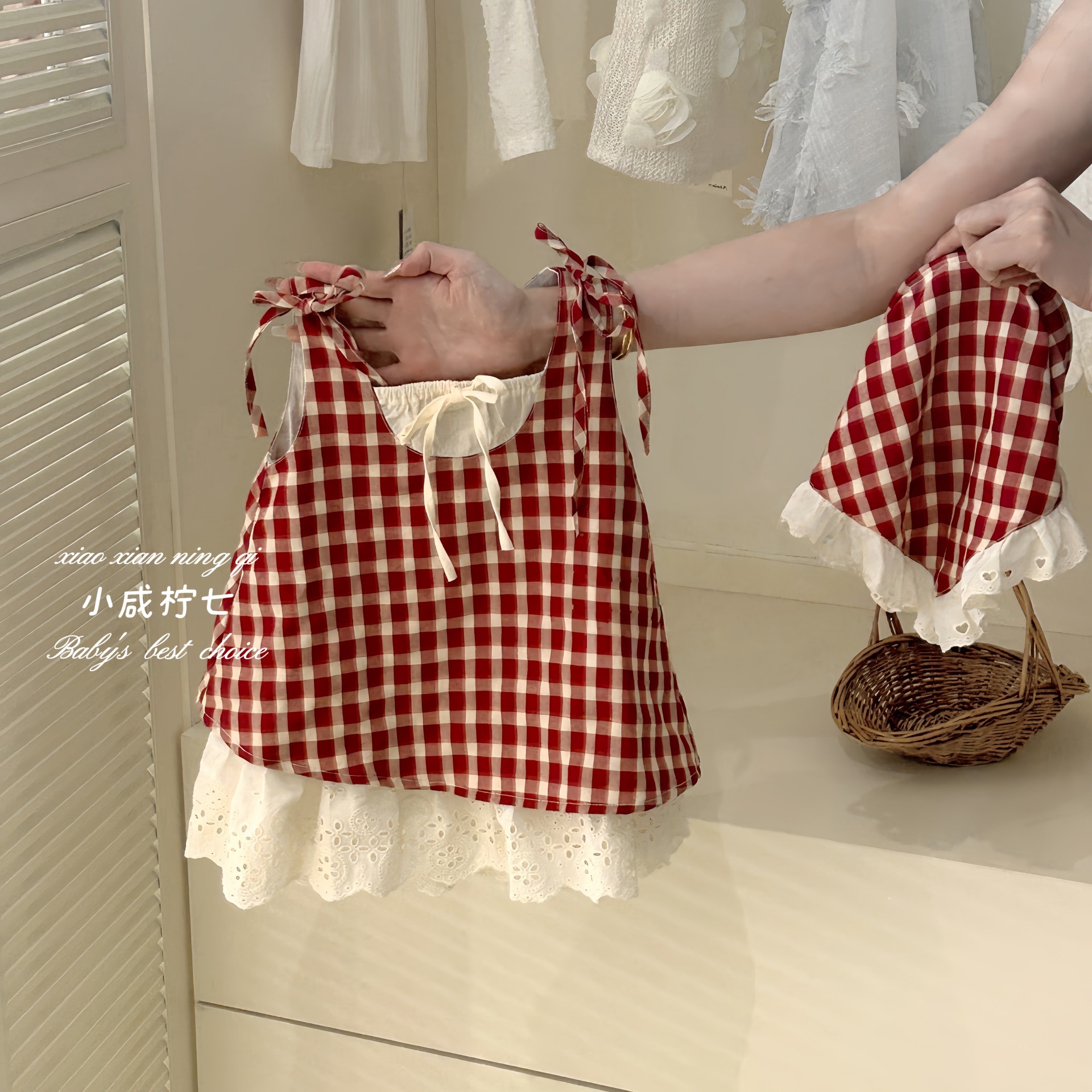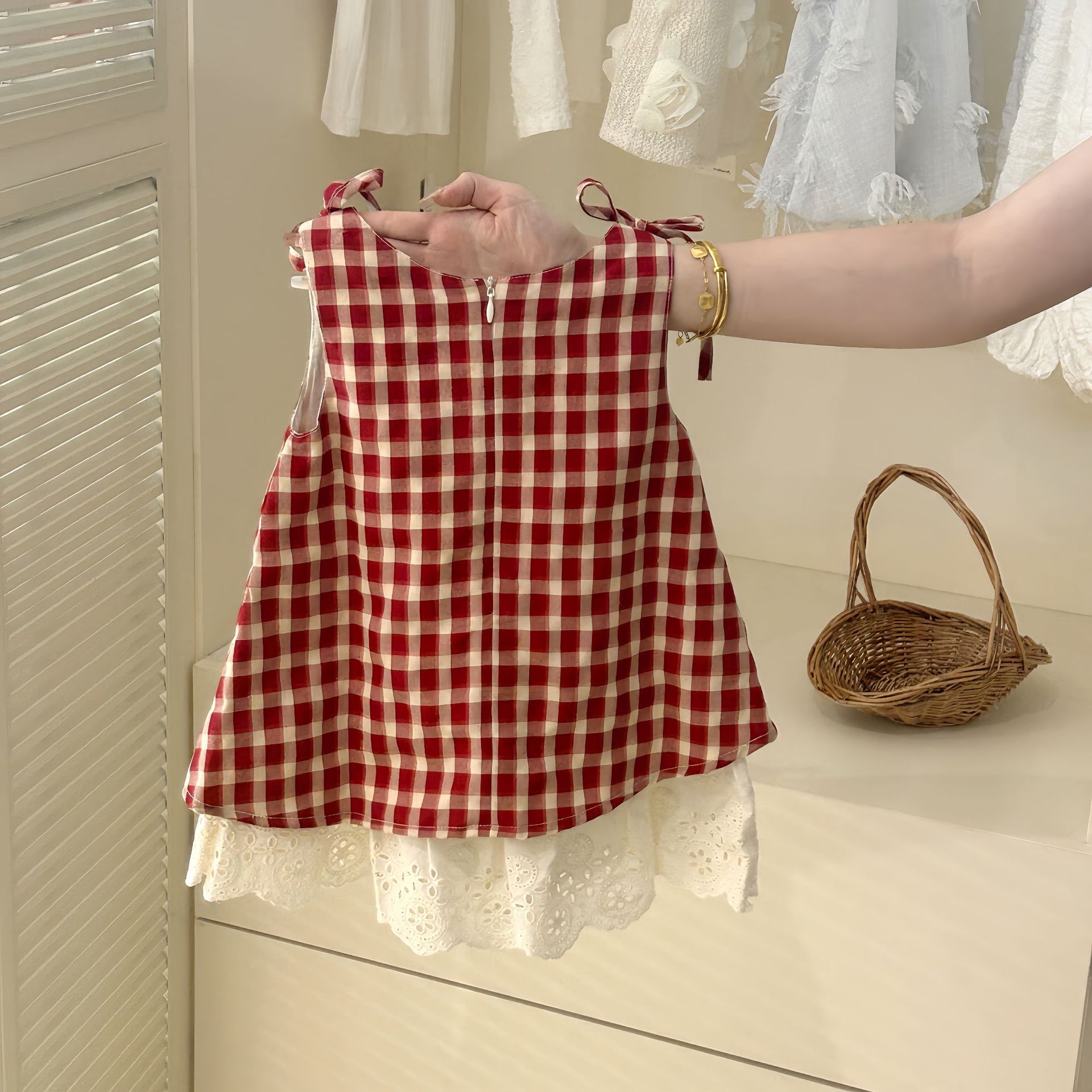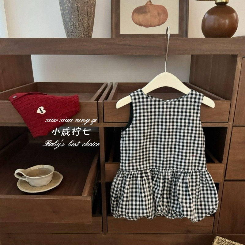 칠세아동복 여아 체크무늬 투피스 원피스 여름 신상 아동 여아 베이비 민소매 원피스 트렌디 도매스토어 가기
