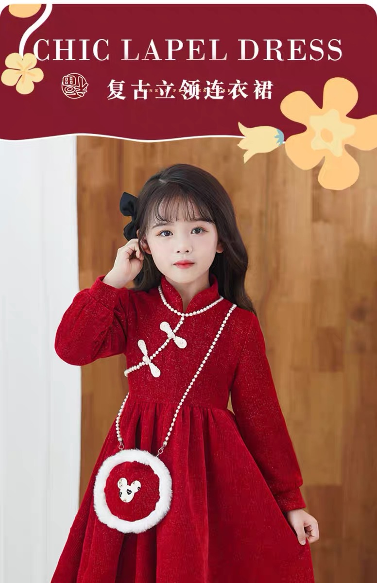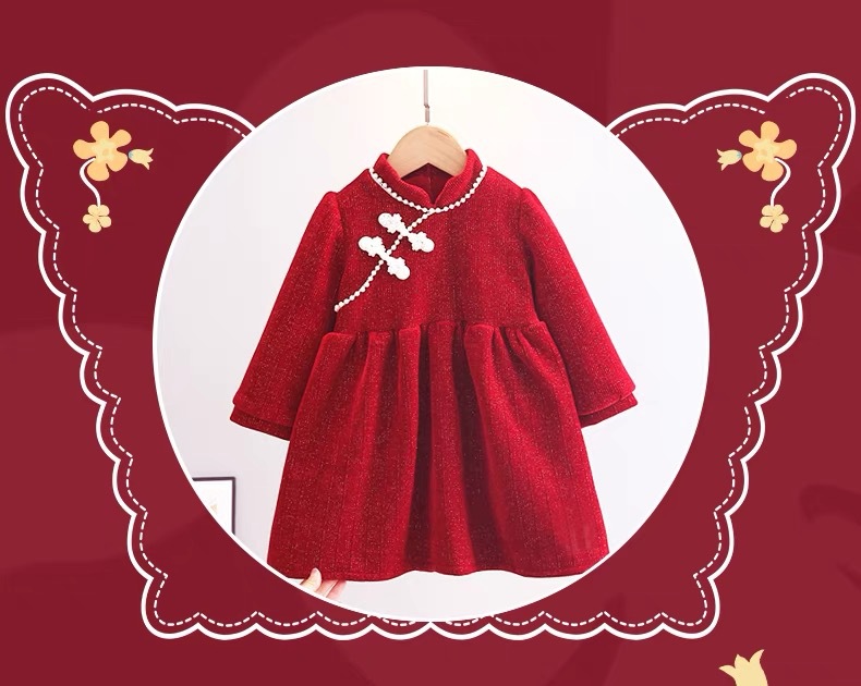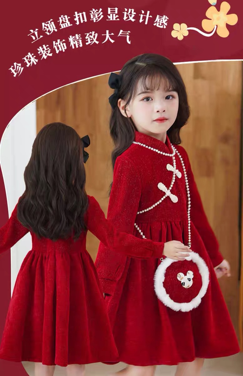 여자 새해 원피스 겨울 기모 어린이 새 중국 청삼 원피스 소녀 패션 레트로 레드 원피스스토어 가기