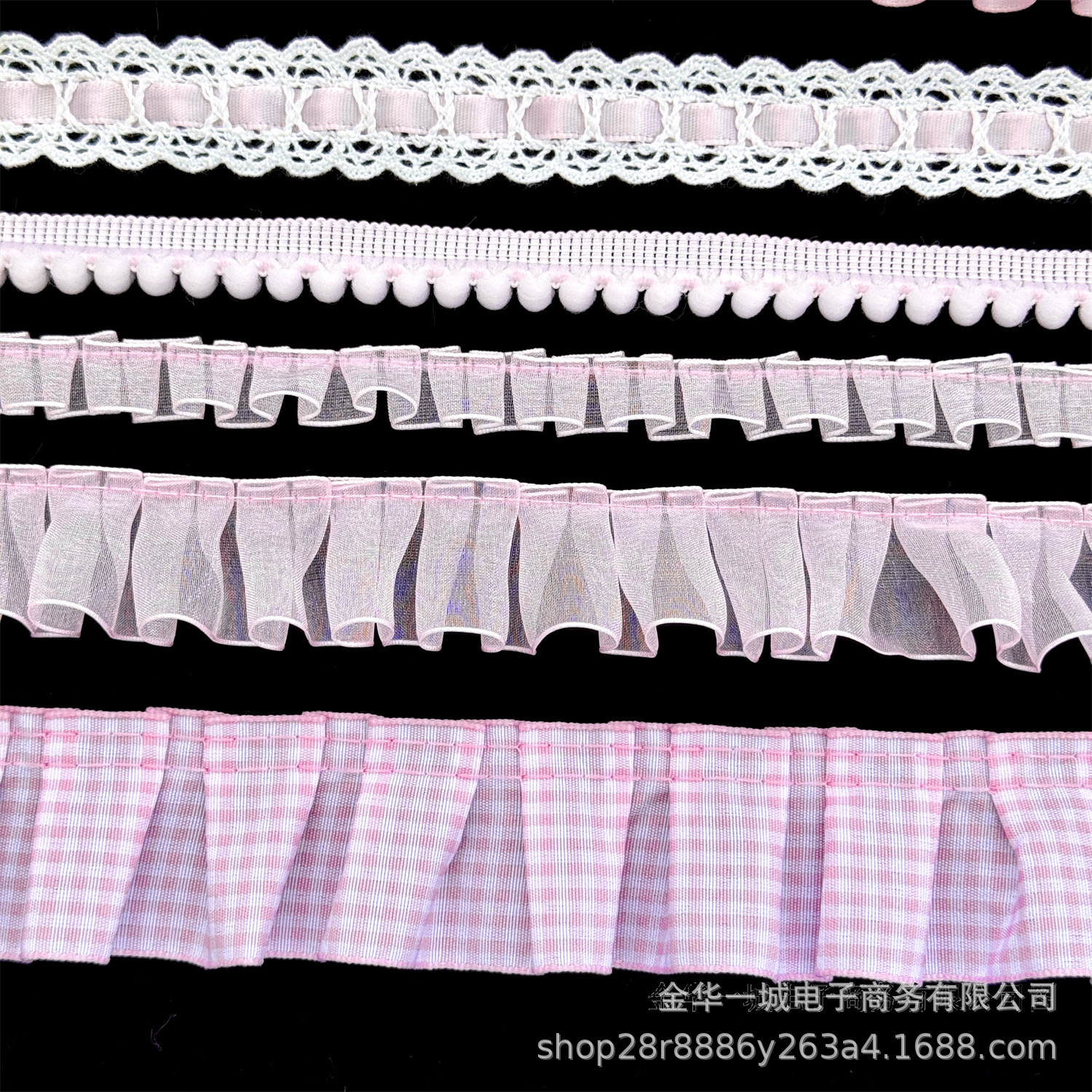 • 핑크 단면 주름 레이스 (폭 2.5cm)