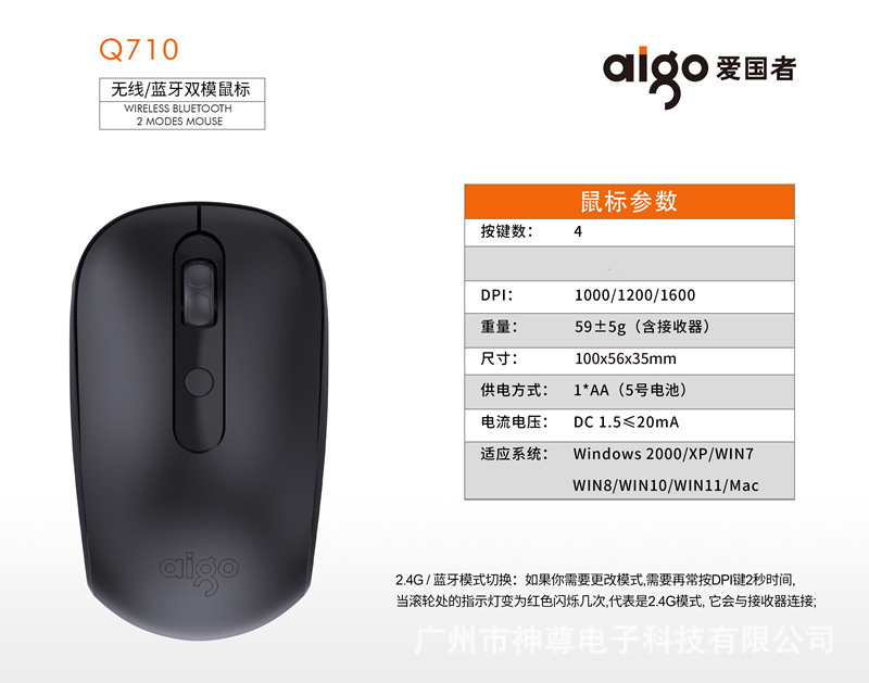 도매 사랑 guo Q710 블루투스 2.4G 멀티 모드 무선 마우스 공장 태블릿 노트북 올인원 기계스토어 가기