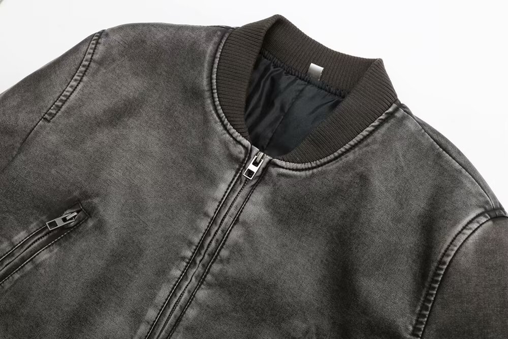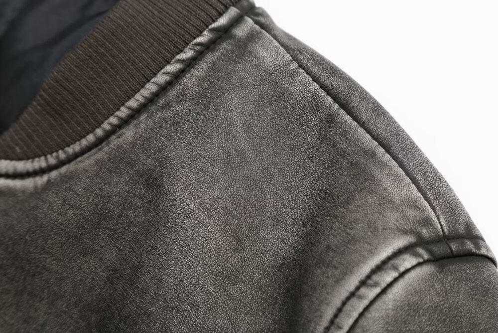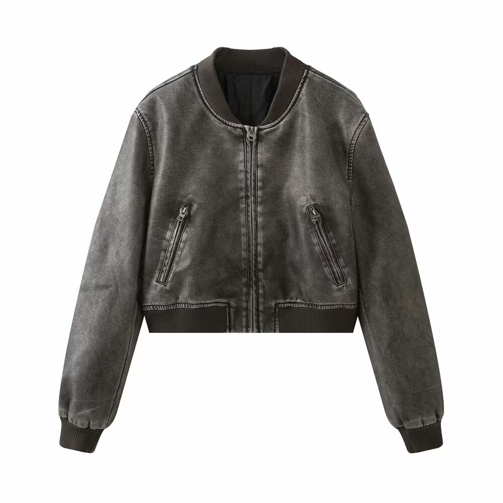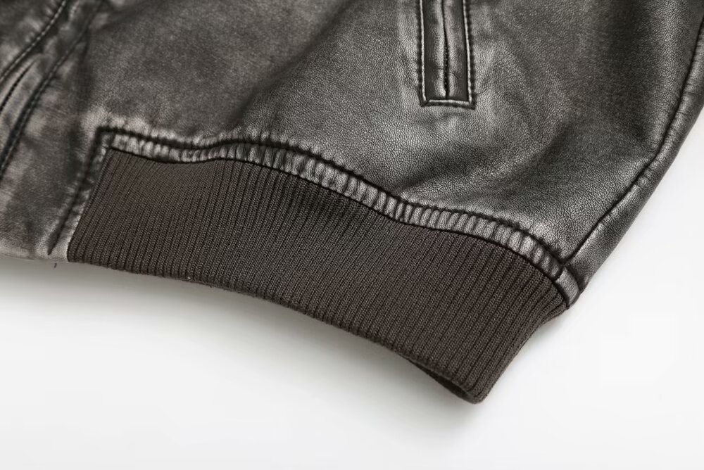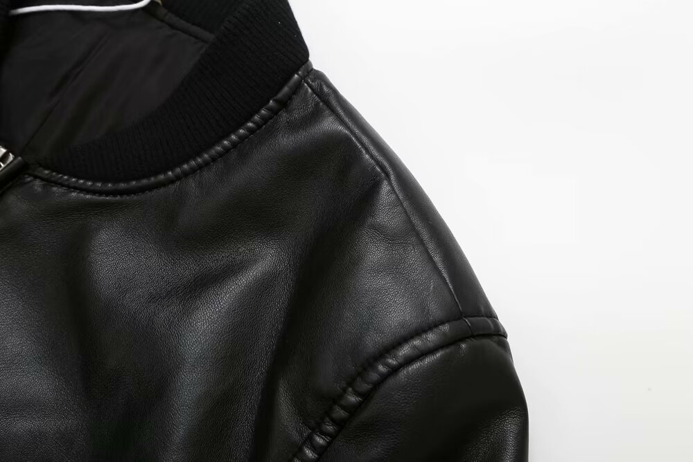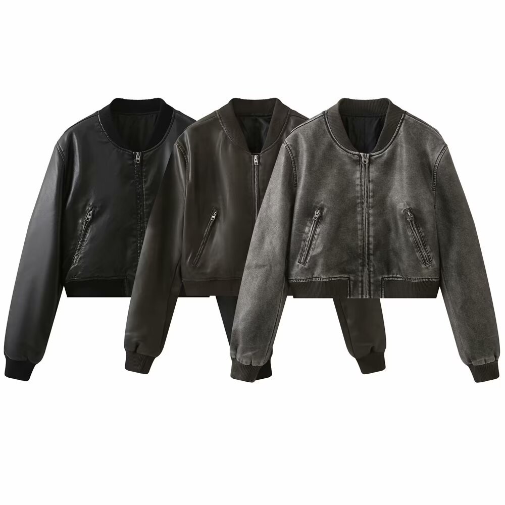 미국 오토바이 모조 가죽 폭격기 재킷 탑 여성 가을 새로운 유럽과 미국의 뜨거운 소녀 스탠드 칼라 짧은 재킷스토어 가기