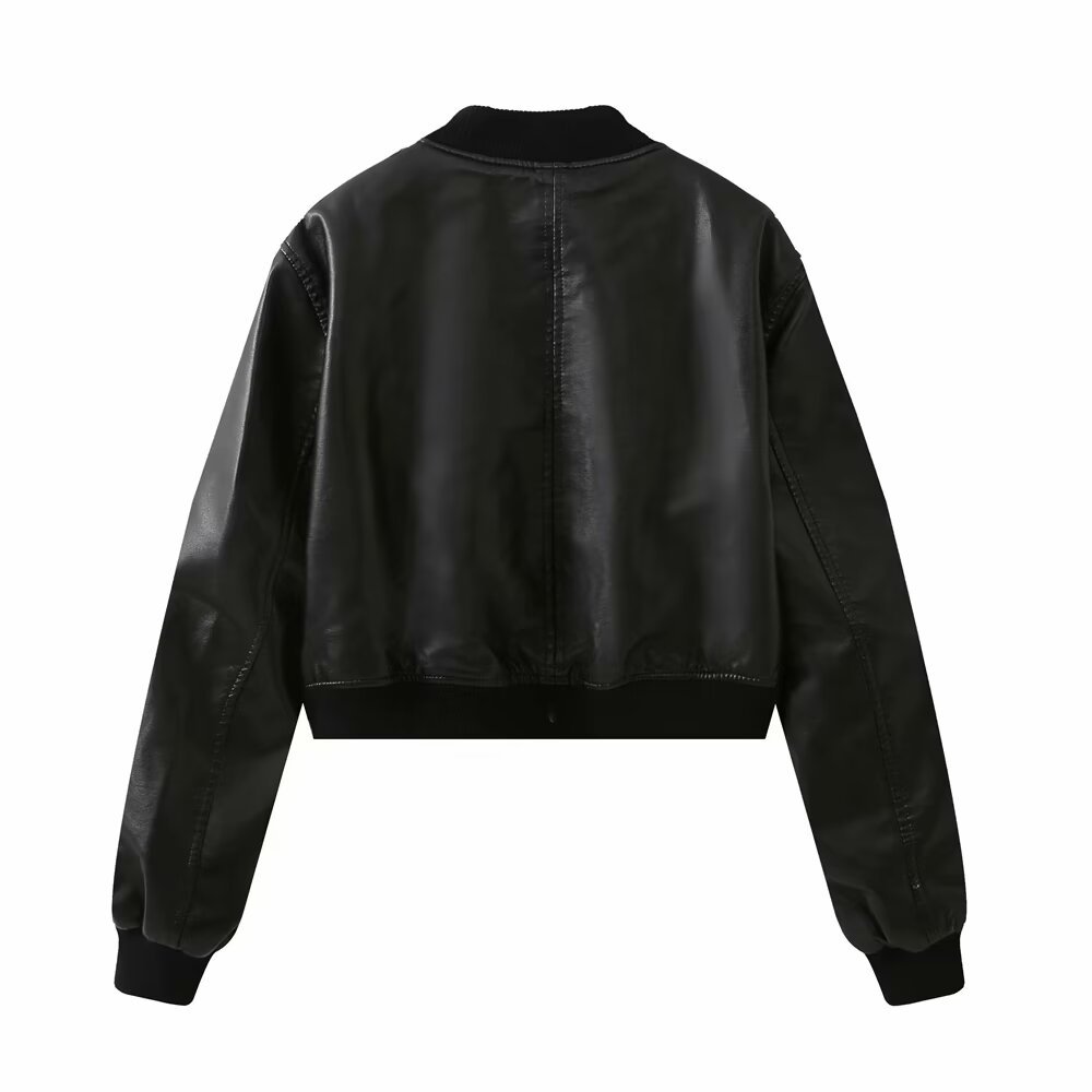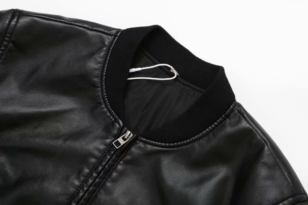 미국 오토바이 모조 가죽 폭격기 재킷 탑 여성 가을 새로운 유럽과 미국의 뜨거운 소녀 스탠드 칼라 짧은 재킷