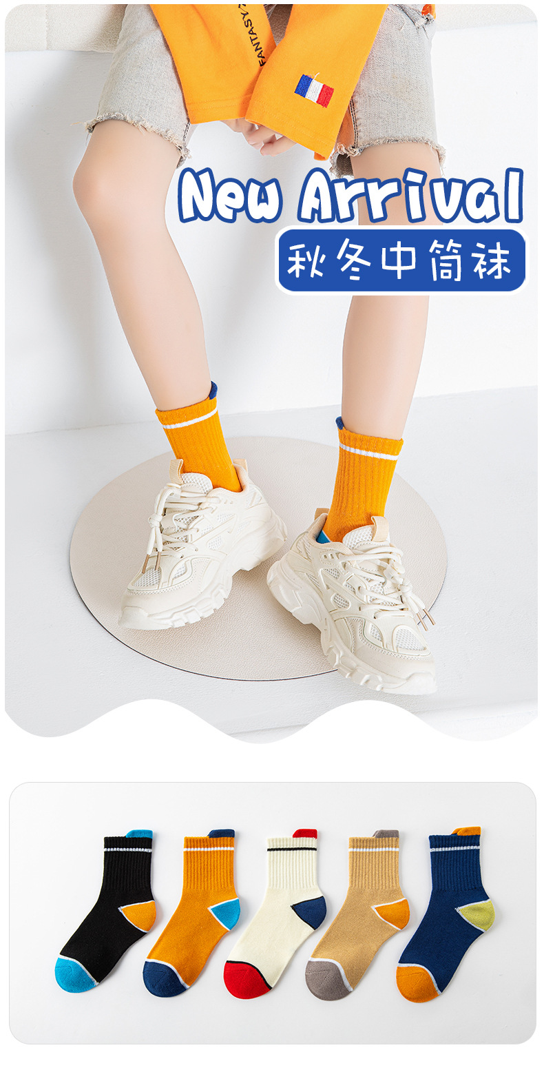 아동용 양말, 가을 신상품, A급 면 양말, 종아리 중간 양말, 땀 흡수성 학생용 단색 스포츠 트렌디 양말, 아동용 양말스토어 가기