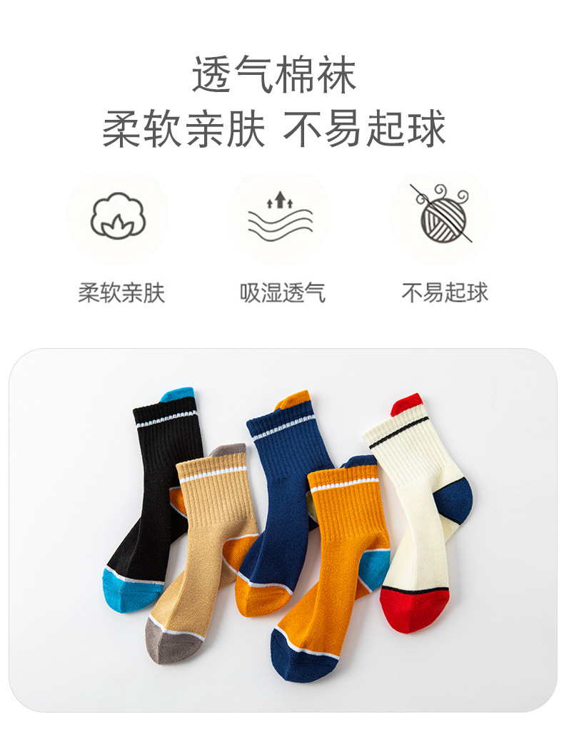男童袜子秋冬新款中筒袜吸汗学生棉袜纯色运动潮袜少年袜儿童袜子