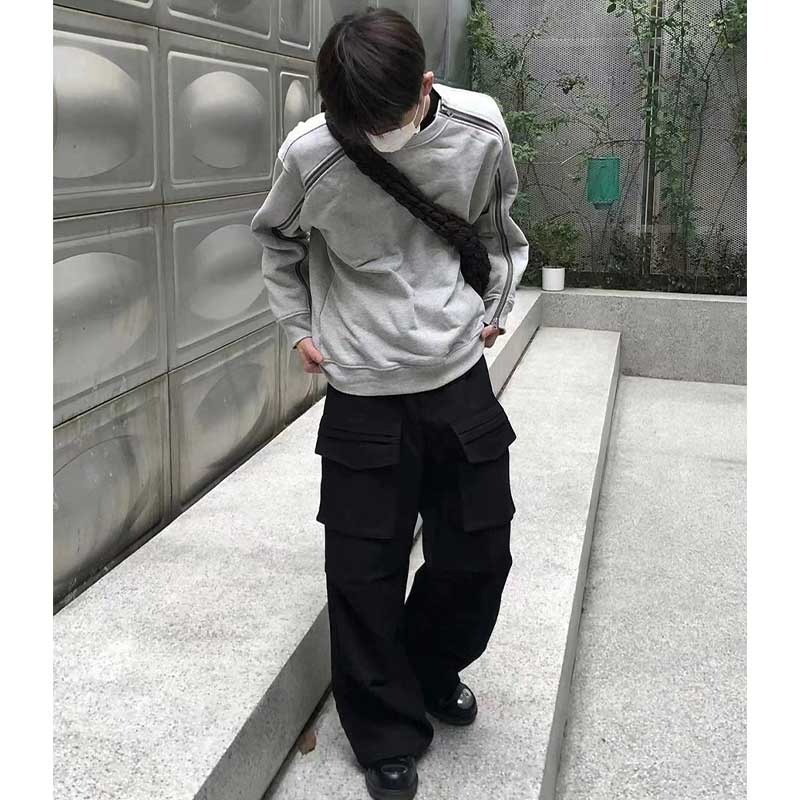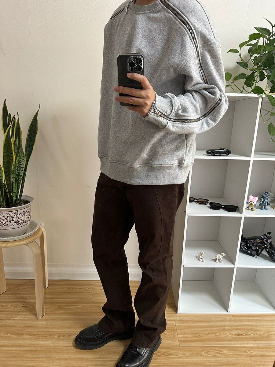 독특한 지퍼 그레이 스웨트 셔츠 남성 가을 미국 디자인 센스 헤비 하드 후드 탑 클렌핏 재킷스토어 가기