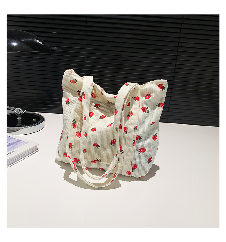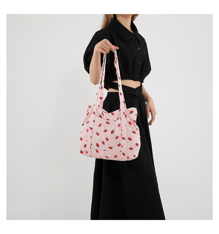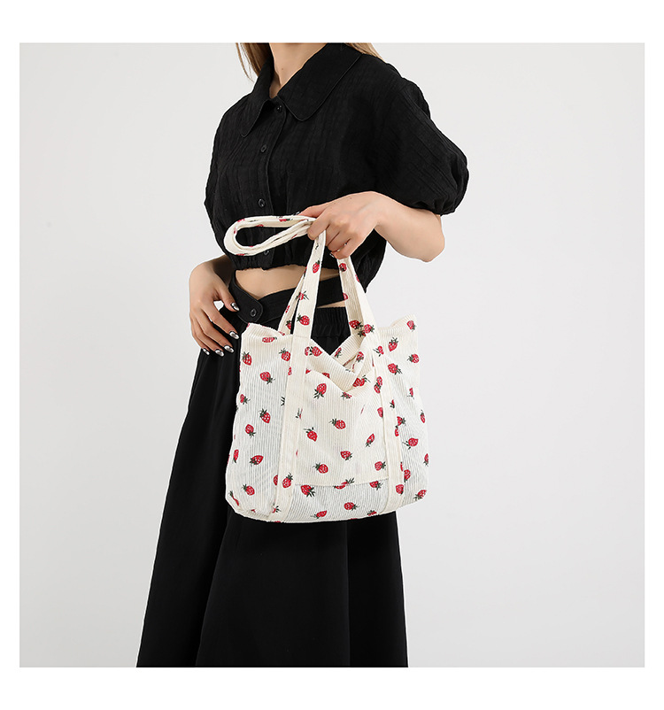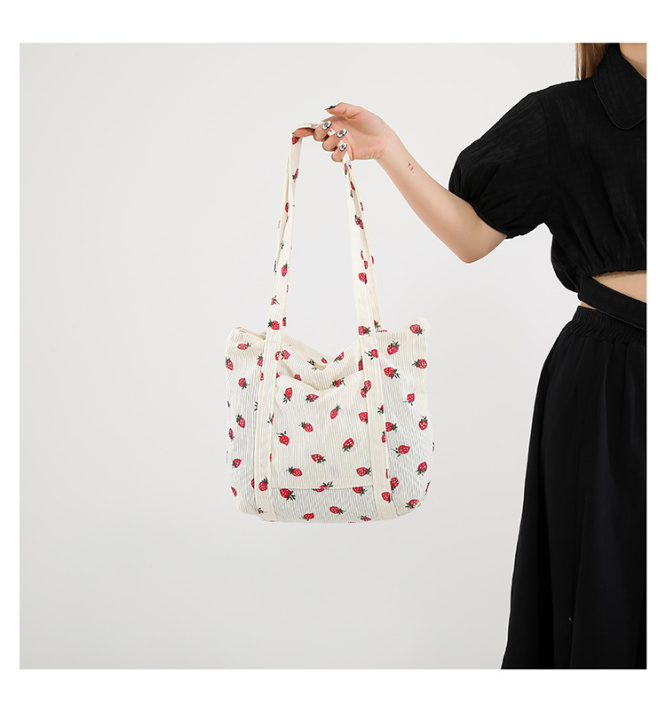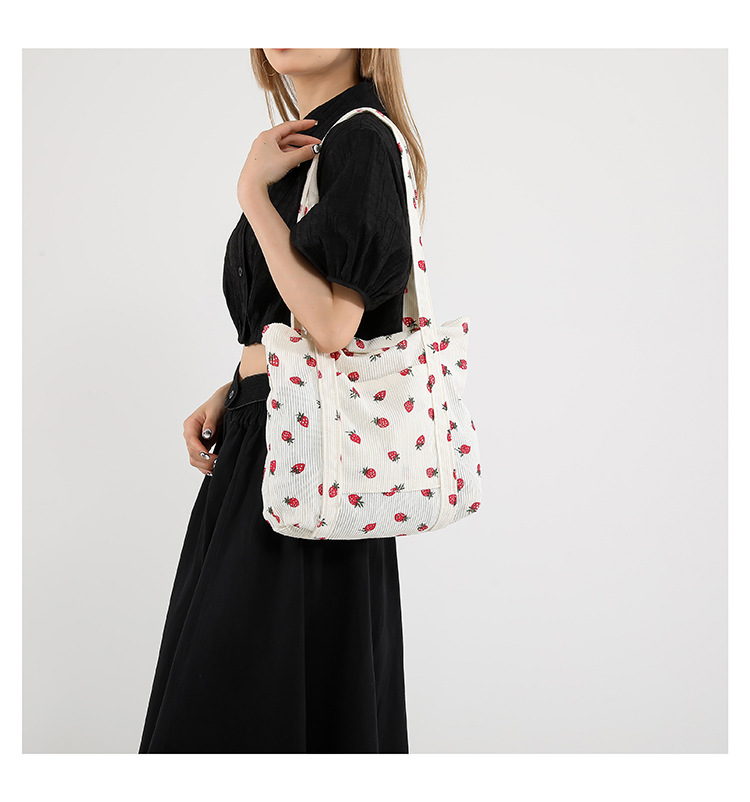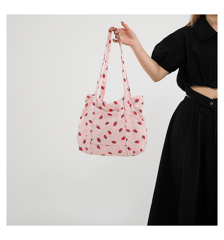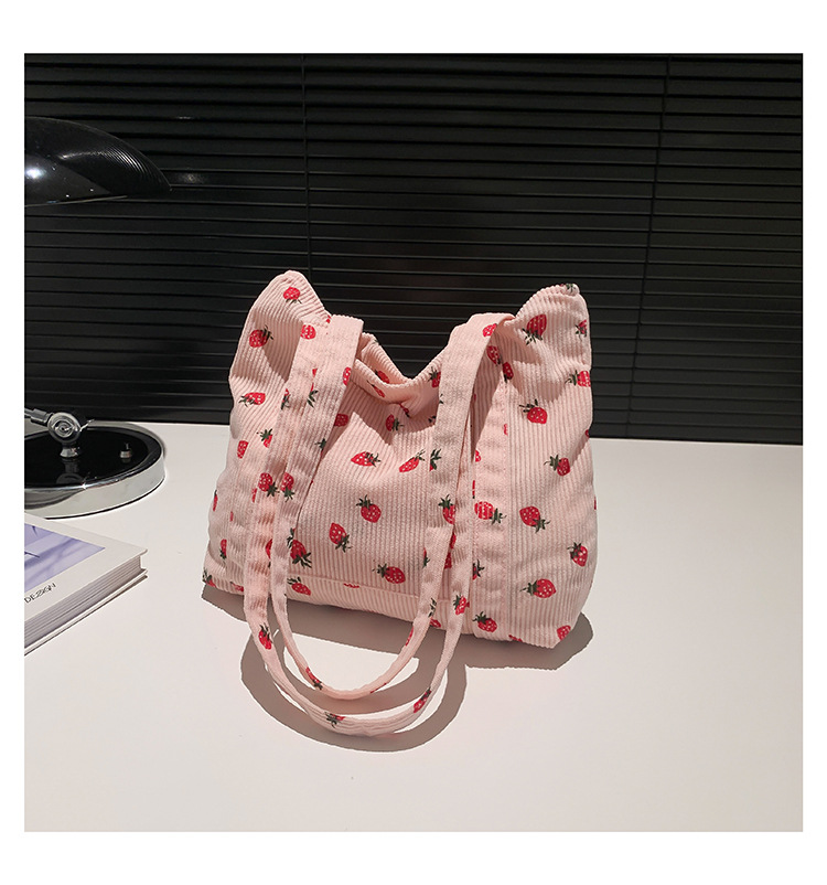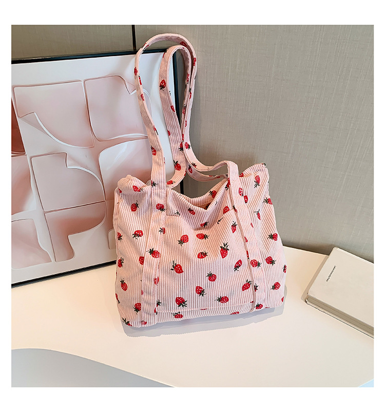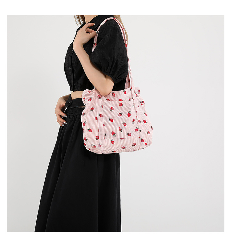 여름 2024 새로운 딸기 인쇄 어깨 가방 대용량 올 매치 토트 백 올해 여성을위한 인기있는 휴대용 소형 가방