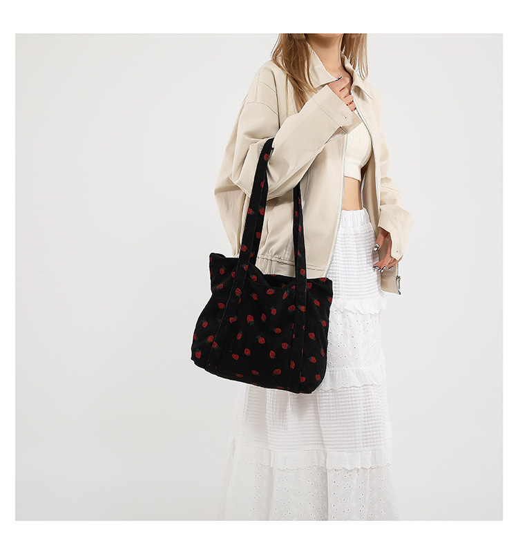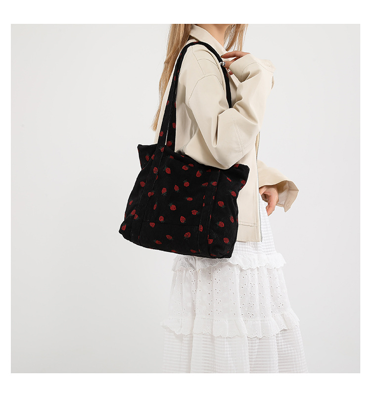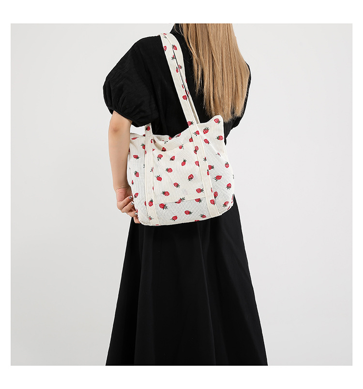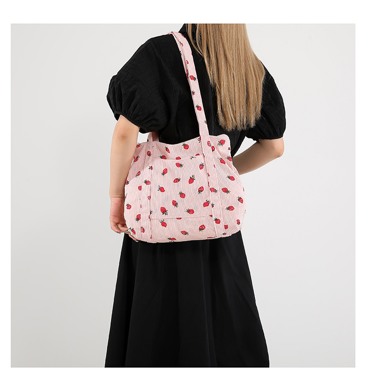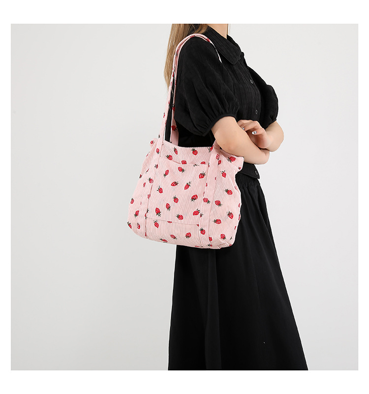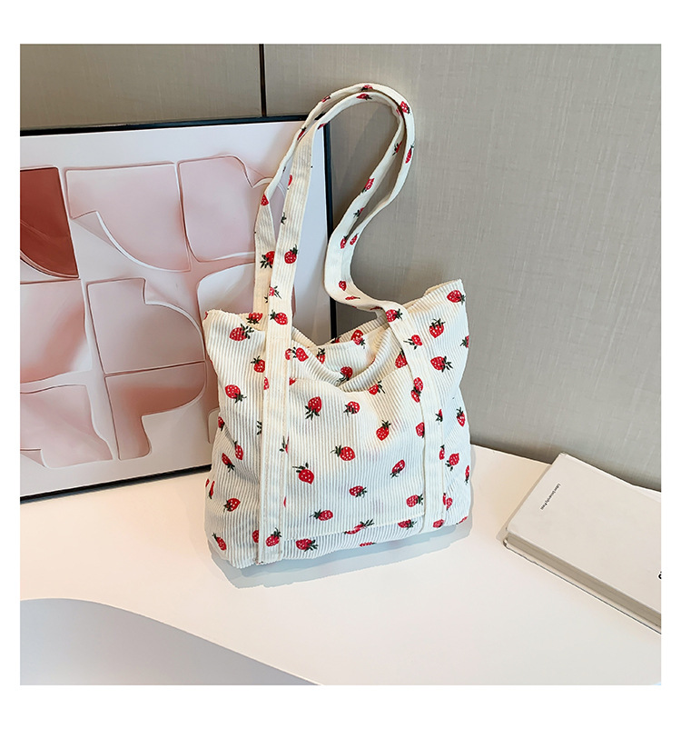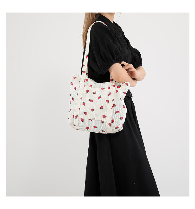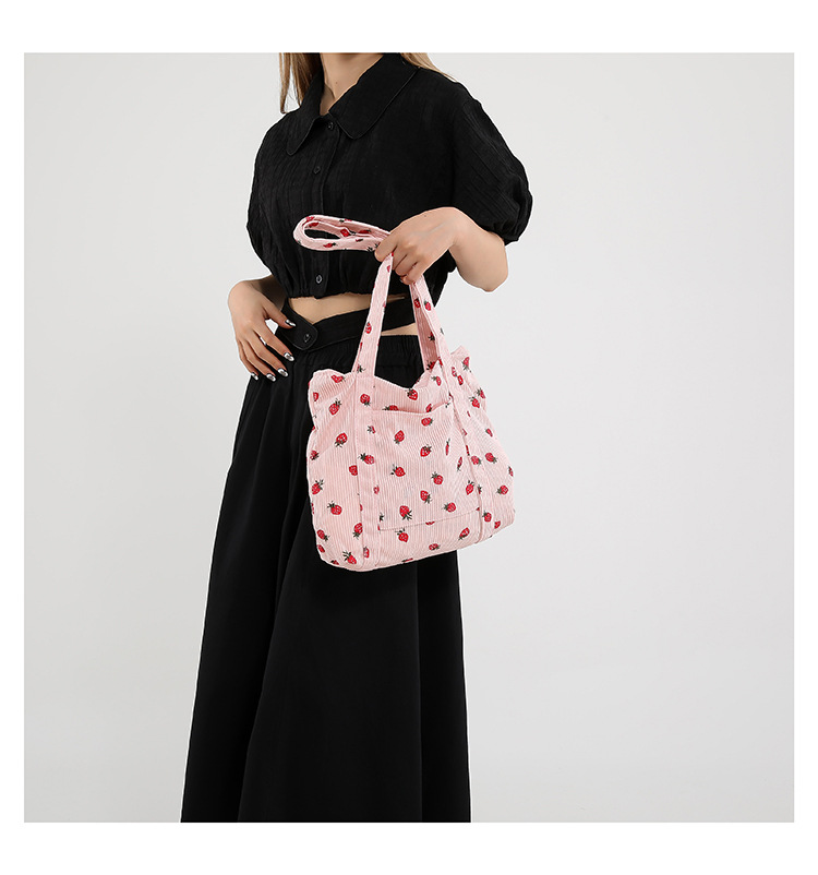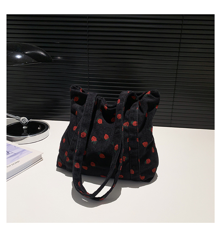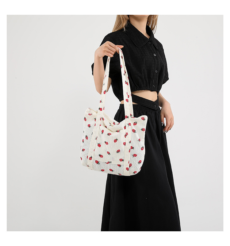 여름 2024 새로운 딸기 인쇄 어깨 가방 대용량 올 매치 토트 백 올해 여성을위한 인기있는 휴대용 소형 가방