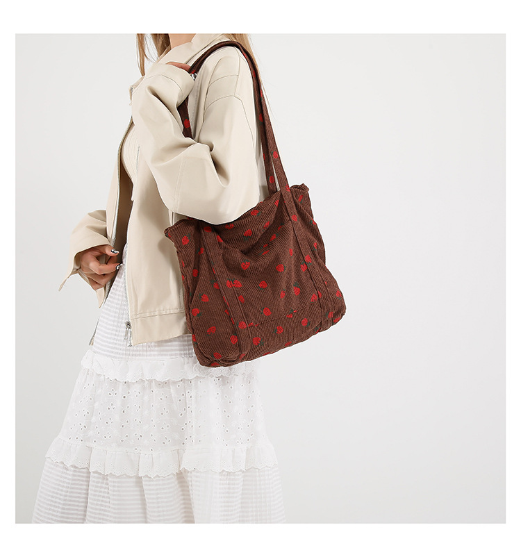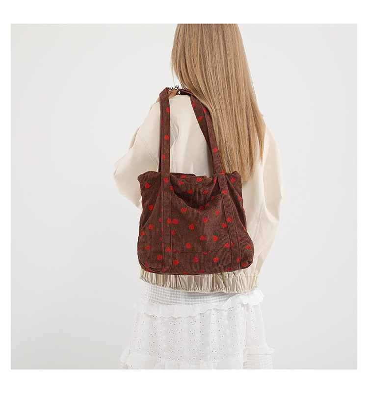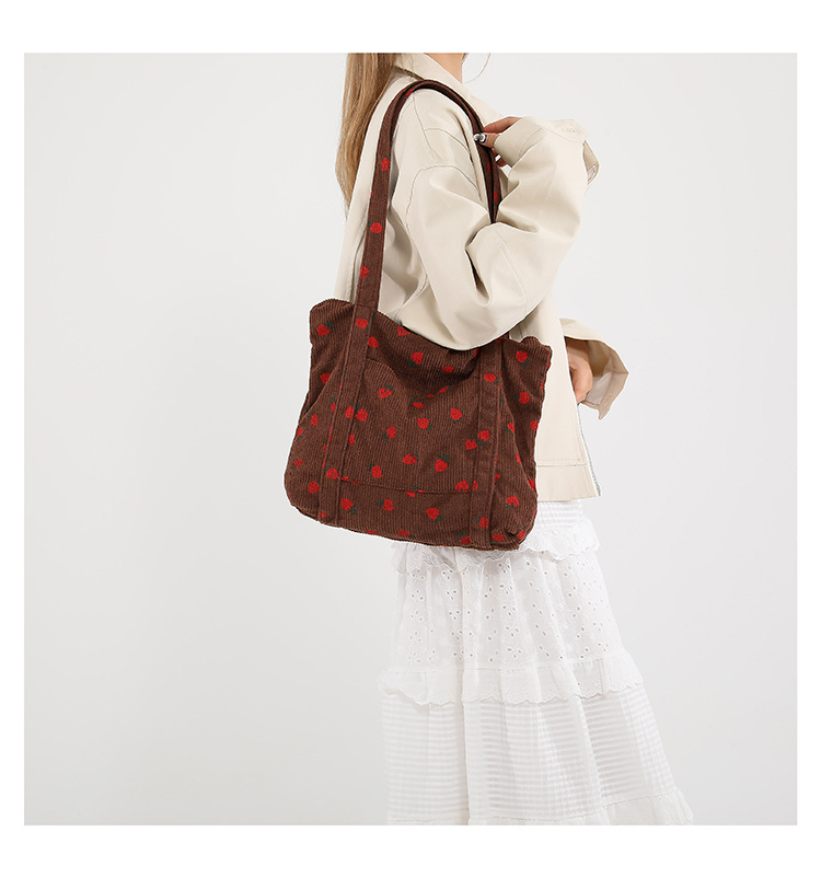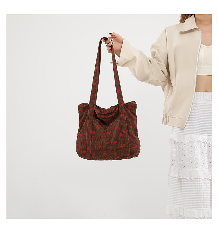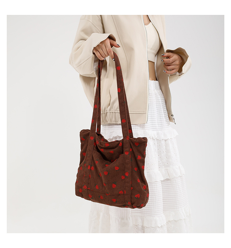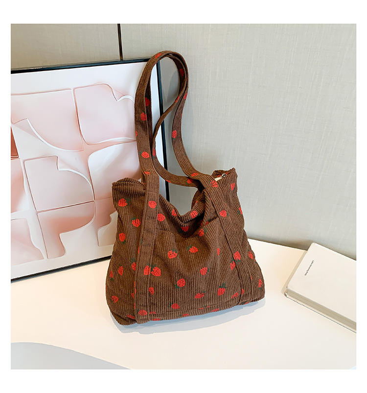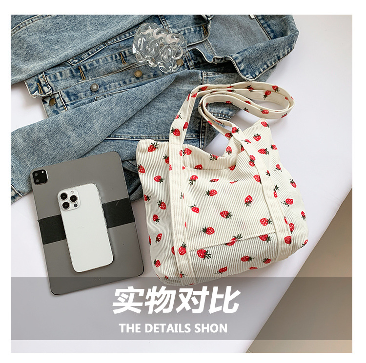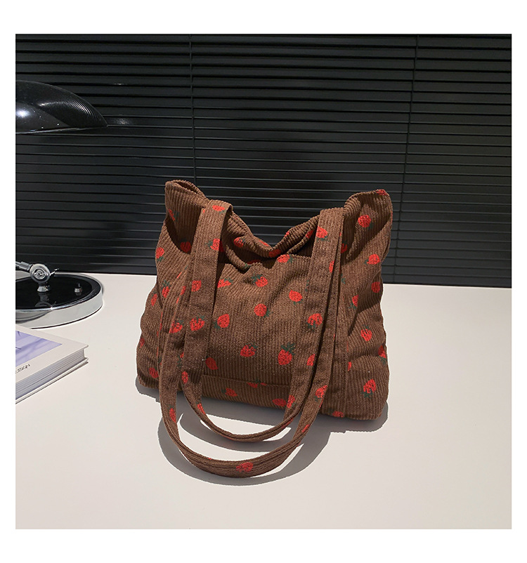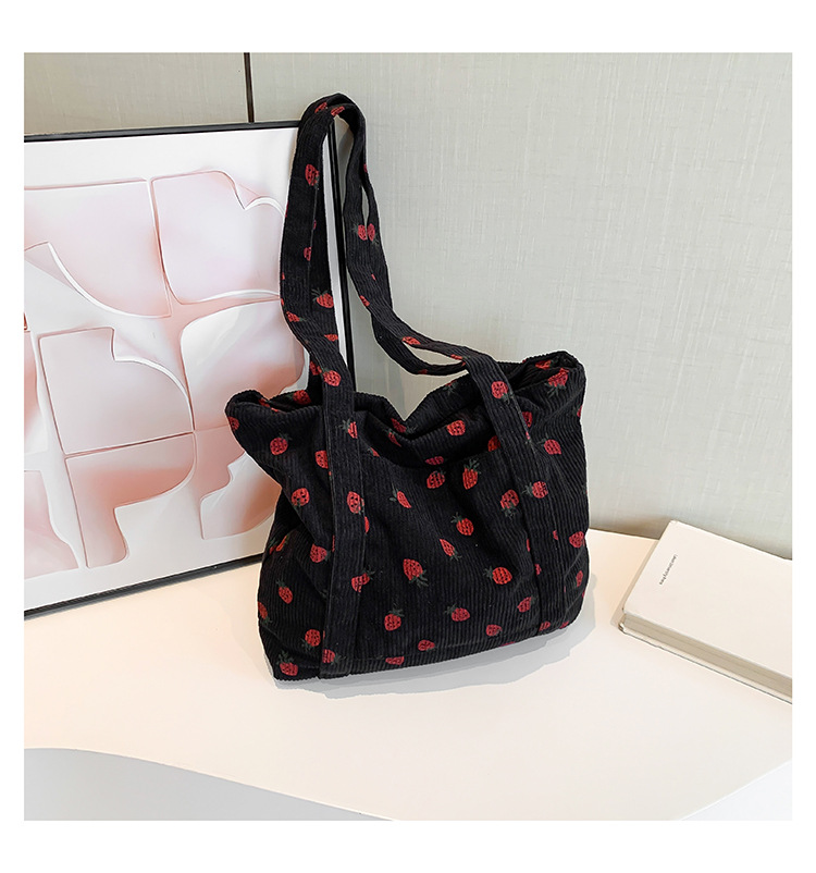 여름 2024 새로운 딸기 인쇄 어깨 가방 대용량 올 매치 토트 백 올해 여성을위한 인기있는 휴대용 소형 가방
