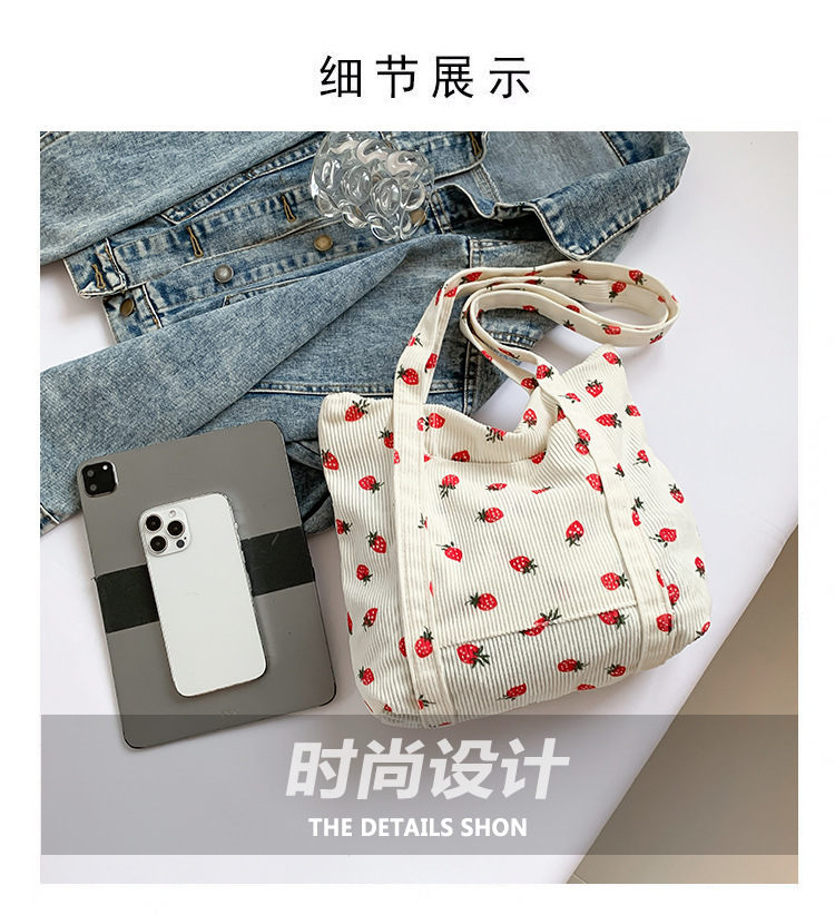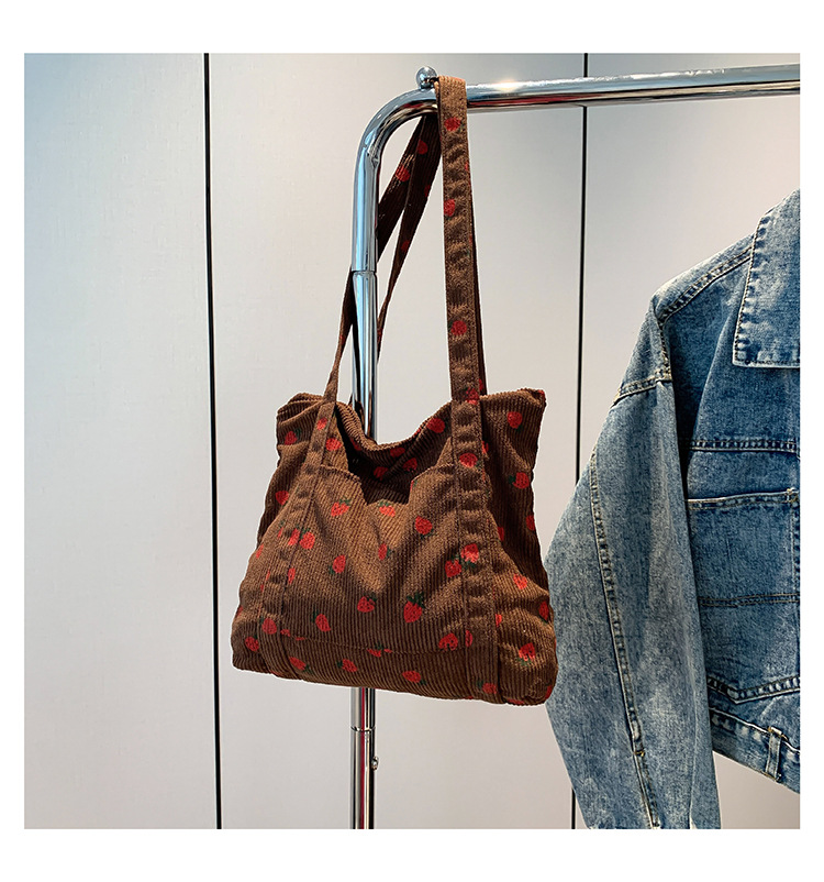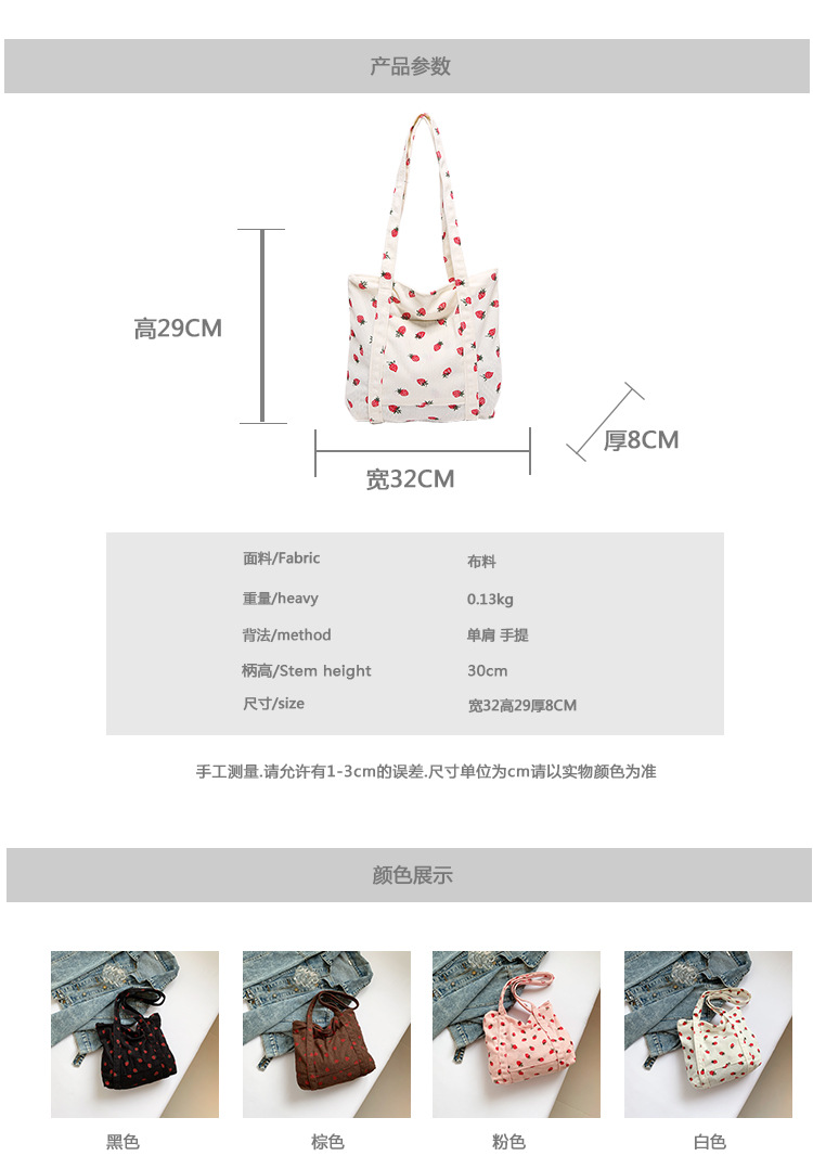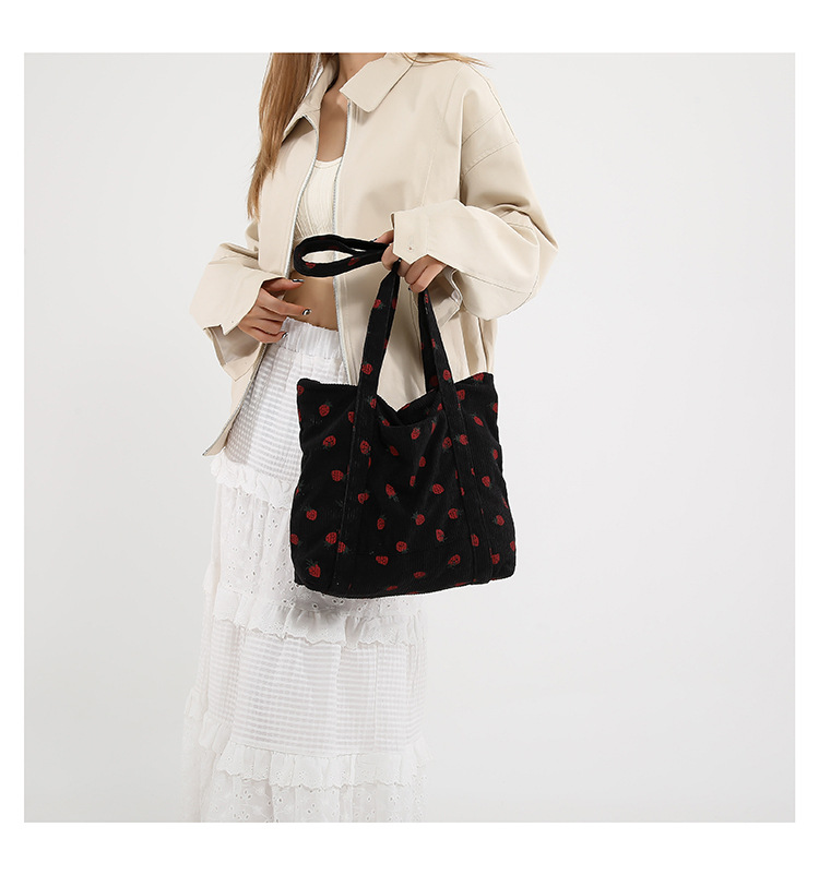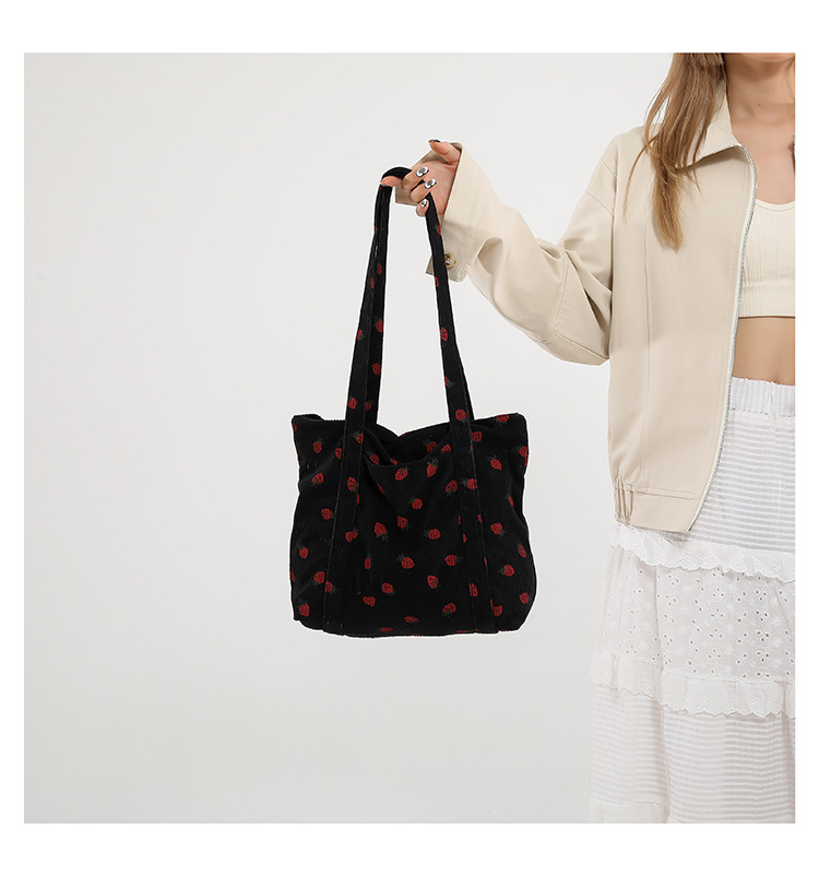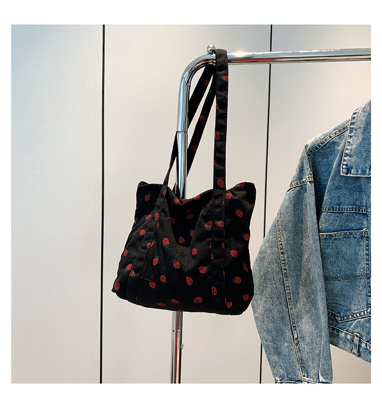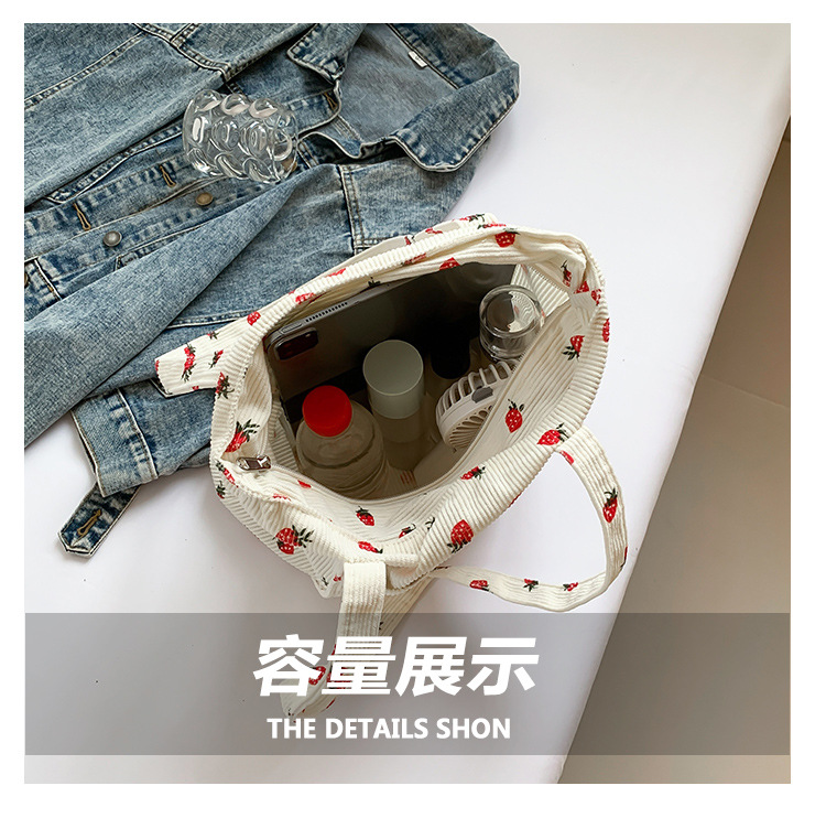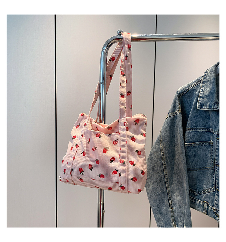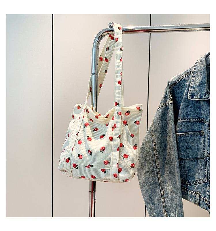 여름 2024 새로운 딸기 인쇄 어깨 가방 대용량 올 매치 토트 백 올해 여성을위한 인기있는 휴대용 소형 가방스토어 가기