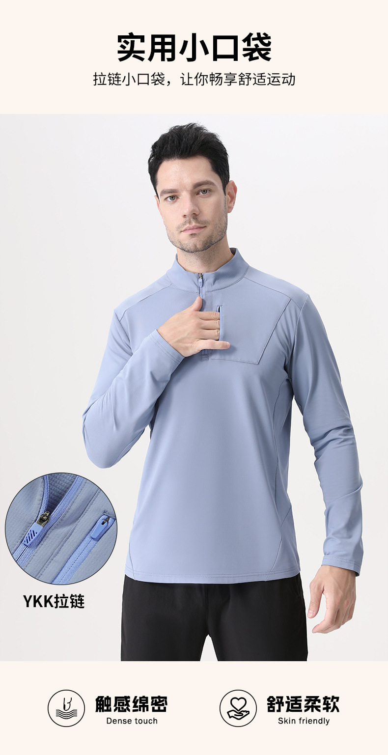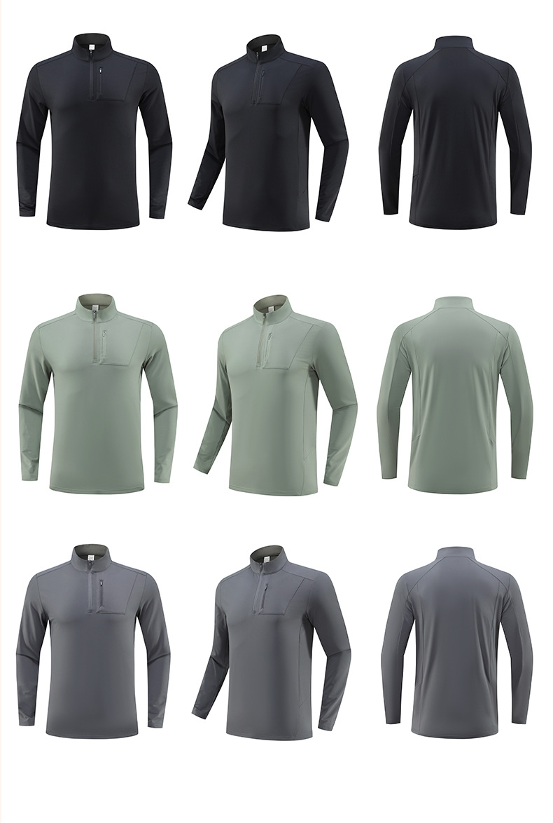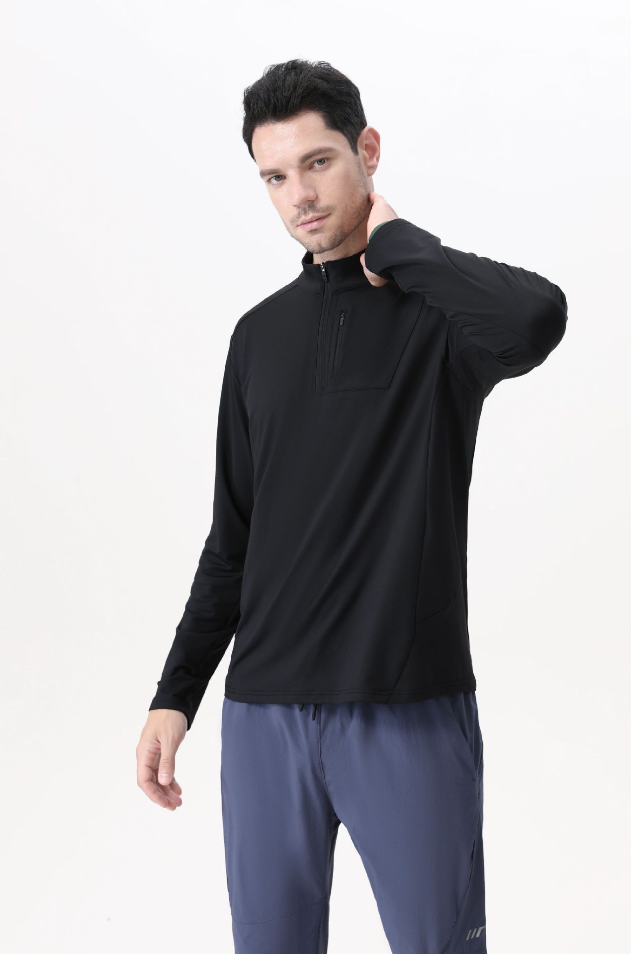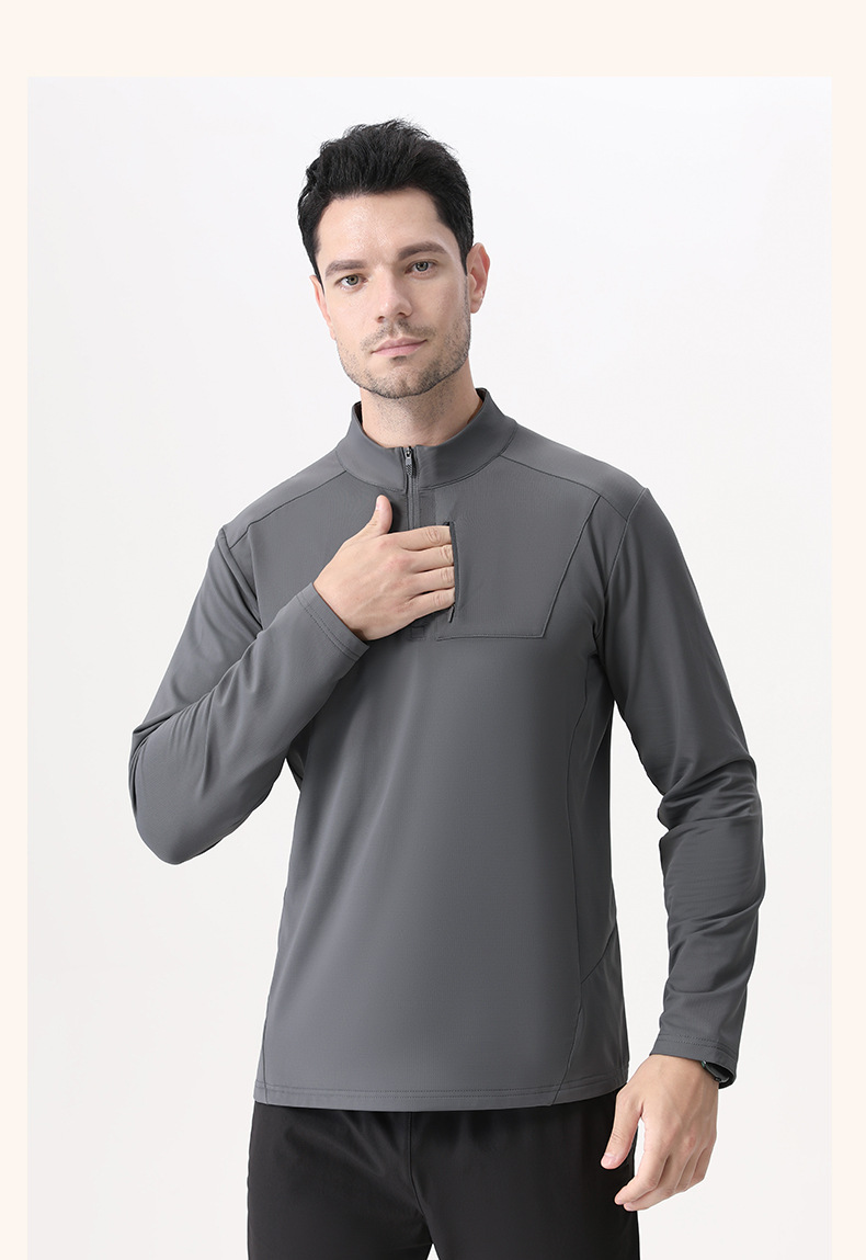 Big.Jiao City 기능성 남성용 속건성 땀 흡수 하프 지퍼 티셔츠 야외 스포츠 긴 소매 달리기 및 사이클링 편안함