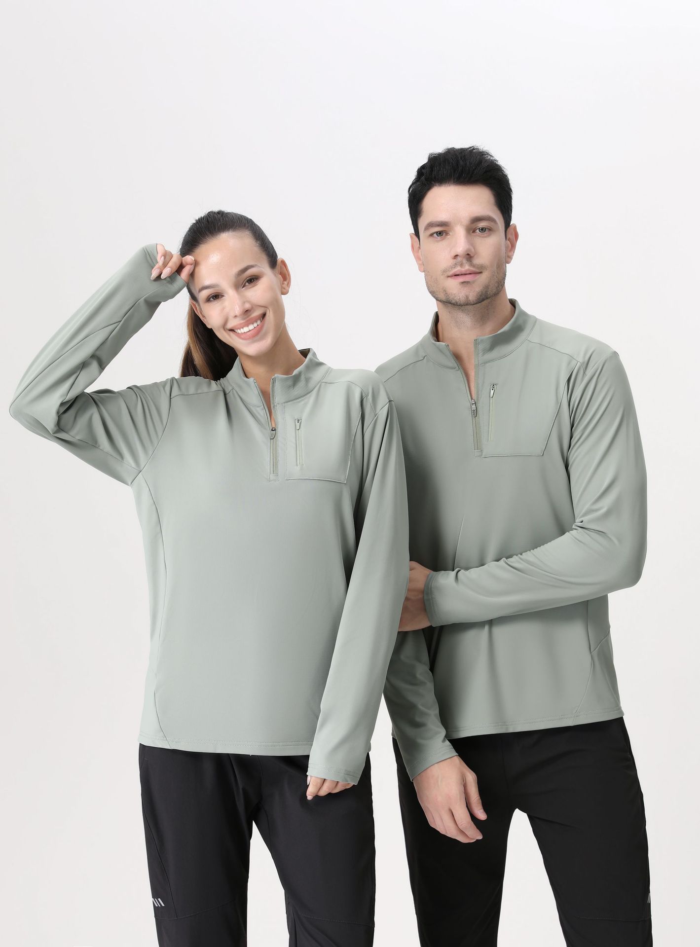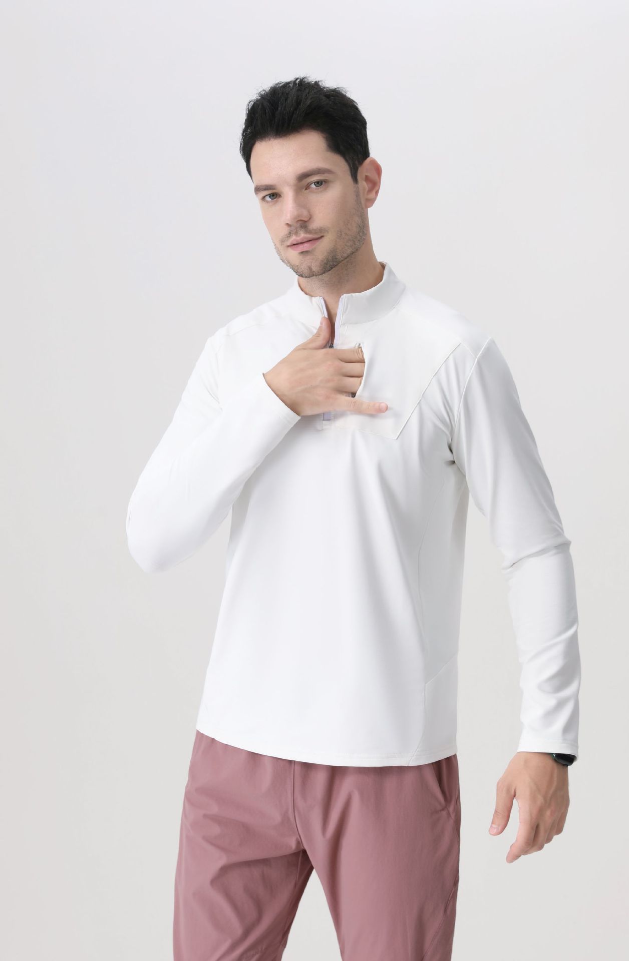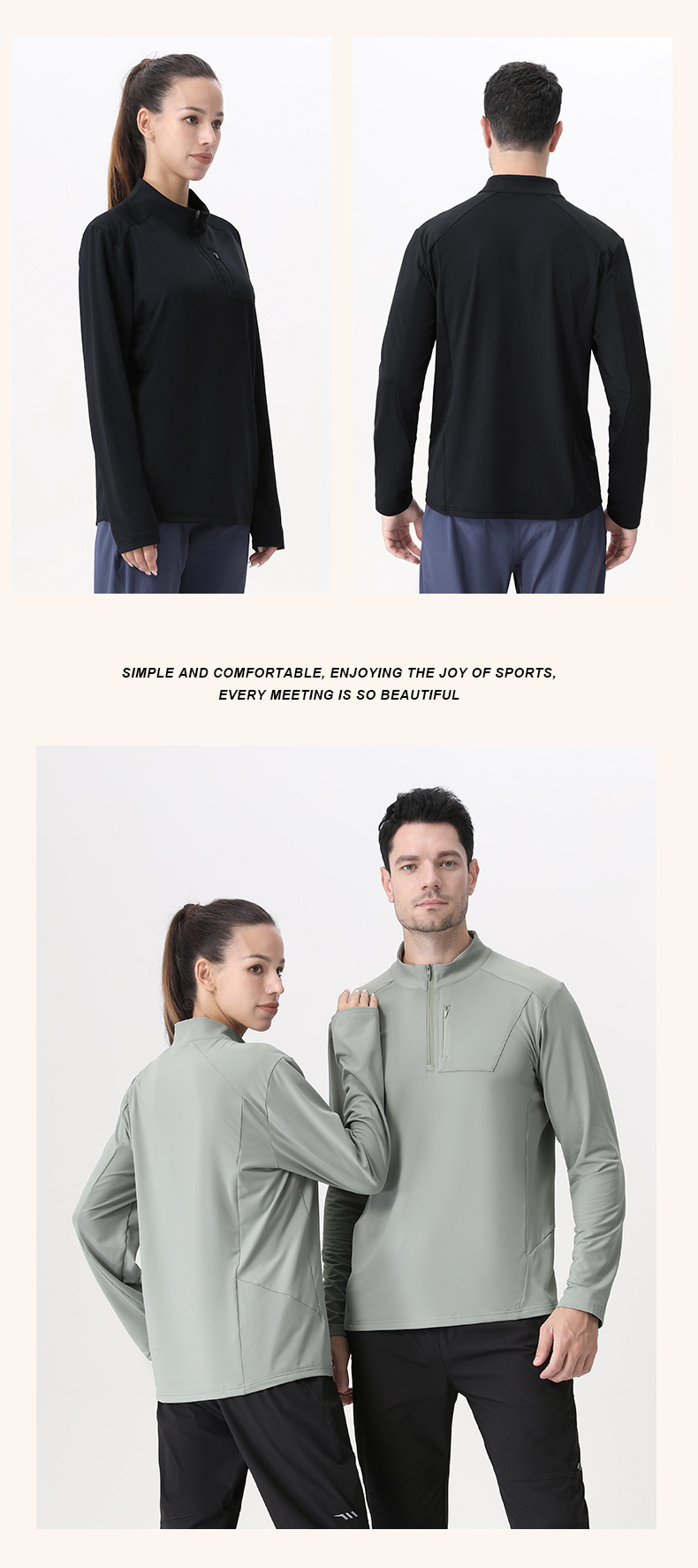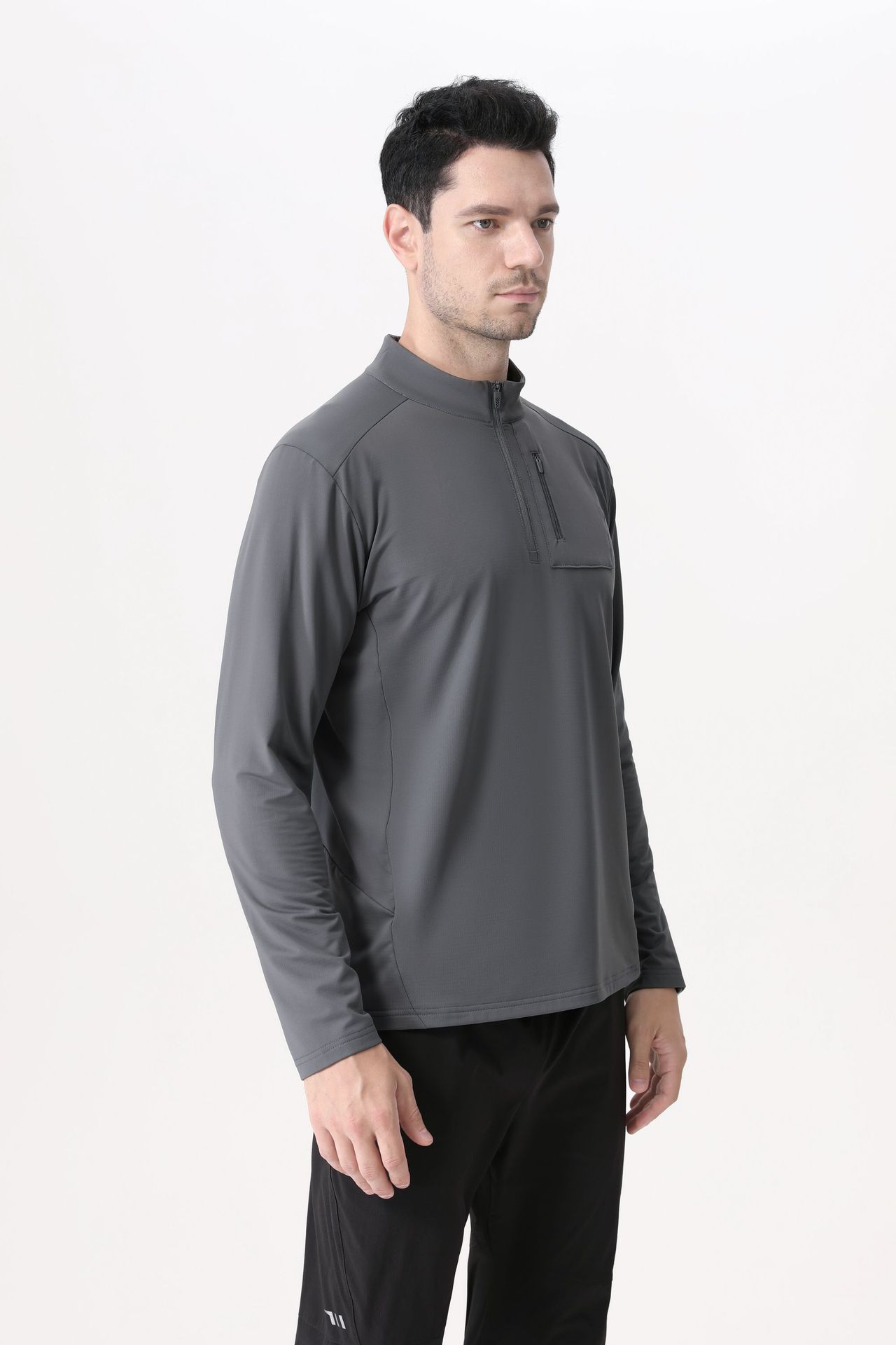 Big.Jiao City 기능성 남성용 속건성 땀 흡수 하프 지퍼 티셔츠 야외 스포츠 긴 소매 달리기 및 사이클링 편안함