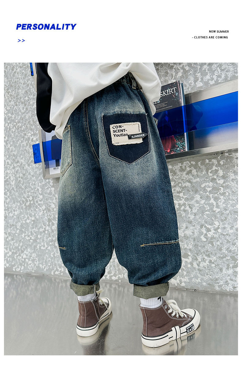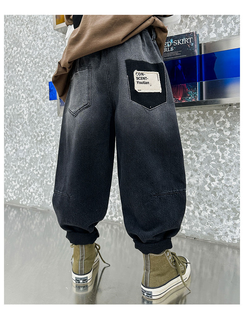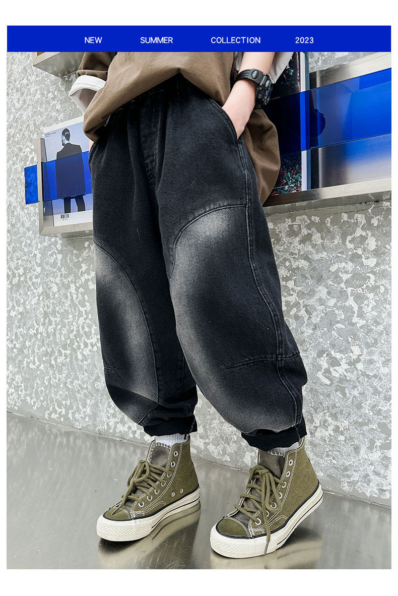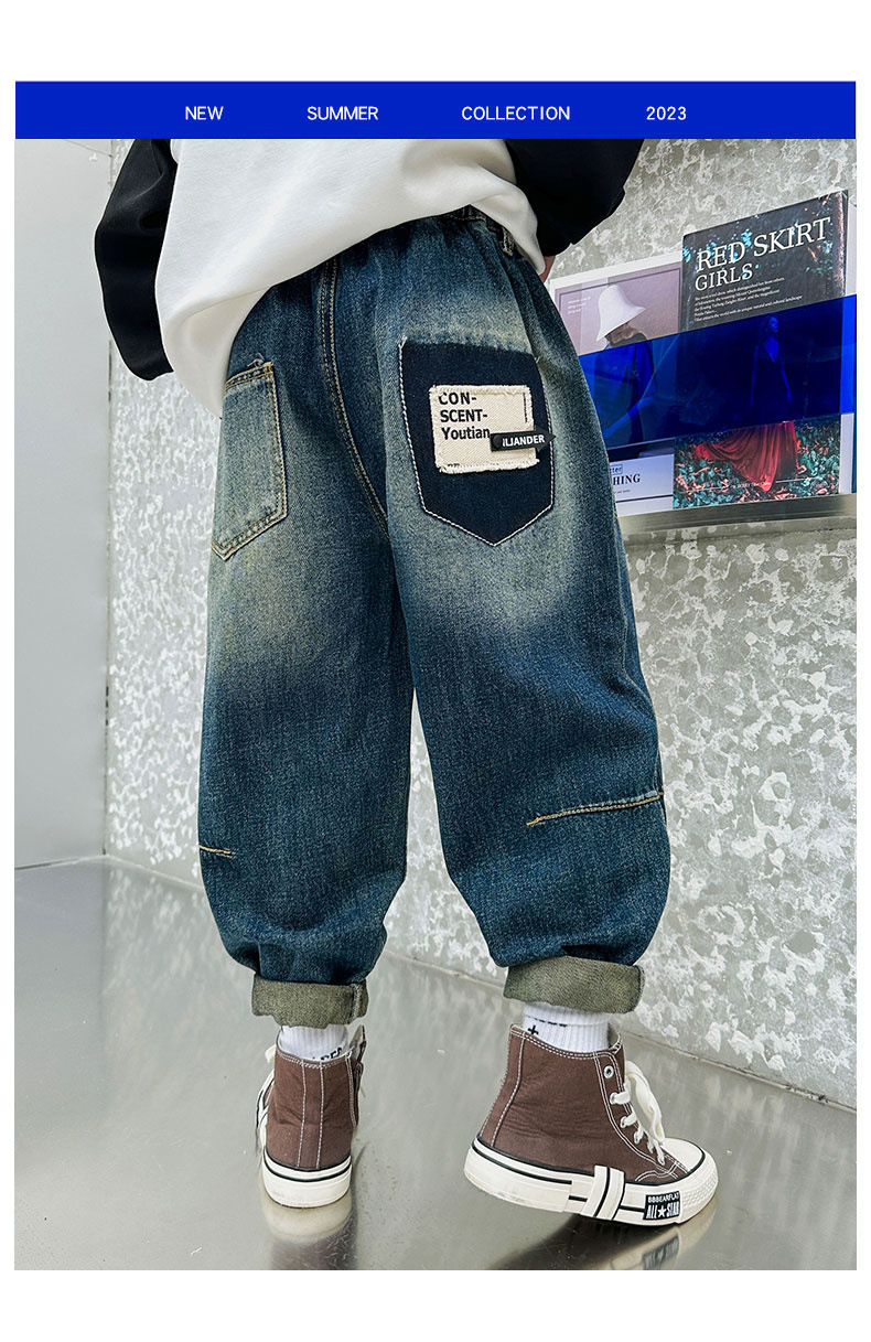 소년 바지 봄과 가을 2024 캐주얼 뉴 팬츠 빅 보이즈 아동용 스트레이트 레그 와이드 레그 청바지 봄스토어 가기