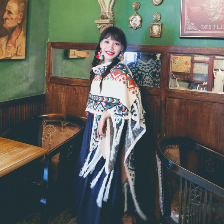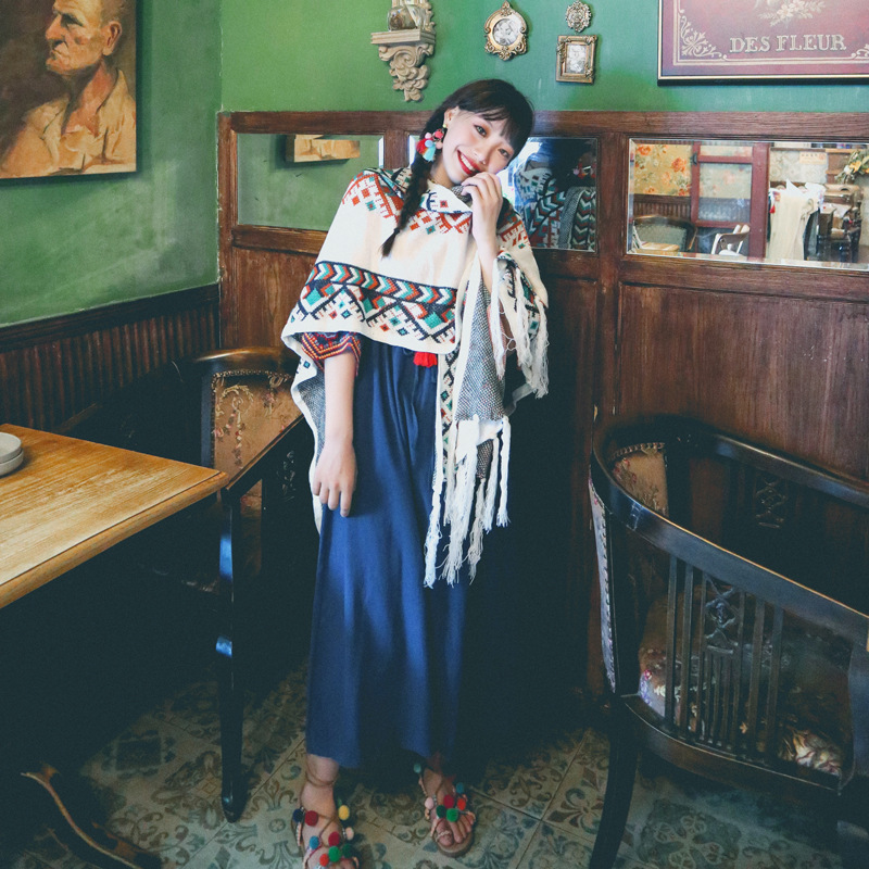 봄과 여름 민족 스타일 목도리 여성 윈난 리장 여행 장식 긴 빈티지 케이프 술 케이프 스카프