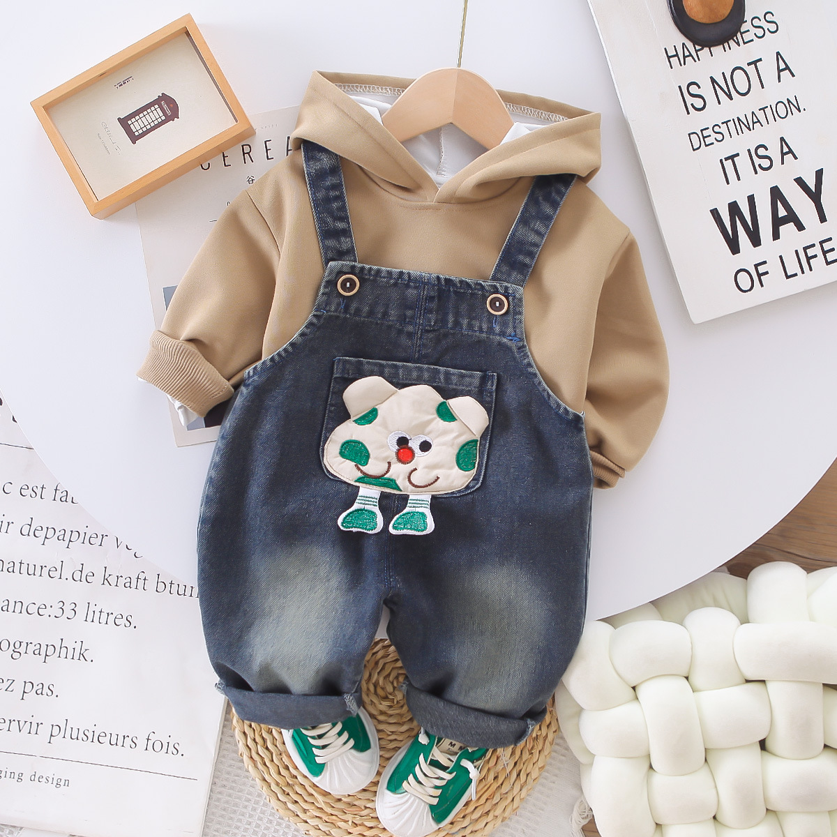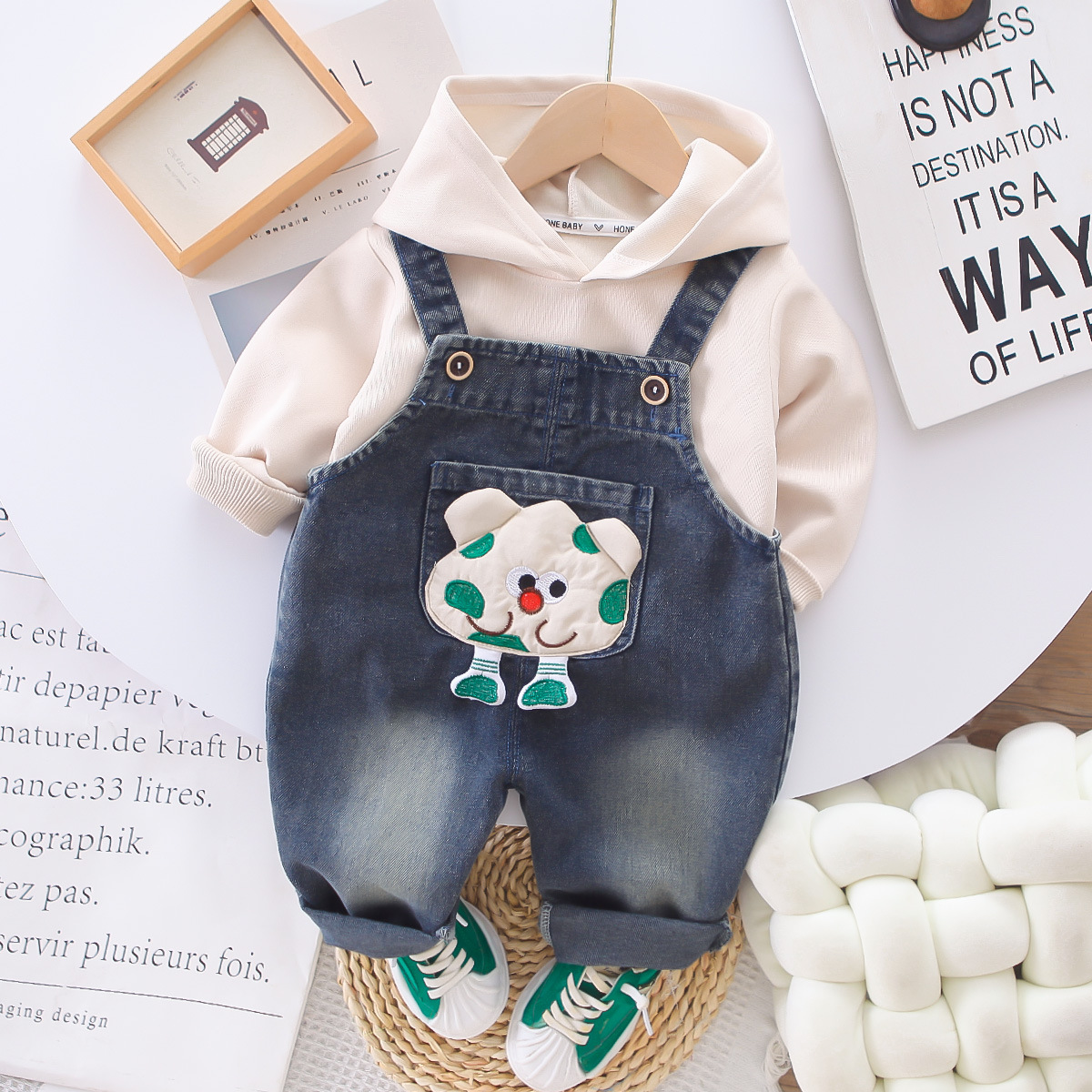 아기 옷 봄 한국 스타일 서양식 후드 턱받이 바지 투피스 세트 1 세 소년 봄 유행 세트 바지스토어 가기