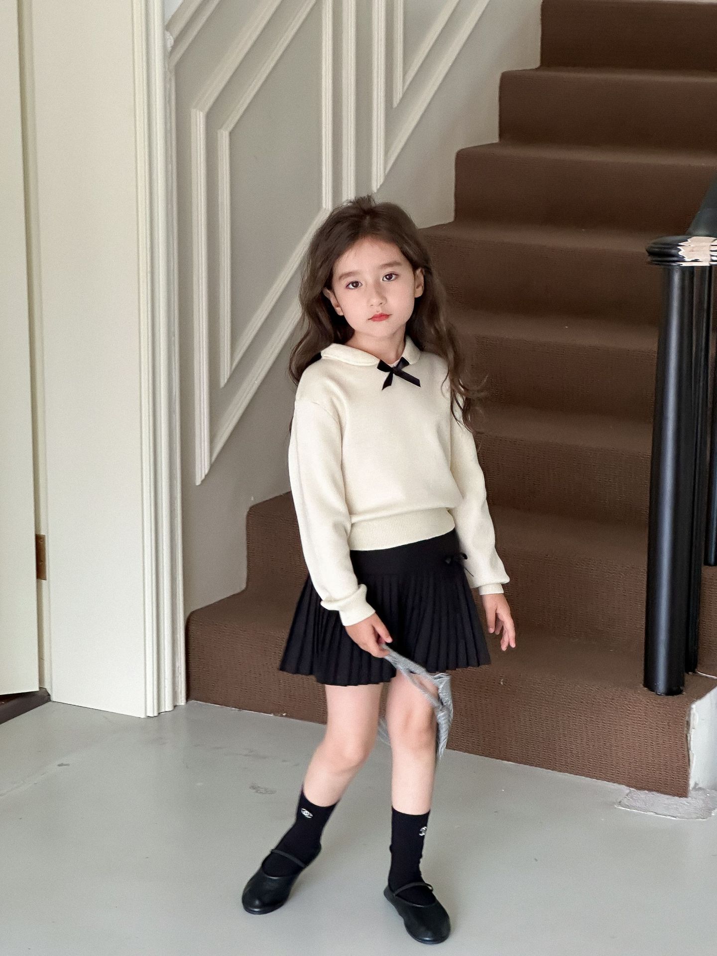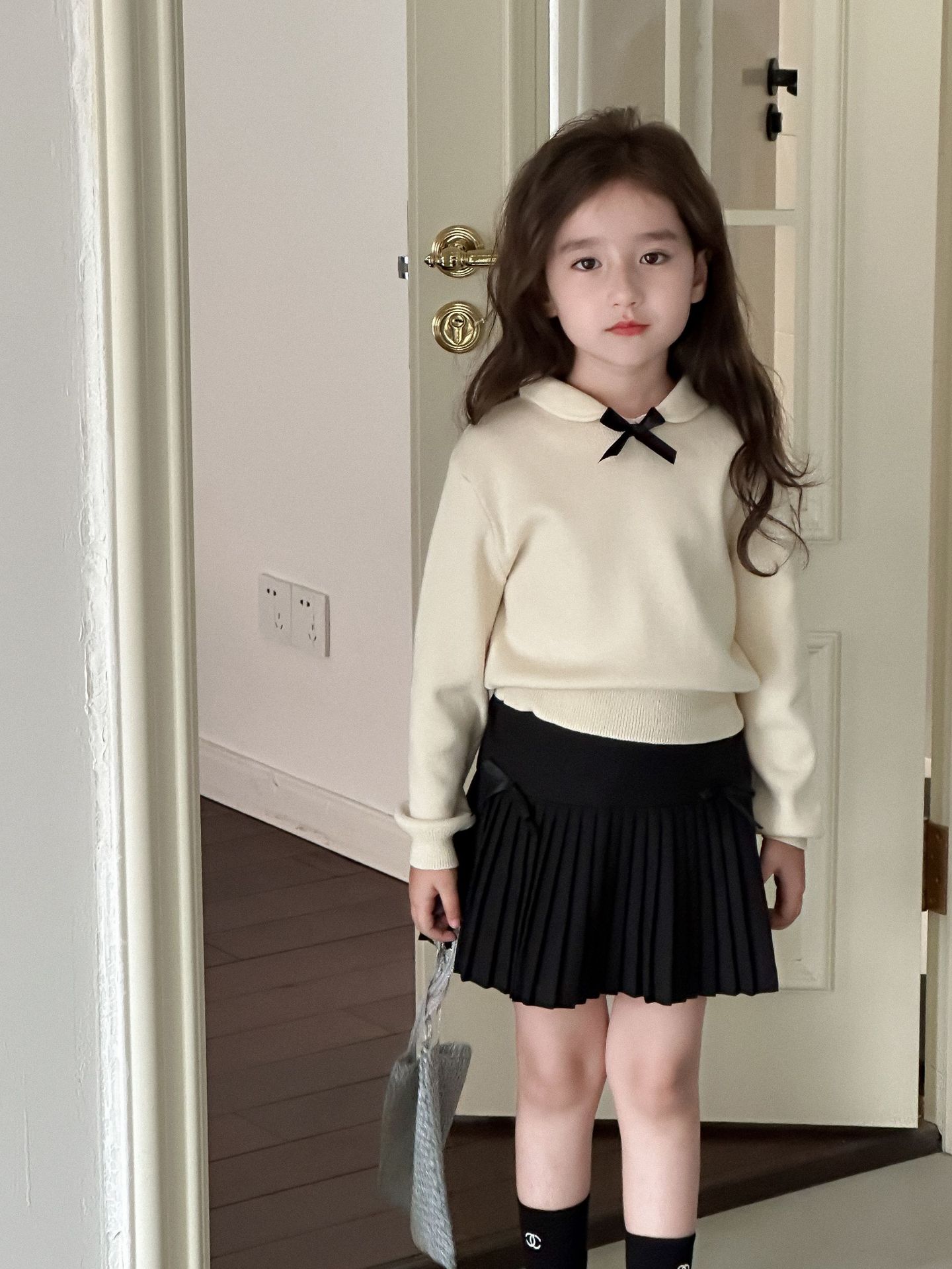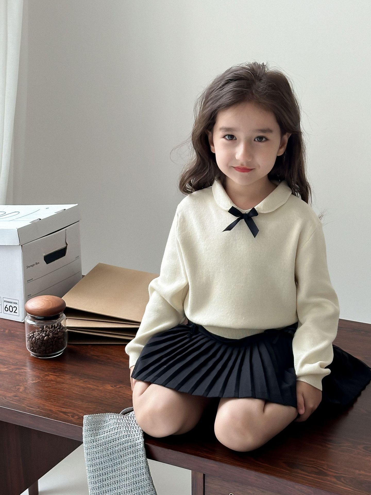 여자 니트 스웨터 2024 새로운 가을 스타일 miu 대학 스타일 보우 레이어드 풀오버 스웨터 인형 칼라 탑스토어 가기
