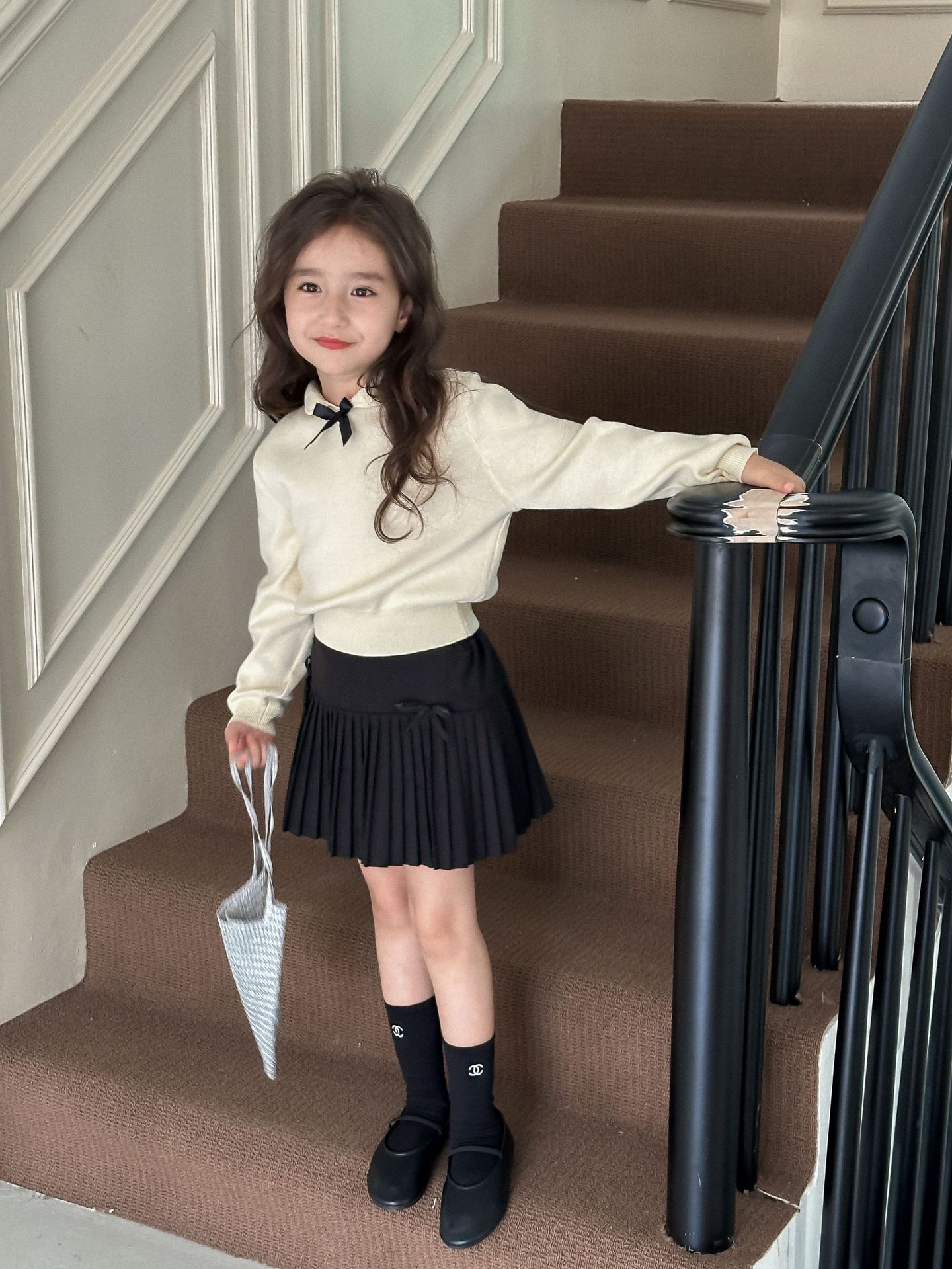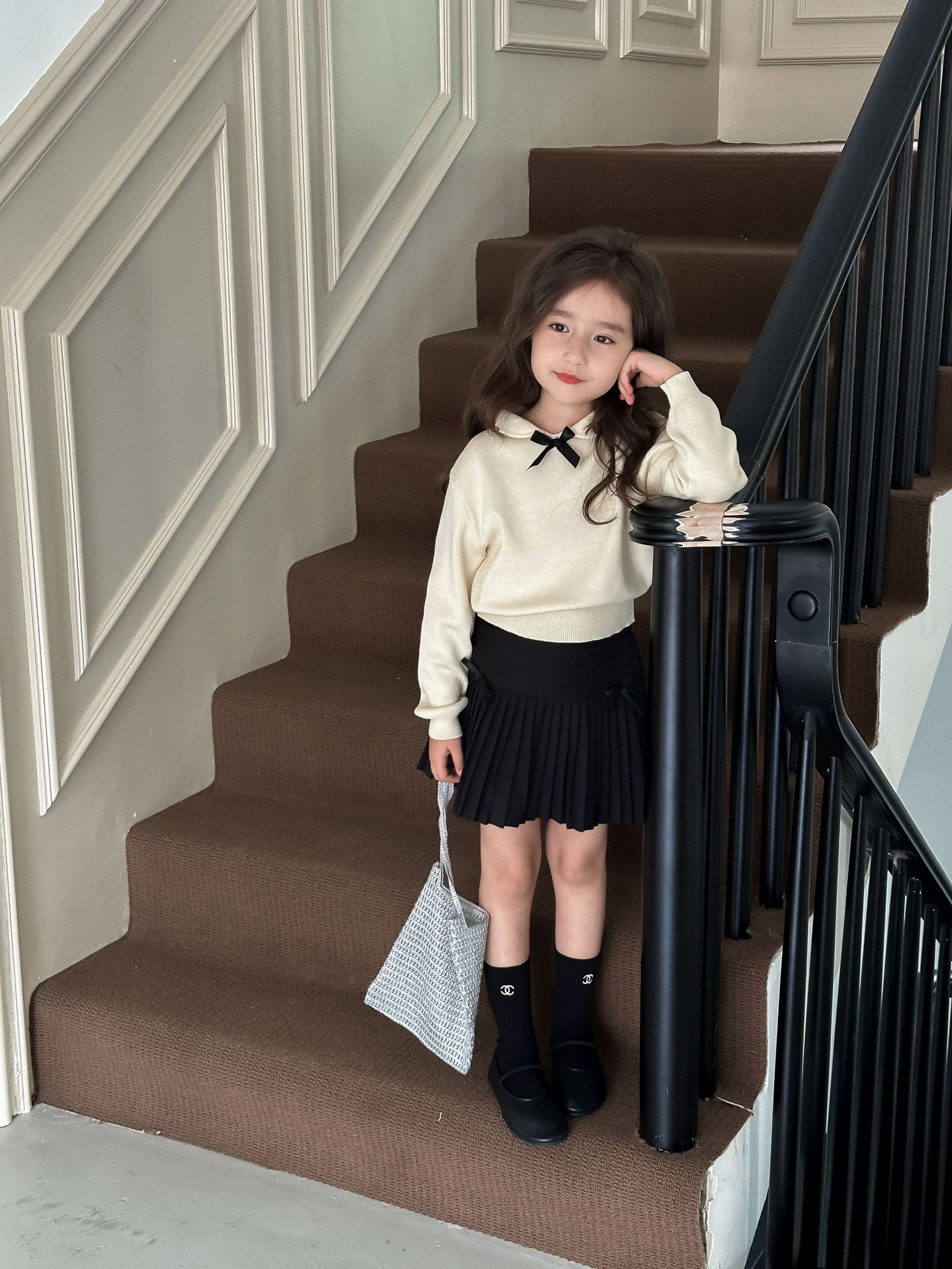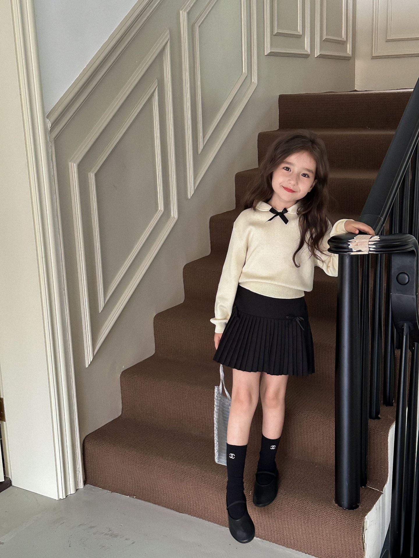 여자 니트 스웨터 2024 새로운 가을 스타일 miu 대학 스타일 보우 레이어드 풀오버 스웨터 인형 칼라 탑스토어 가기