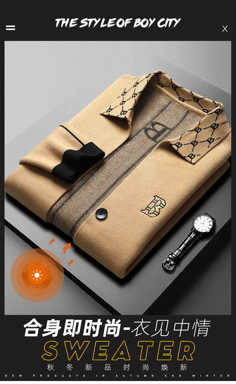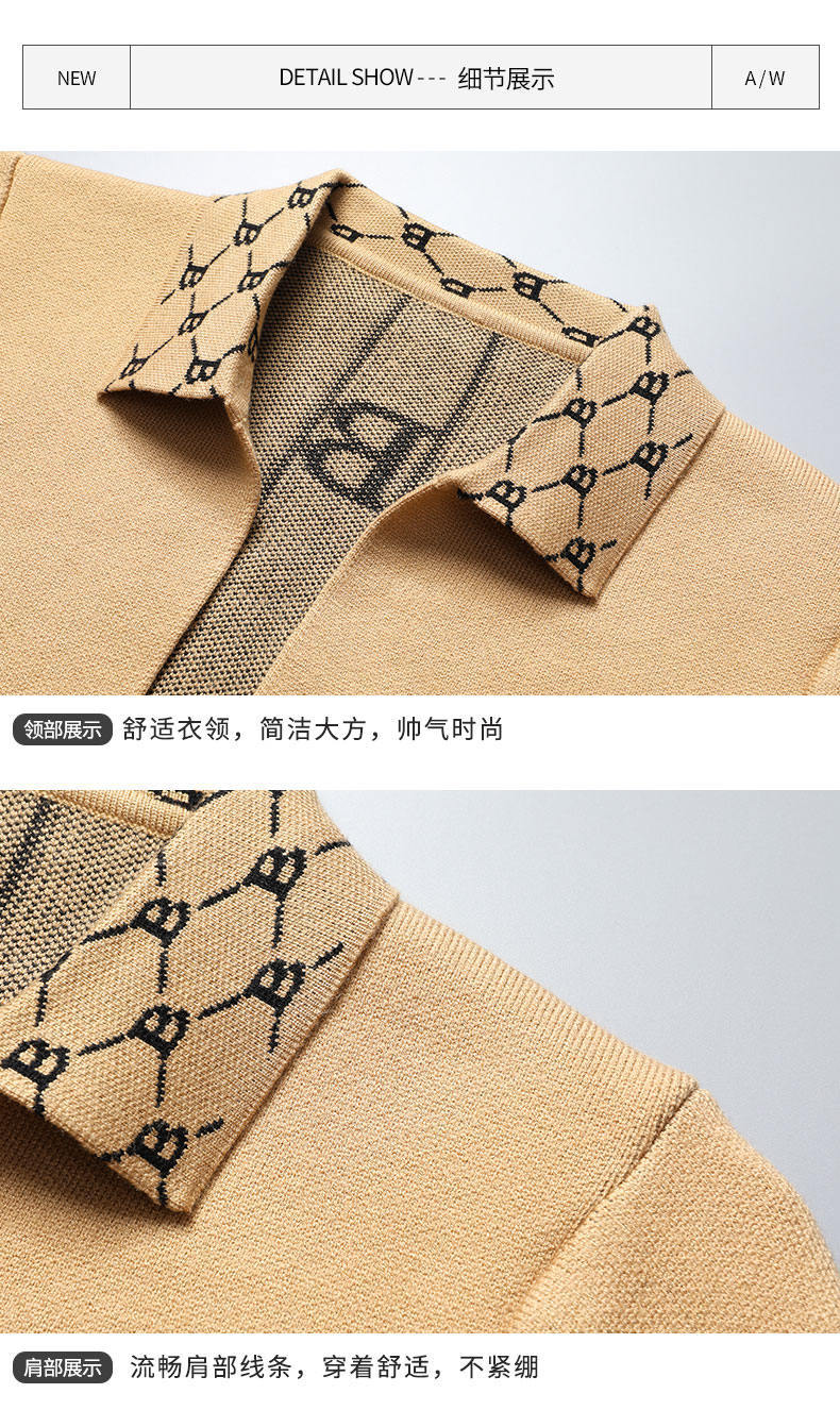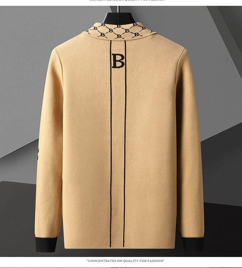 대외 무역 남성 옷깃 새 긴팔 자카드 편지 캐주얼 카디건 스웨터 조수 십대 남성 스웨터