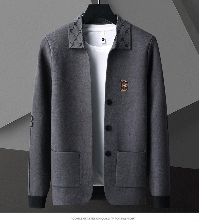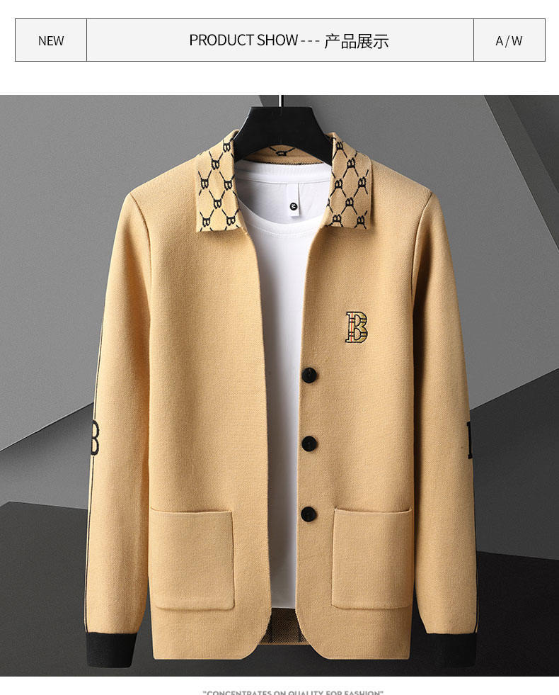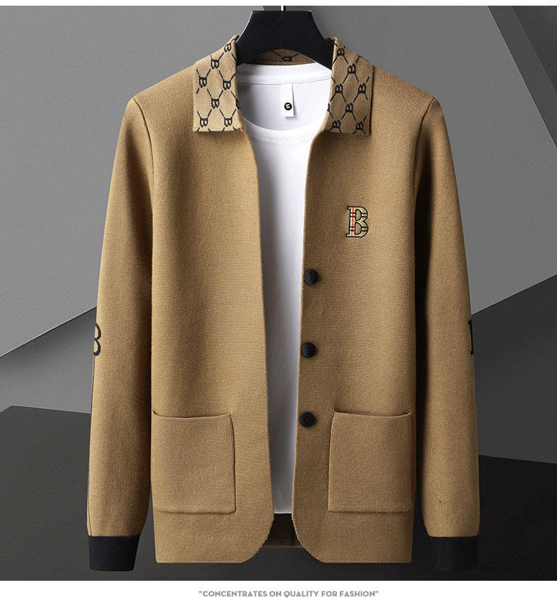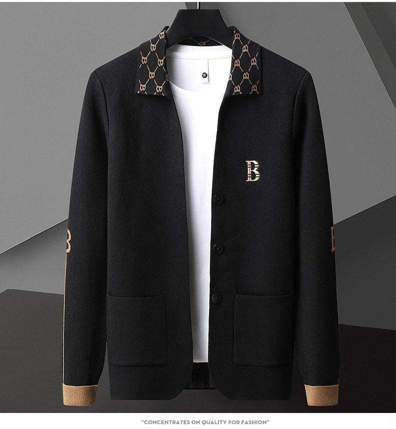 대외 무역 남성 옷깃 새 긴팔 자카드 편지 캐주얼 카디건 스웨터 조수 십대 남성 스웨터스토어 가기