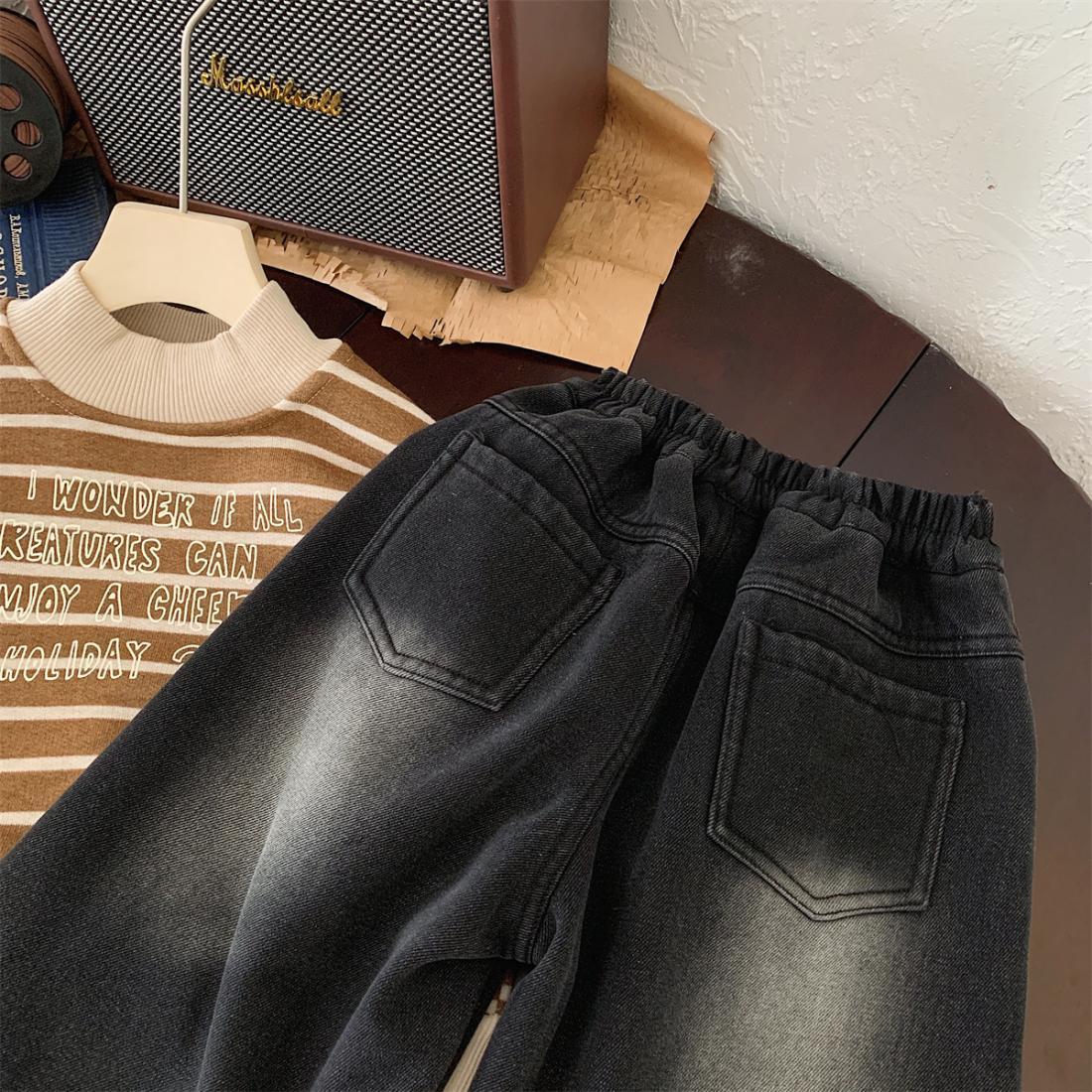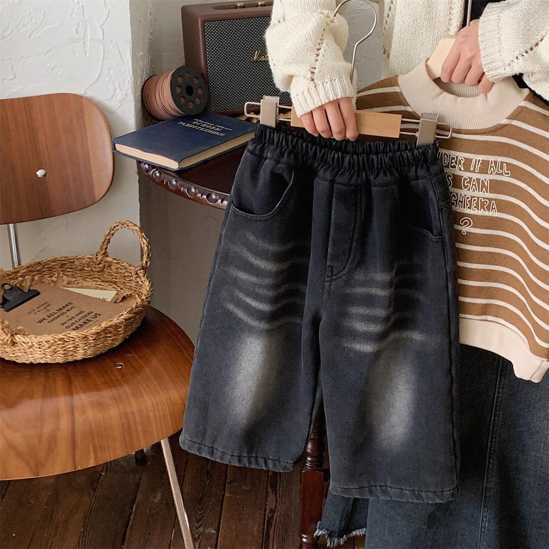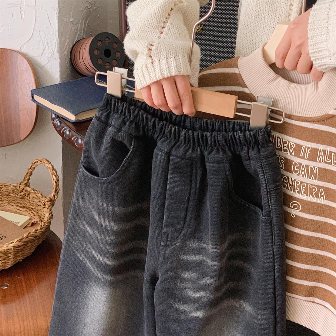 2025년 신상 여아 캐주얼 스트레이트 팬츠, 아동용 만능 청바지, 가을 겨울 신상 남아 복고풍 바지스토어 가기