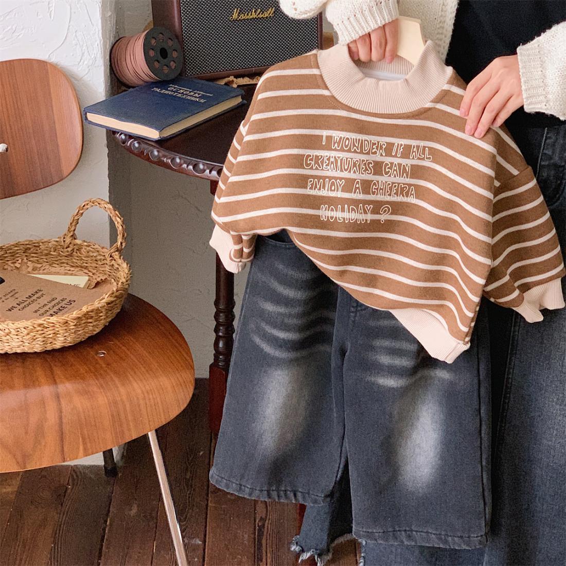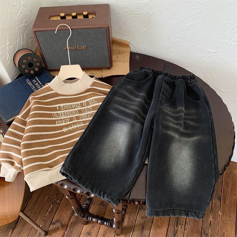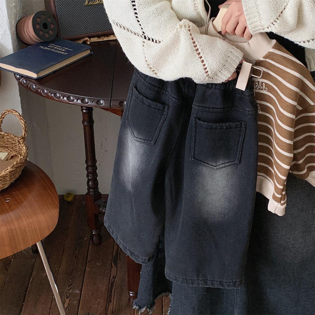 2025년 신상 여아 캐주얼 스트레이트 팬츠, 아동용 만능 청바지, 가을 겨울 신상 남아 복고풍 바지스토어 가기
