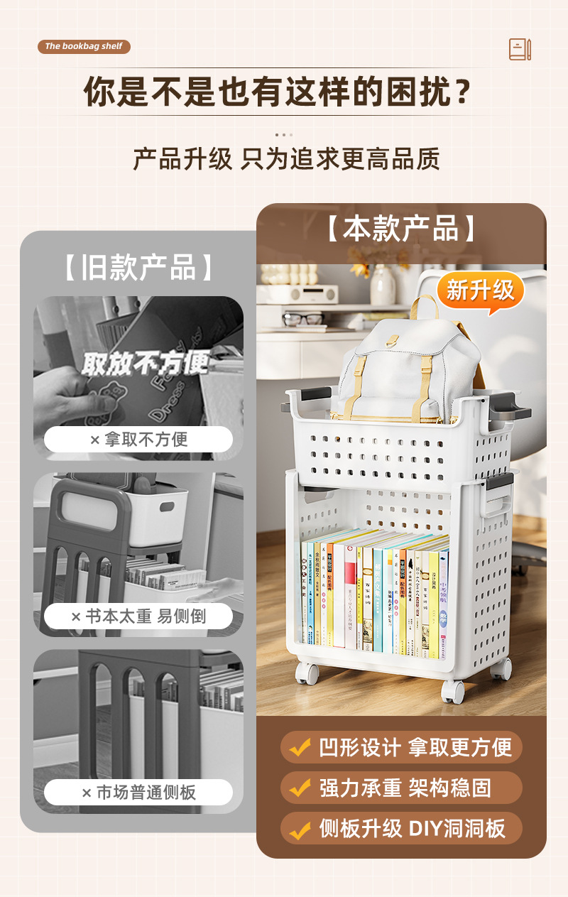 어린이 특수 학교 가방 보관 랙 책 간식 잡화 책상 랙 휴대용 풀리 카트스토어 가기