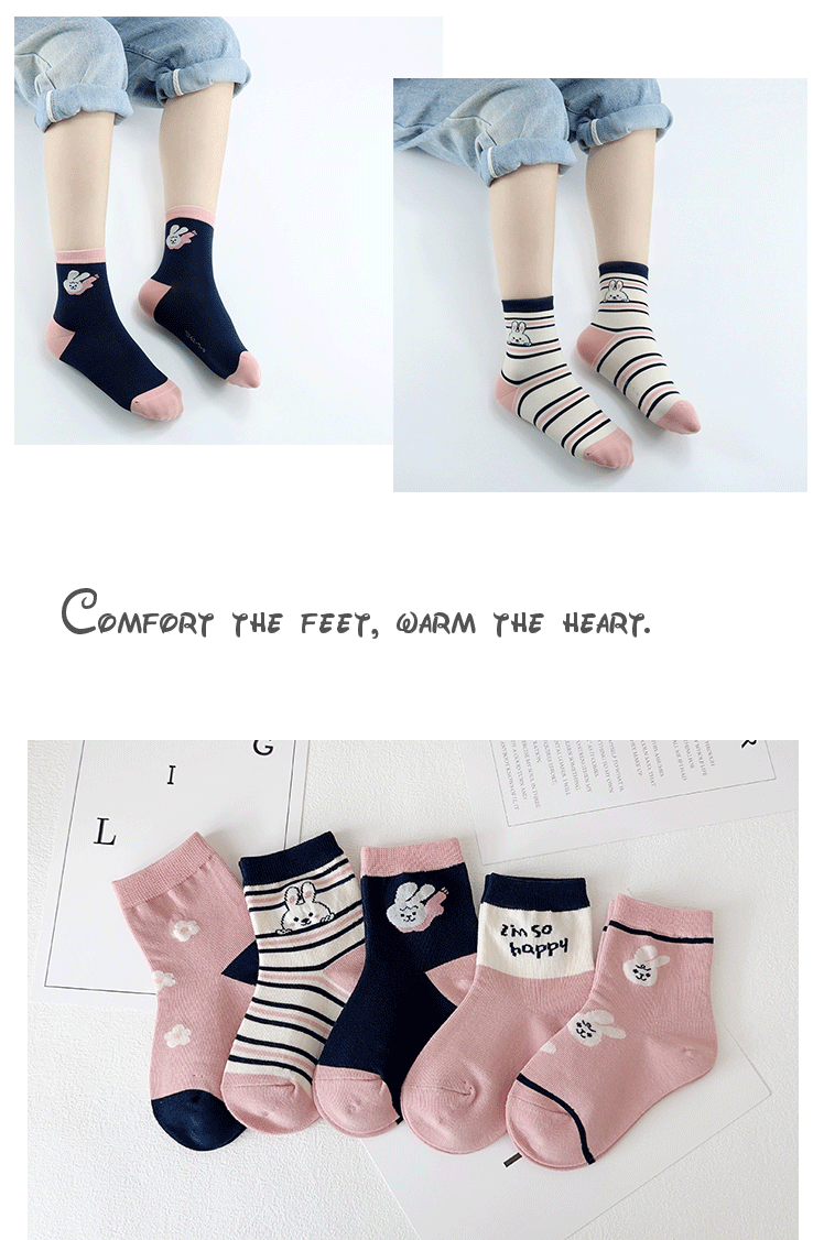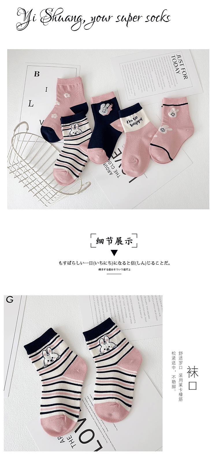 이쌍 어린이 양말 가을과 겨울 새 만화 토끼 중장 양말 빗질 코튼 한국식 소녀 학생 양말스토어 가기