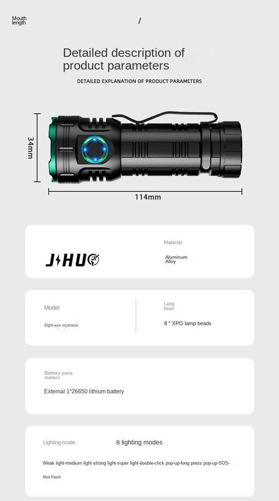 국경 간 새로운 8 눈 이상한 강한 손전등 슈퍼 밝은 충전식 야외 홈 휴대용 미니 빨간색 경고등스토어 가기