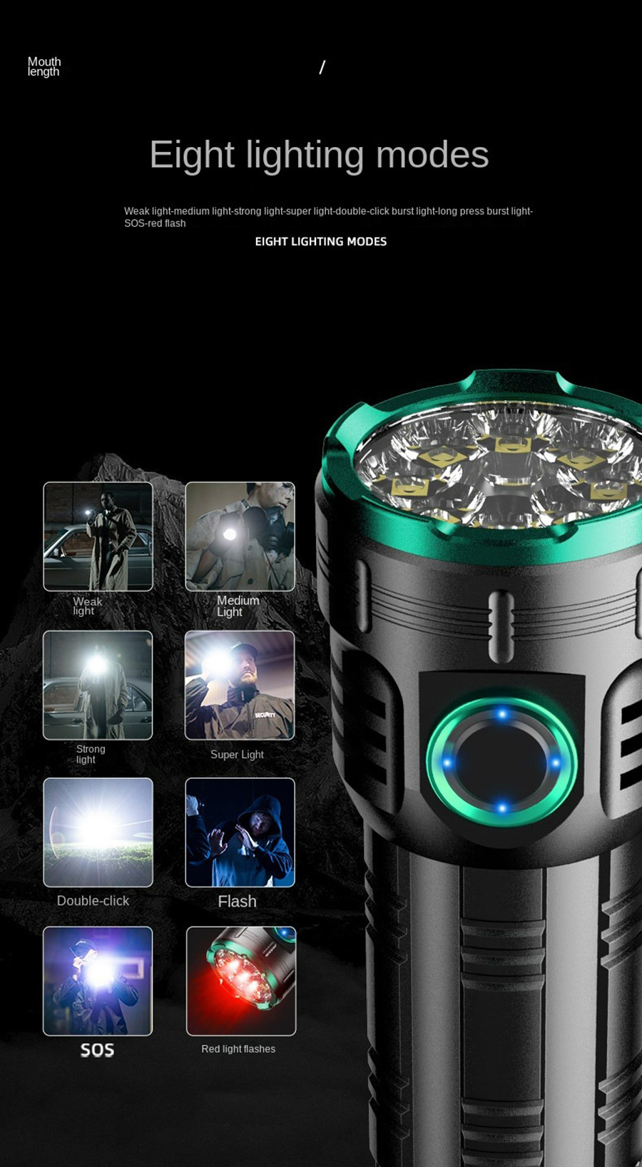 국경 간 새로운 8 눈 이상한 강한 손전등 슈퍼 밝은 충전식 야외 홈 휴대용 미니 빨간색 경고등