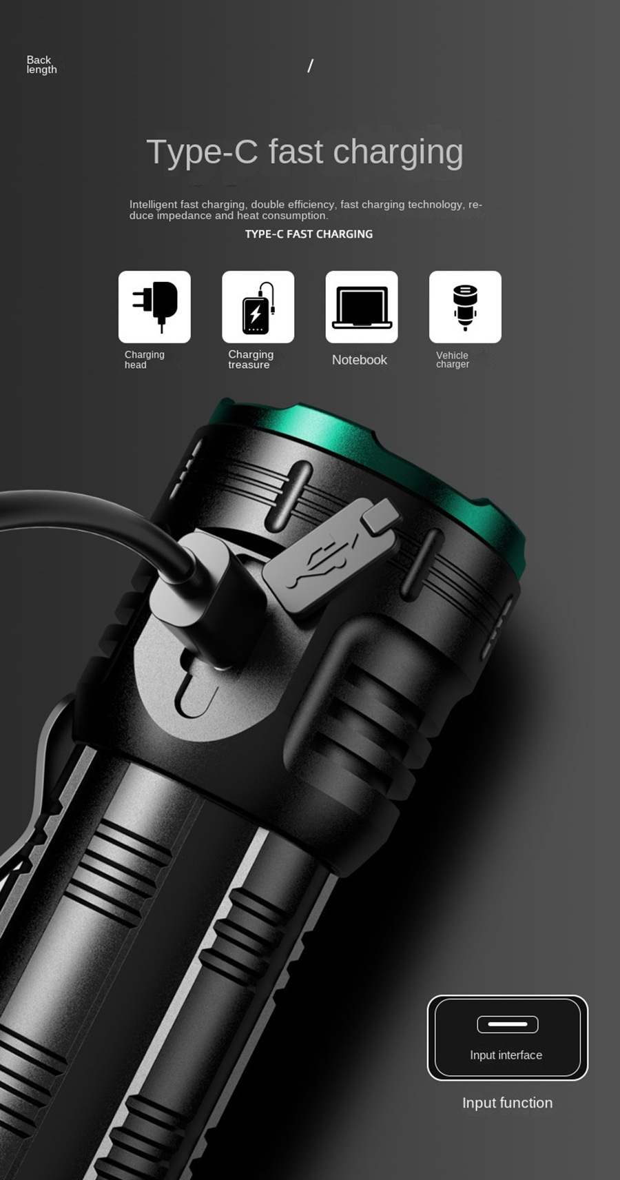 • 8 개의 핵 심지 손전등 26650 리튬 X1 USB 케이블