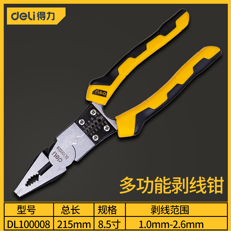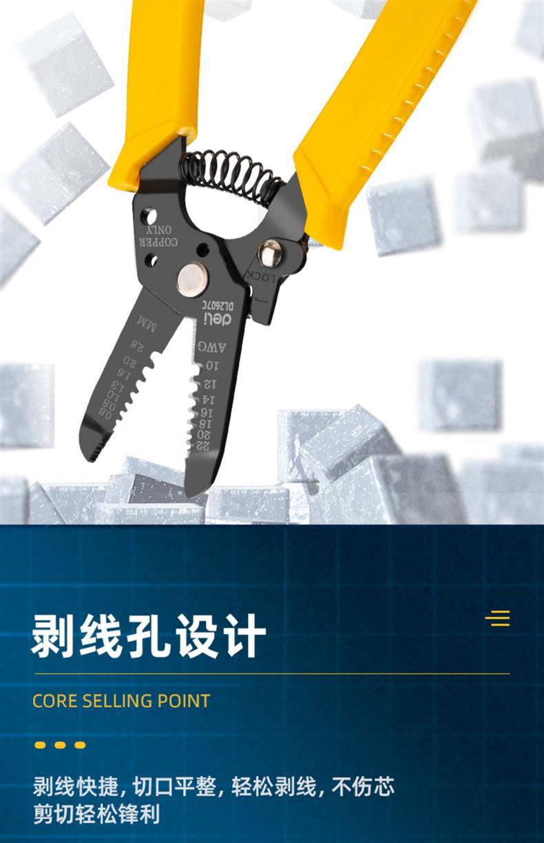 델리 공구 6.5 인치 7 스톱 전기 다기능 수동 와이어 및 케이블 스트리퍼 와이어 스트리핑 펜치 DL2607C