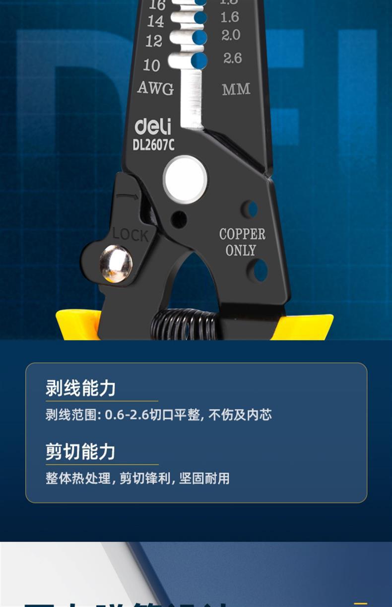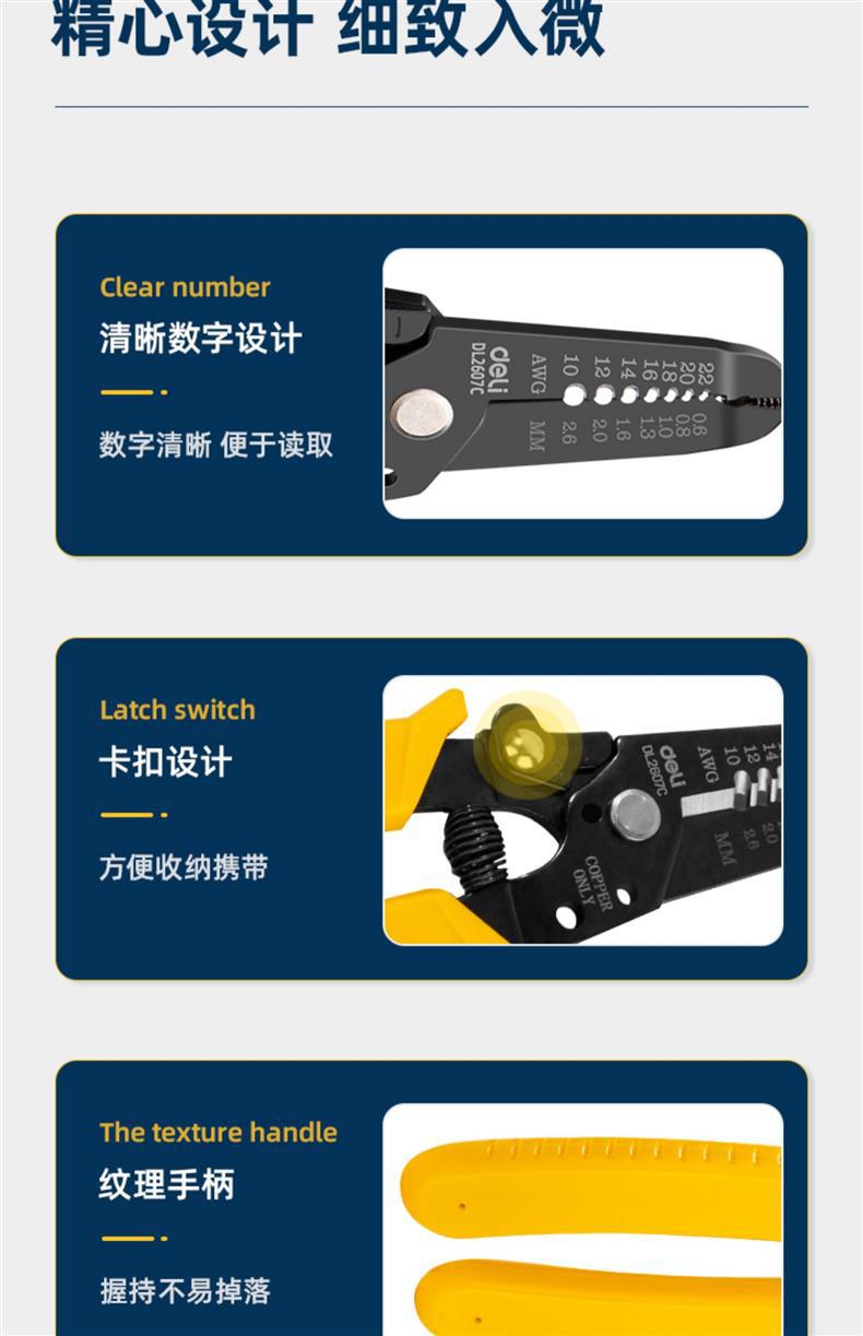 델리 공구 6.5 인치 7 스톱 전기 다기능 수동 와이어 및 케이블 스트리퍼 와이어 스트리핑 펜치 DL2607C스토어 가기