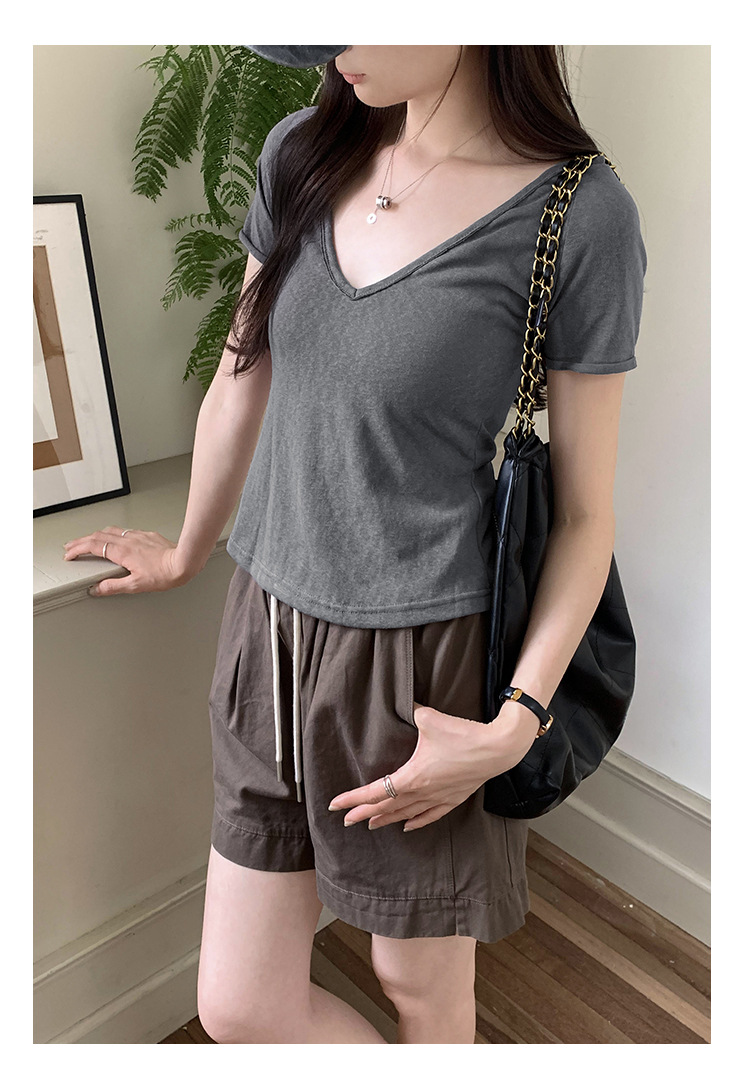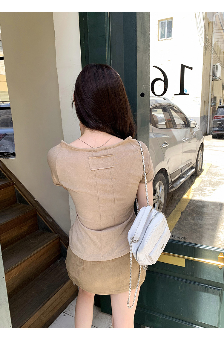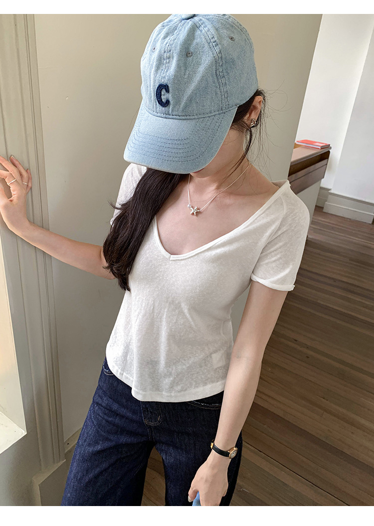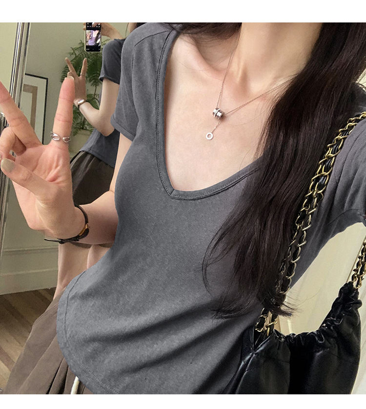 한국 스타일 Chic Niche V-neck Raglan 반팔 티셔츠 여자 여름 2024 새로운 간단한 올 매치 얇은 탑스토어 가기