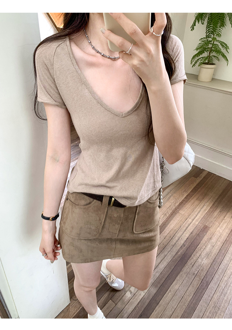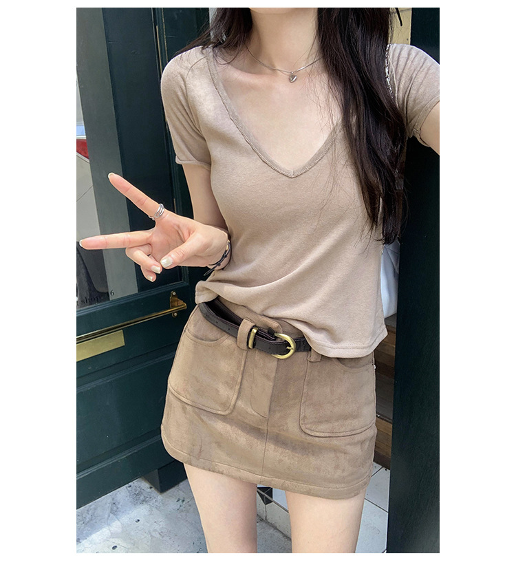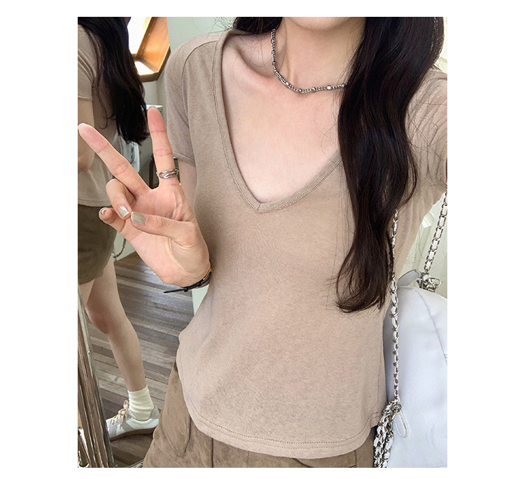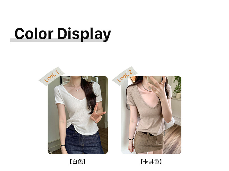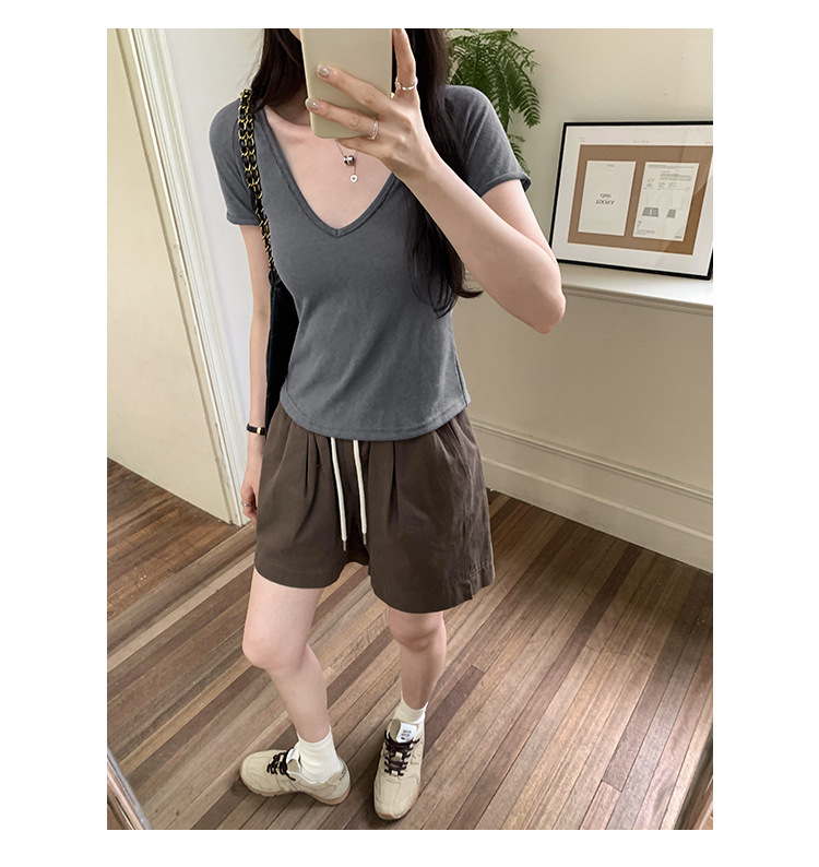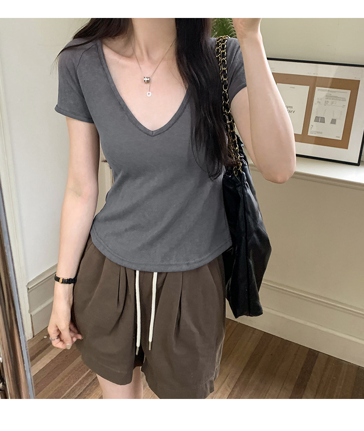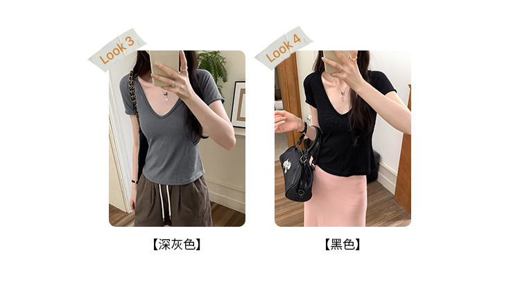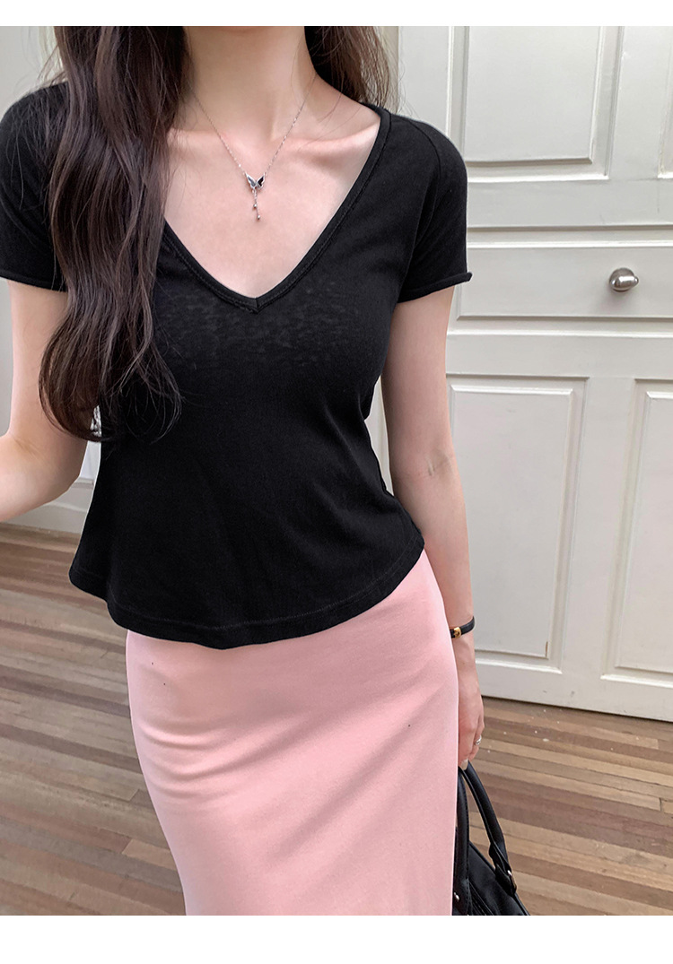 한국 스타일 Chic Niche V-neck Raglan 반팔 티셔츠 여자 여름 2024 새로운 간단한 올 매치 얇은 탑