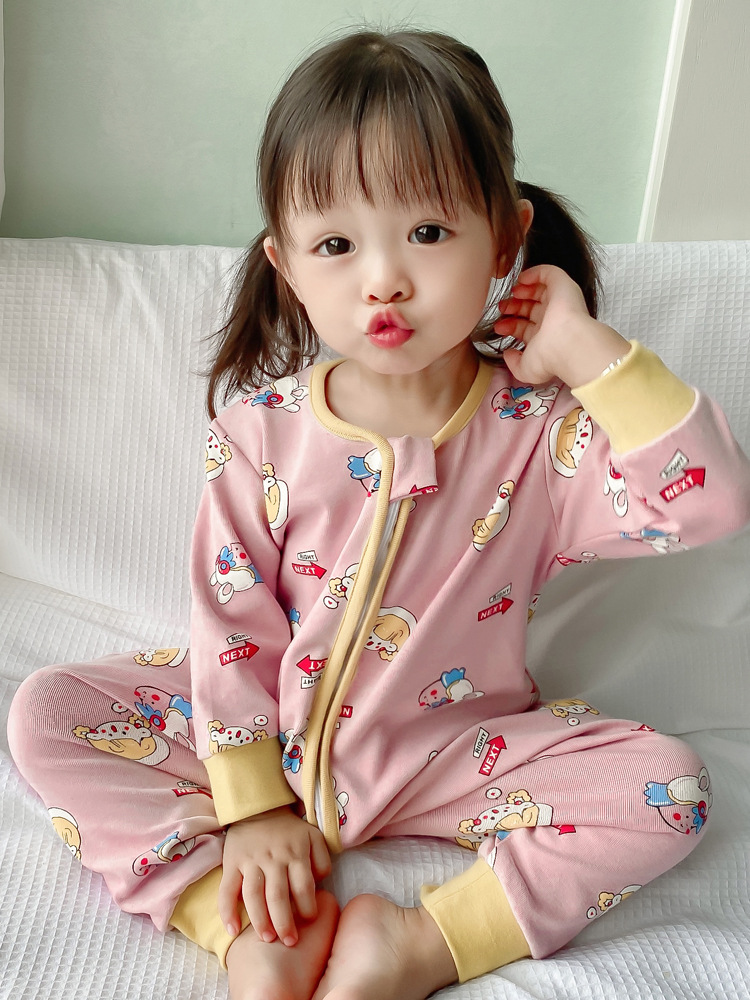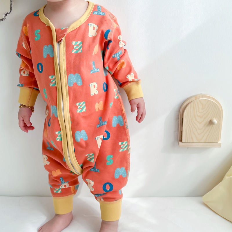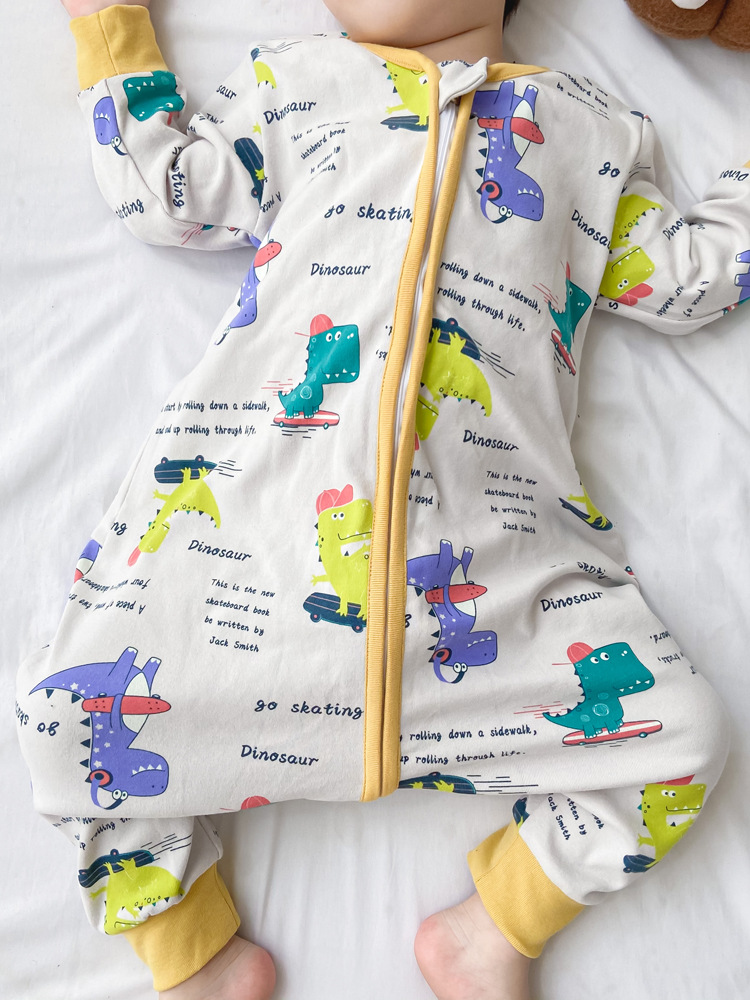 어린이 원피스 잠옷 봄 가을과 겨울 아기 순면 따뜻한 킥 방지 다리 슬리핑 백 사계절 소년과 소녀의 집 옷