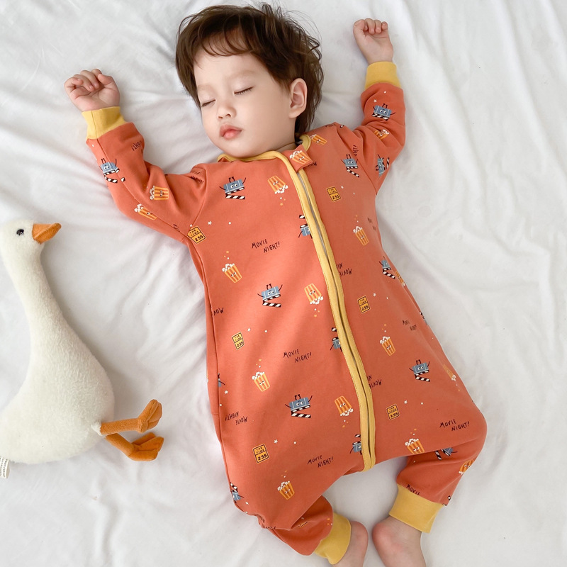 어린이 원피스 잠옷 봄 가을과 겨울 아기 순면 따뜻한 킥 방지 다리 슬리핑 백 사계절 소년과 소녀의 집 옷스토어 가기