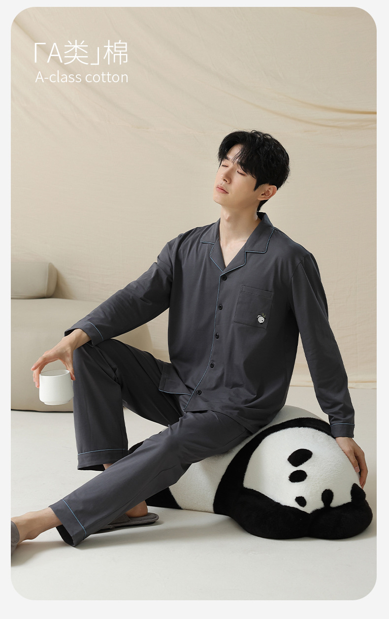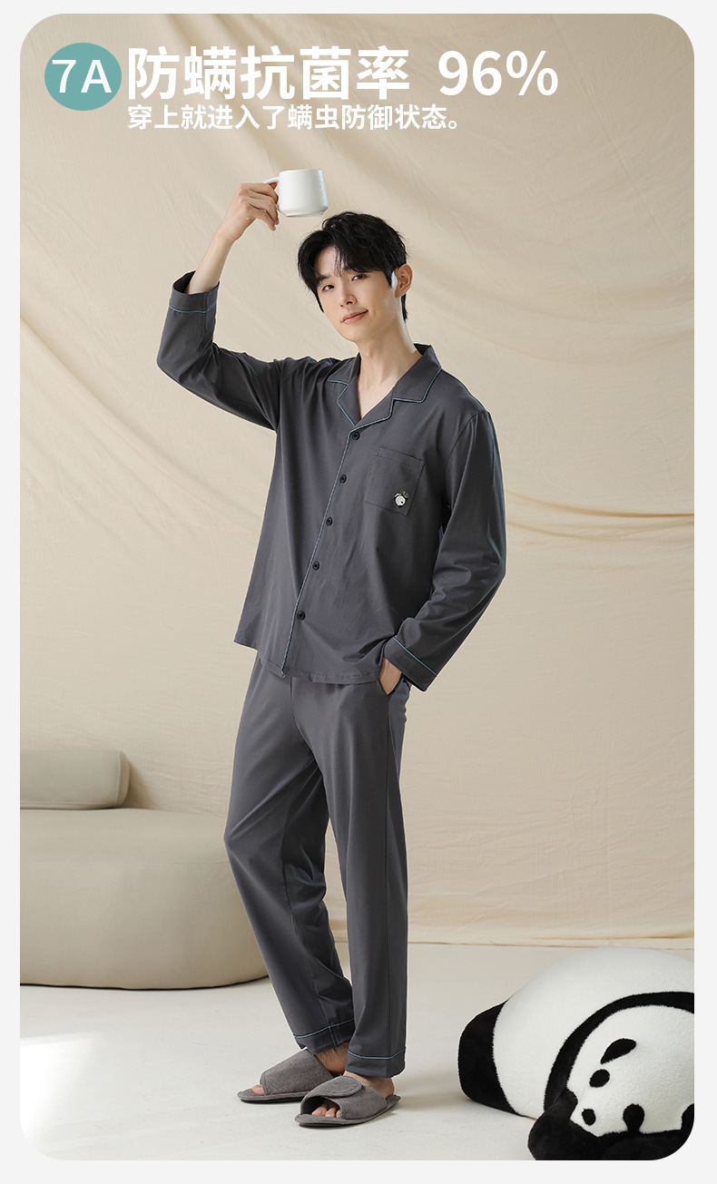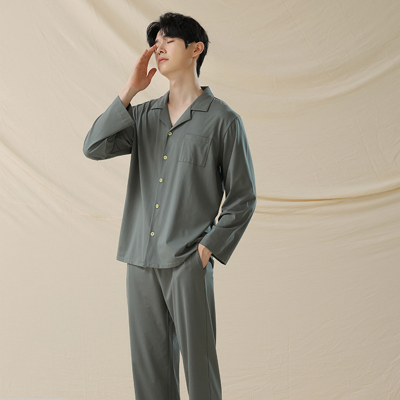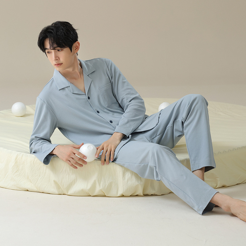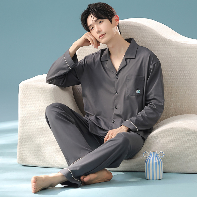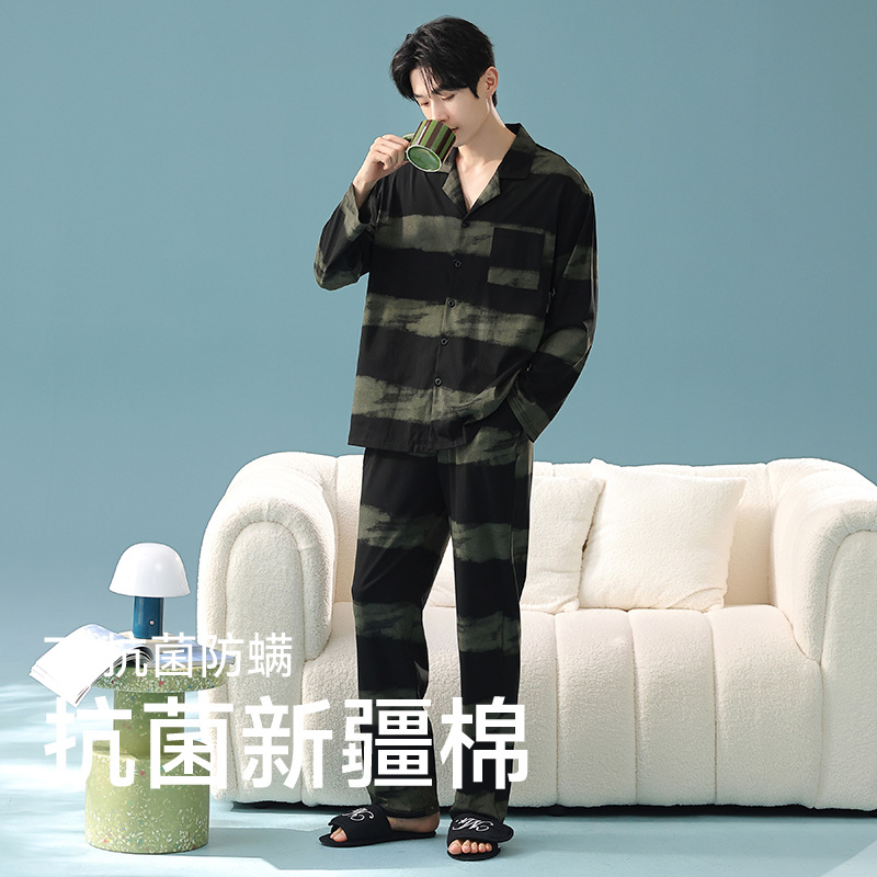 잠옷 남자의 봄과 가을 면 긴 소매 [항균성 신장면] 옷깃 면 남자의 집 옷 가을과 겨울 세트