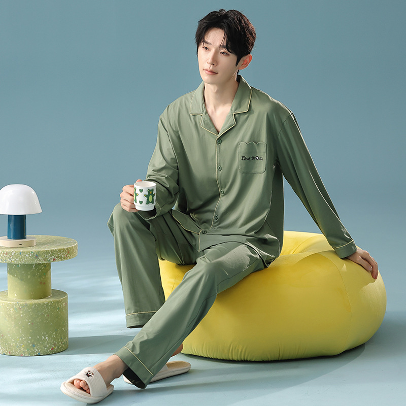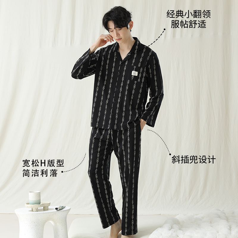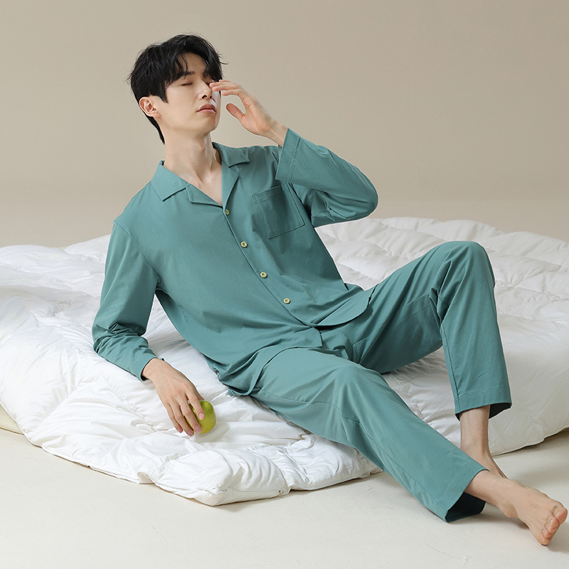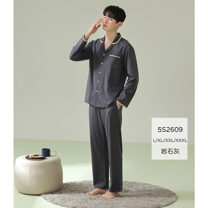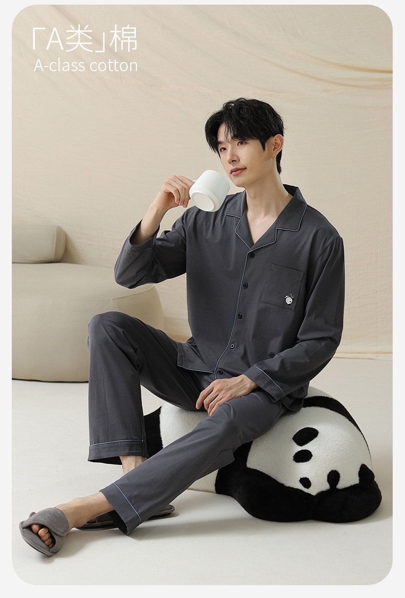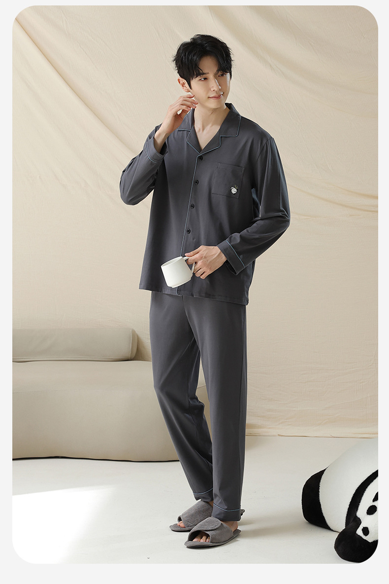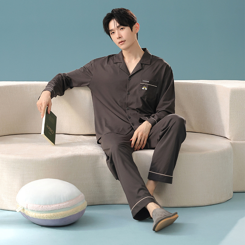 잠옷 남자의 봄과 가을 면 긴 소매 [항균성 신장면] 옷깃 면 남자의 집 옷 가을과 겨울 세트
